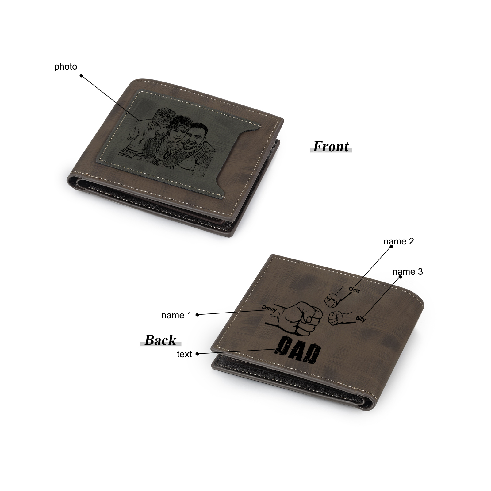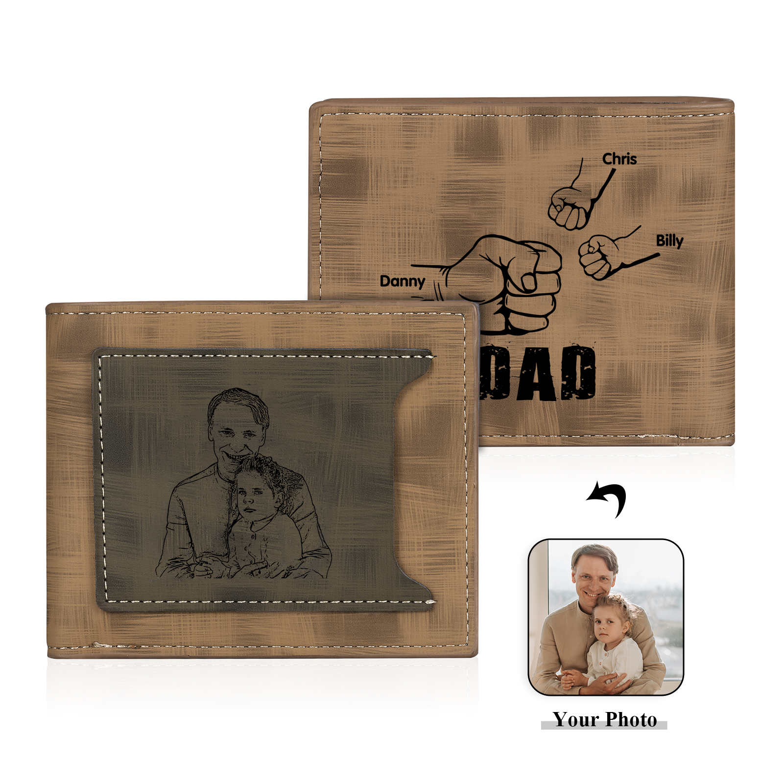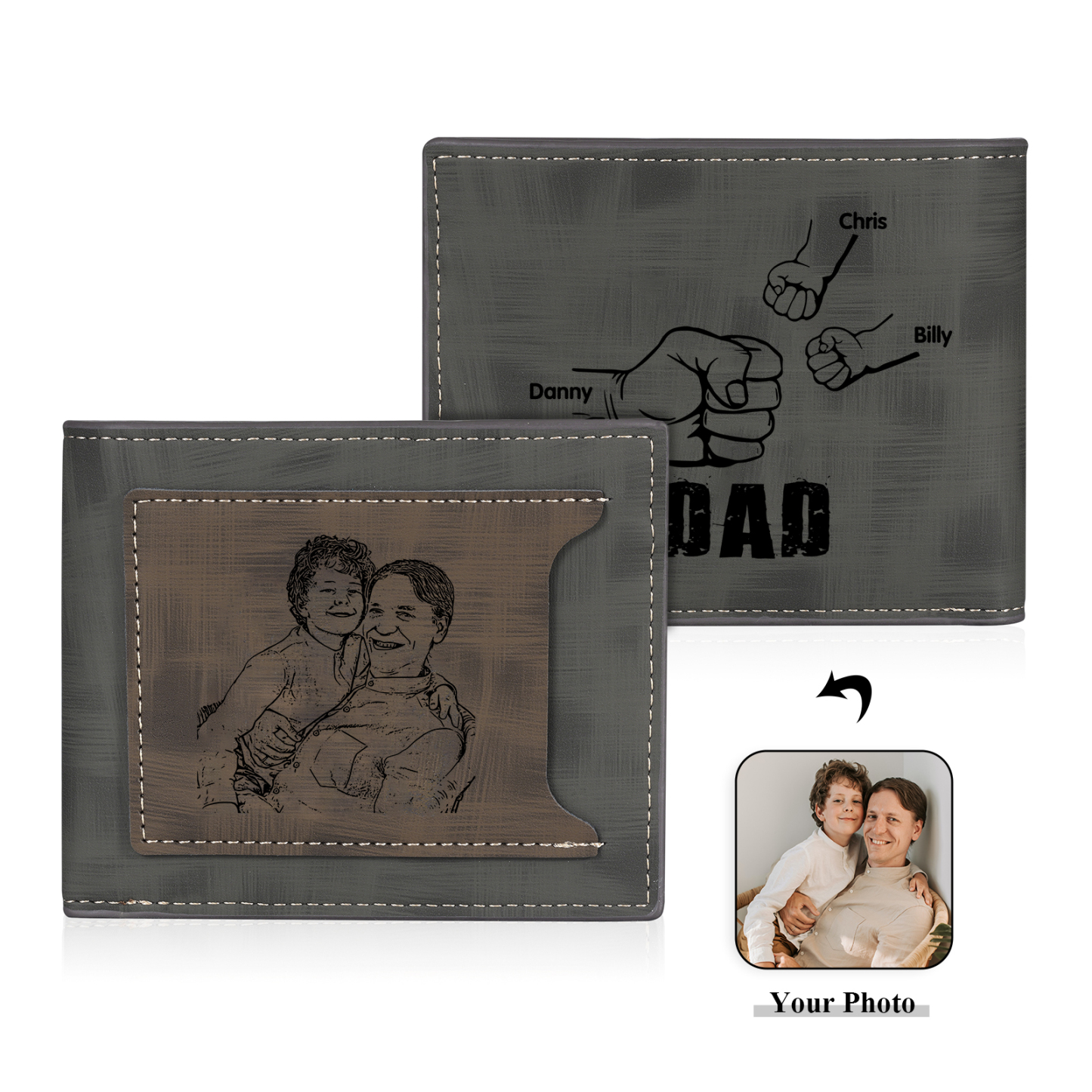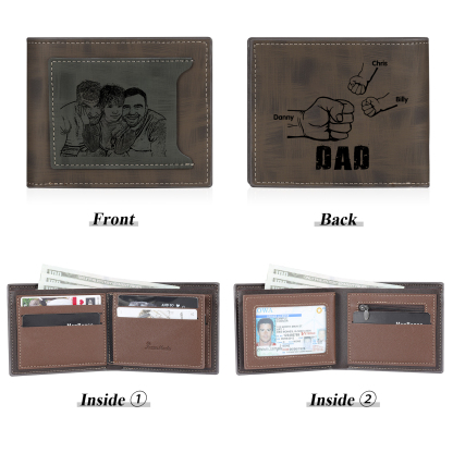 3 Names - Personalized Photo Custom Leather Men's Wallet as a Father's Day Gift for Dad
