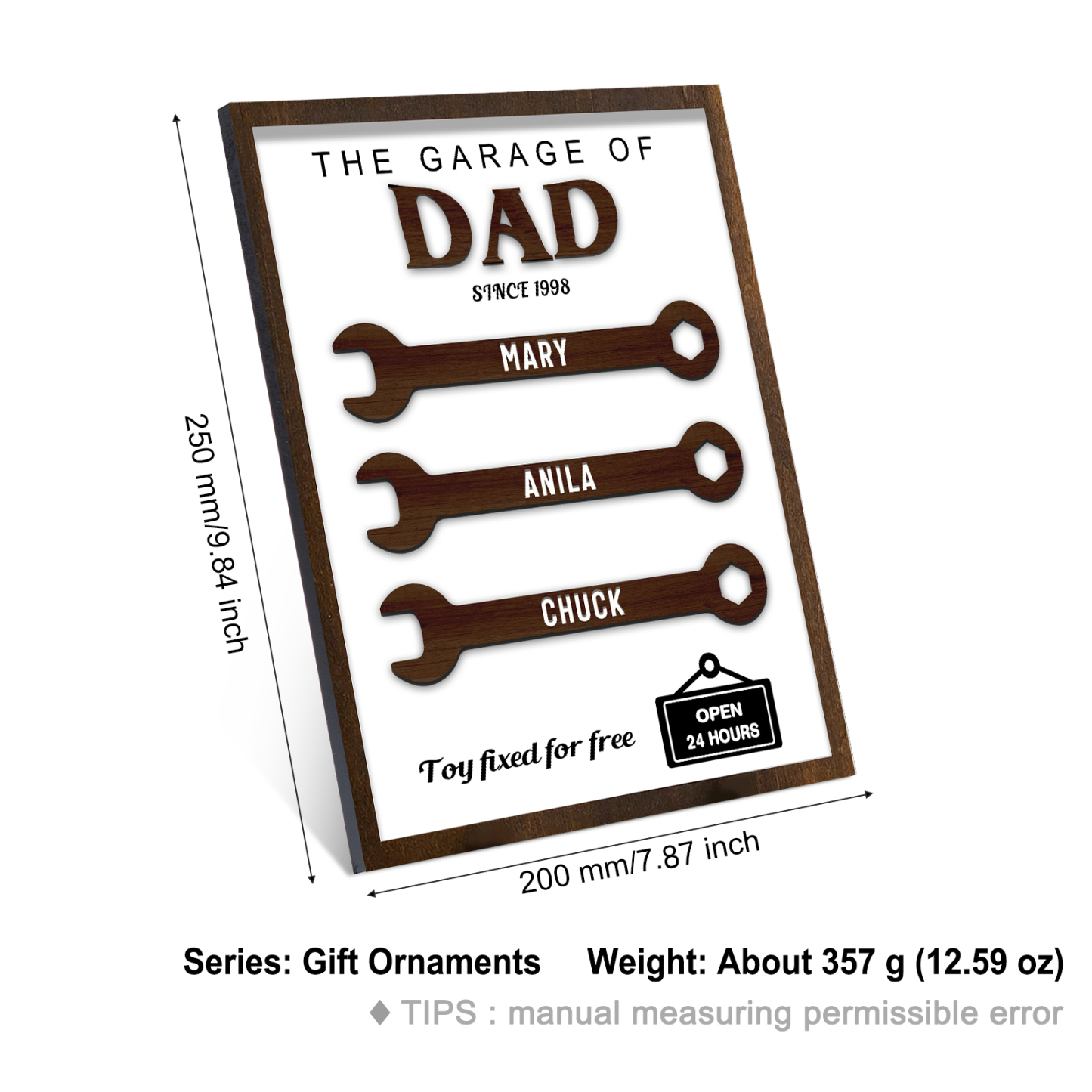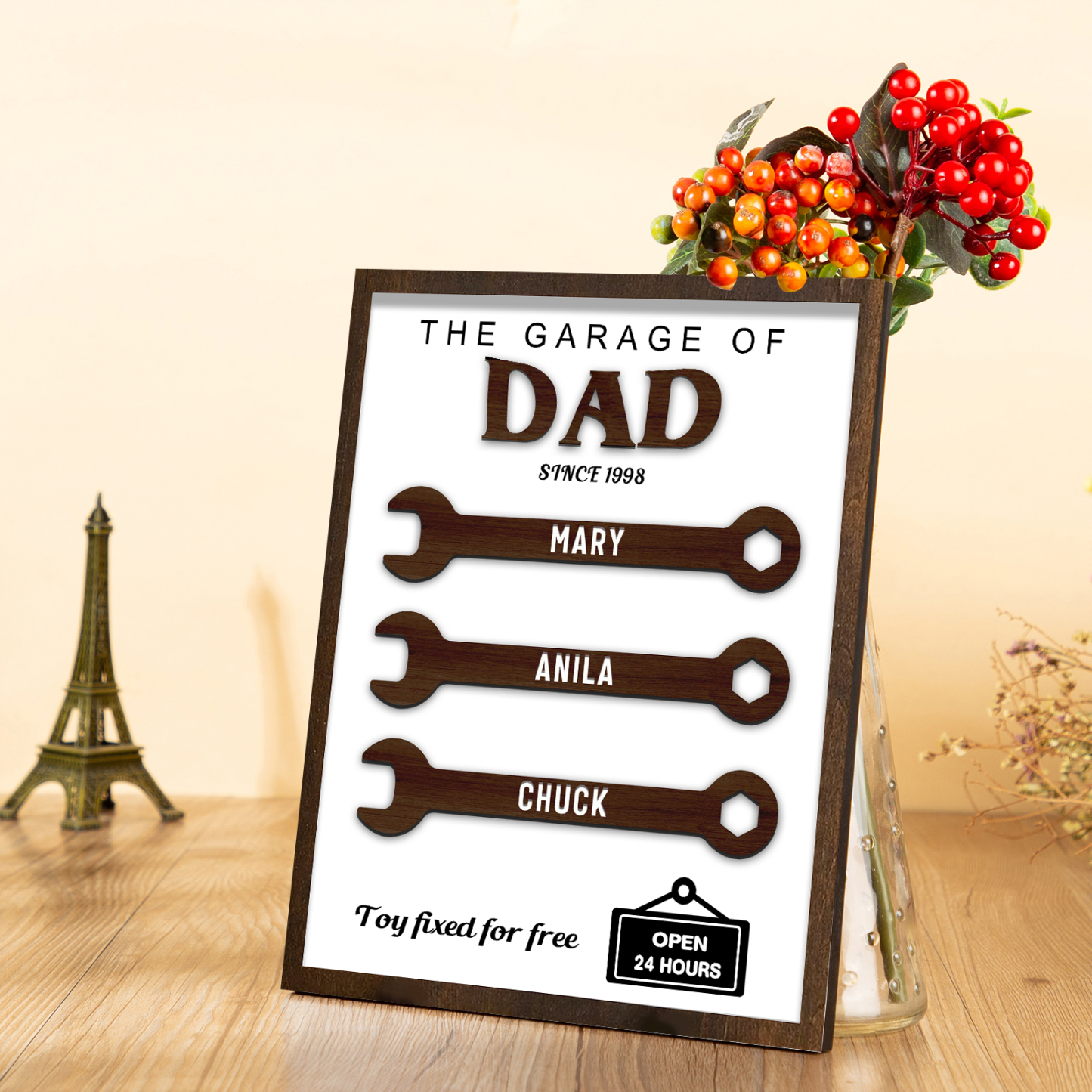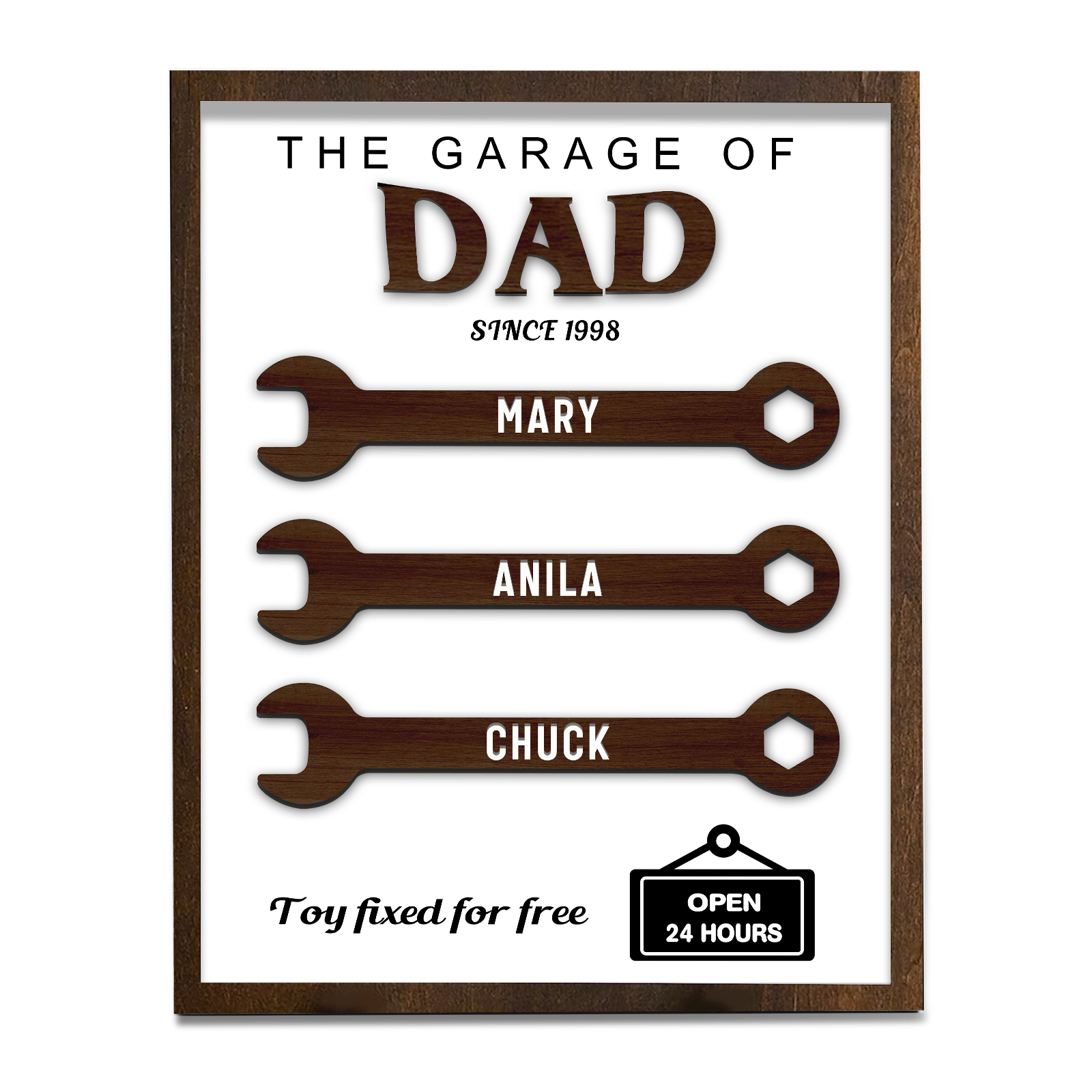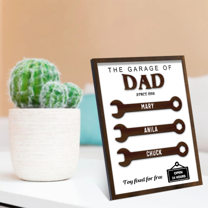 3 Names - Personalized Repair Tool Style Home Photo Frame Wooden Decor Father's Day Gift for Dad
