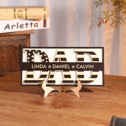 3 Names - Personalized Wood Ornament Engraved with Dad Text Support Customized Name Ornament Father's Day Gift for Dad
