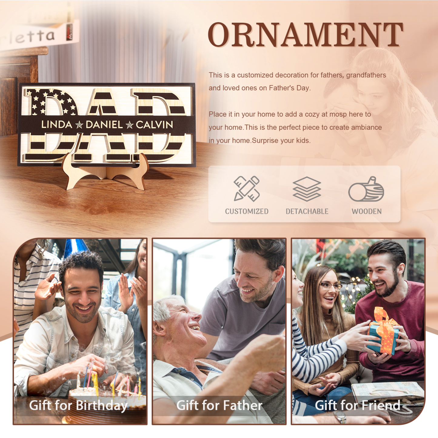 🔥Our customized wooden decor pieces are the perfect choice! Add a personal touch with your and his name engraved on high-quality wood. Show Dad your love with a unique keepsake that he'll cherish forever. Order now and make this Father's Day unforgettable!🎁