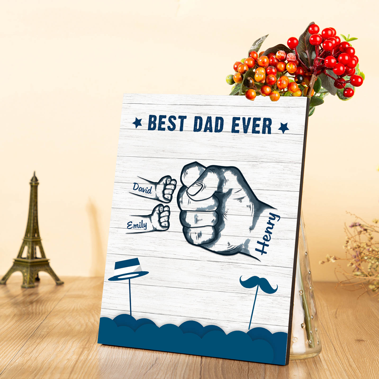 🔥Our customized wooden decor pieces are the perfect choice! Add a personal touch with your own text and his name engraved on high-quality wood. Show Dad your love with a unique keepsake that he'll cherish forever. Order now and make this Father's Day unforgettable!🎁
