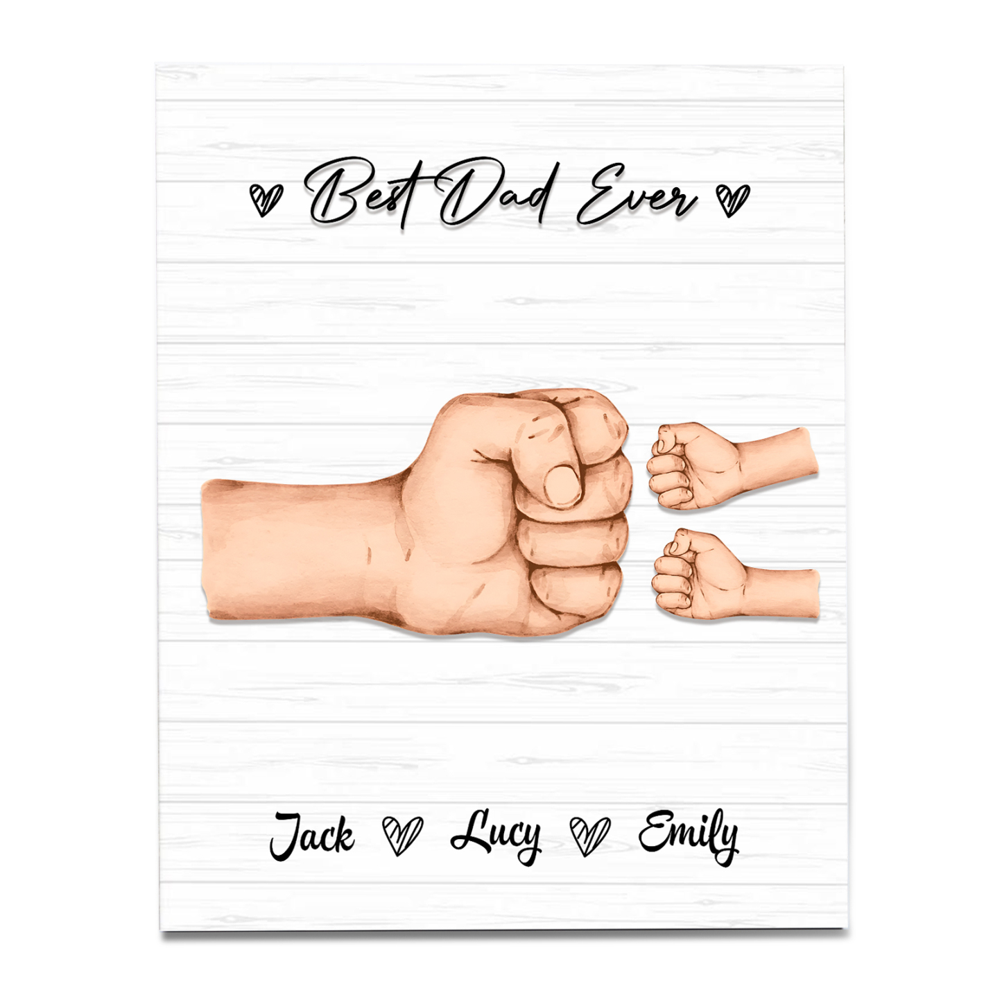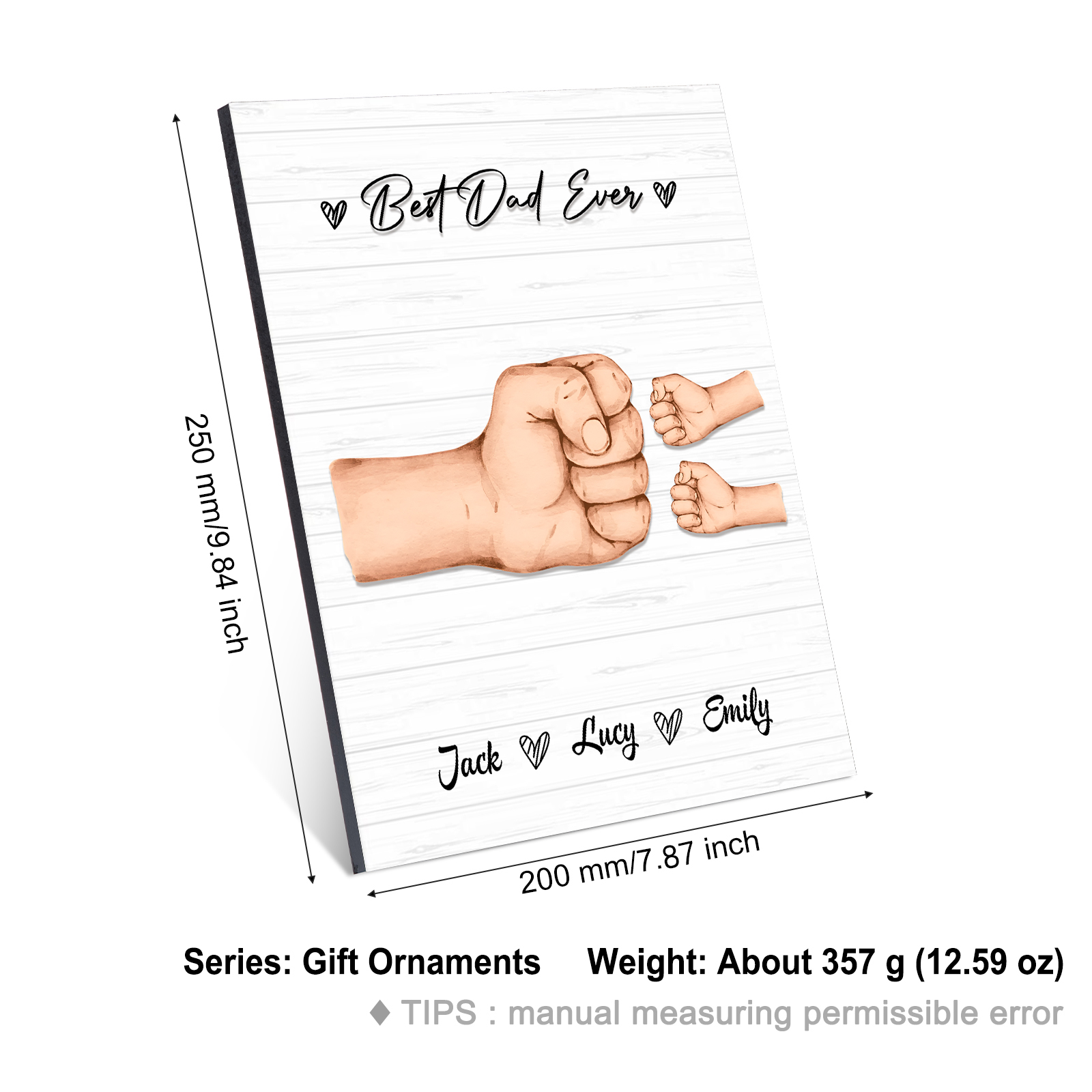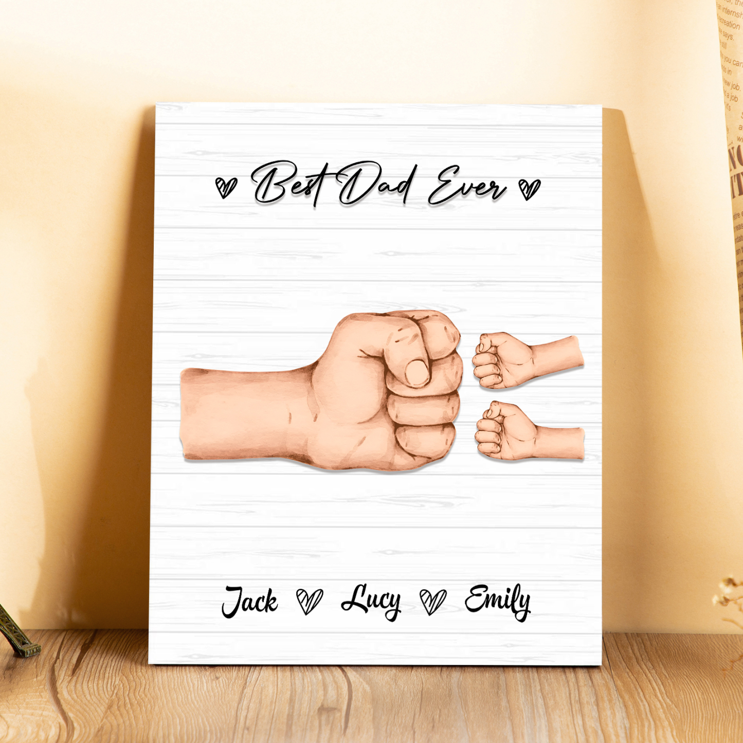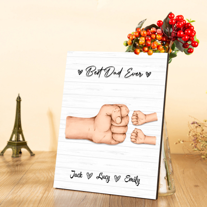 3 Names - Personalized Wooden Ornament Fist Bump Style Engraved Name and Text Ornament for Dad