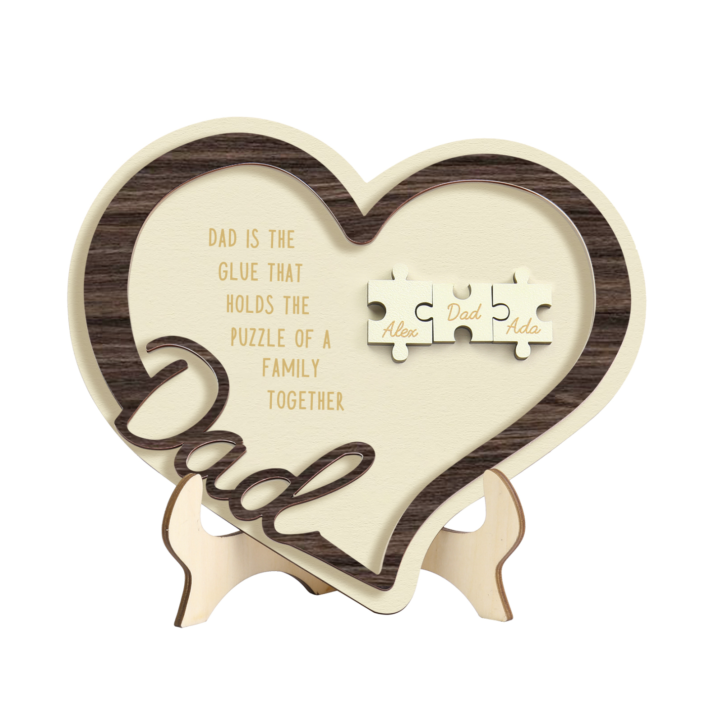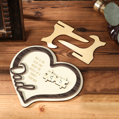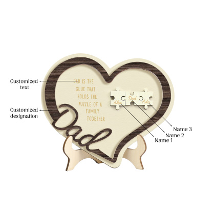 3 Names - Personalized Wooden Ornaments Heart and Puzzle Elements Engraved Text Style Ornaments Home Decor for Dad