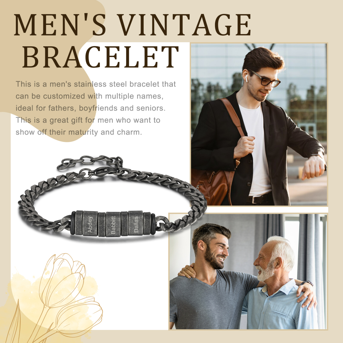 3 Names - Vintage Men's Bracelet Engraved Beads Stainless Steel Bracelet Personalized Gift for Him
