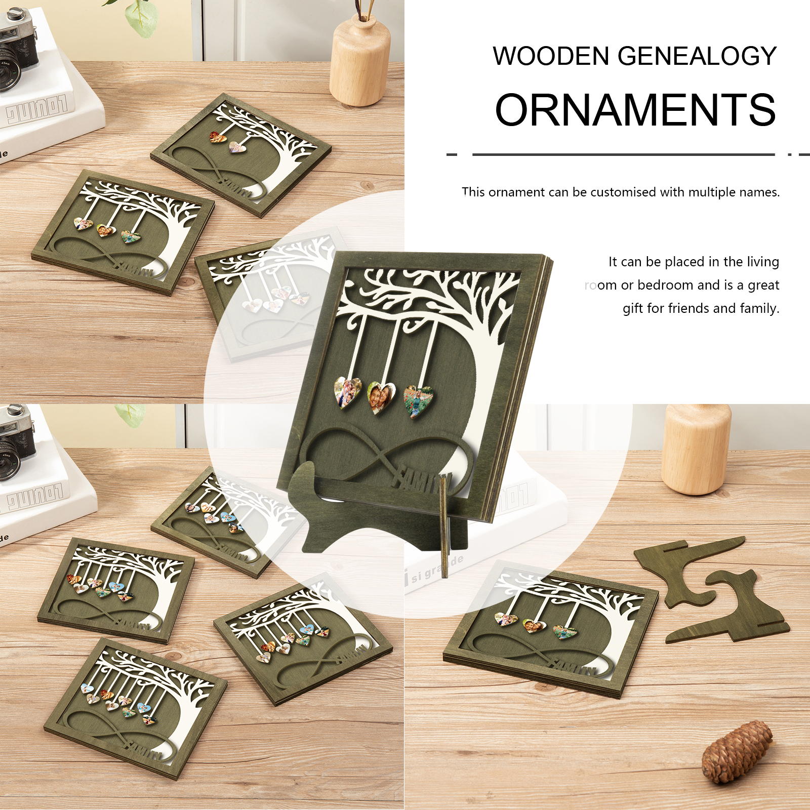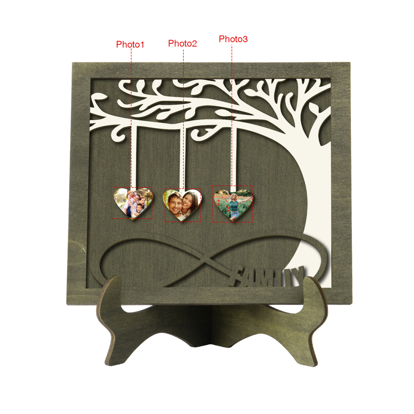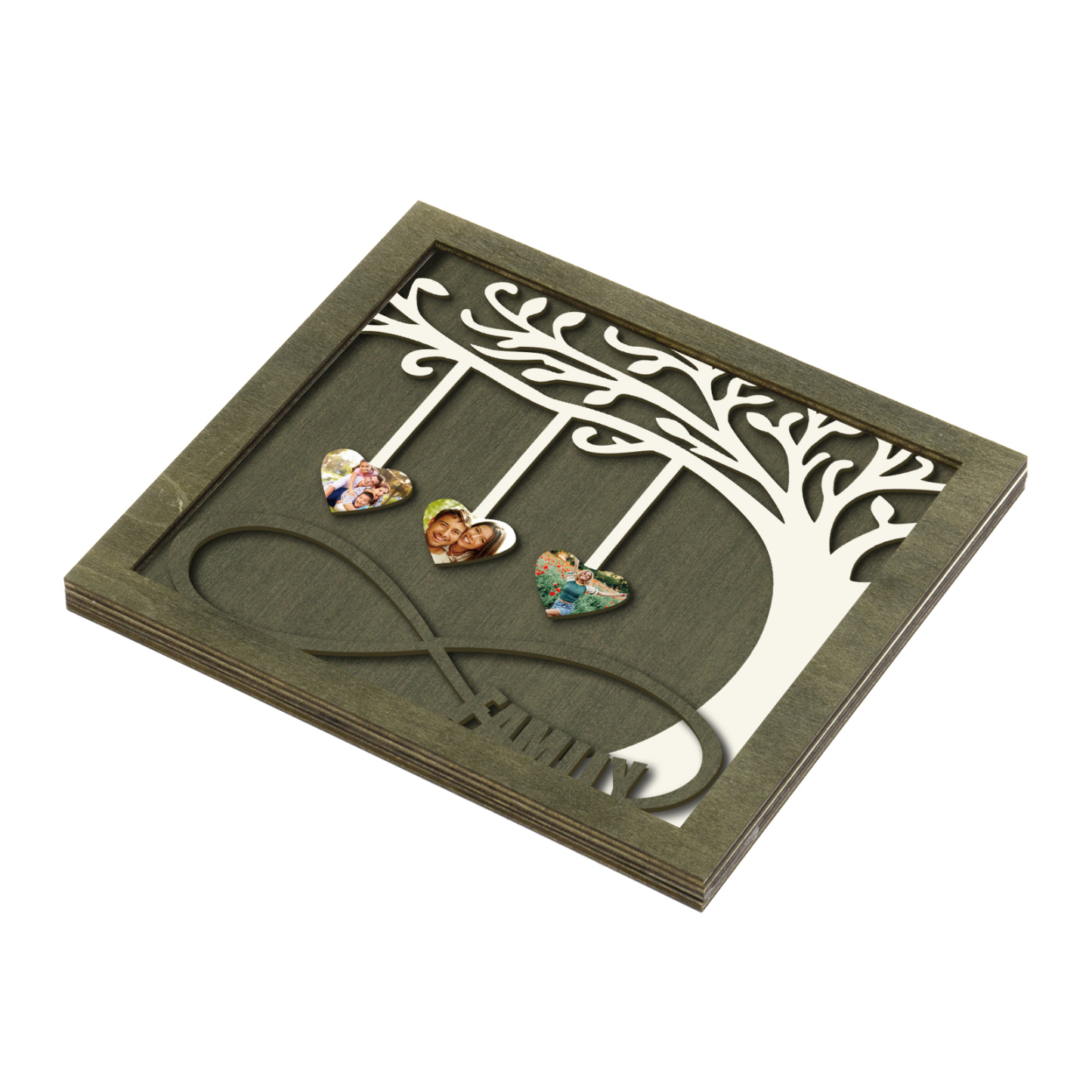 3 Photos-Personalized Family Tree Decoration Wooden Ornaments Concave And Convex Frame Wooden Ornaments Custom Photos For Family