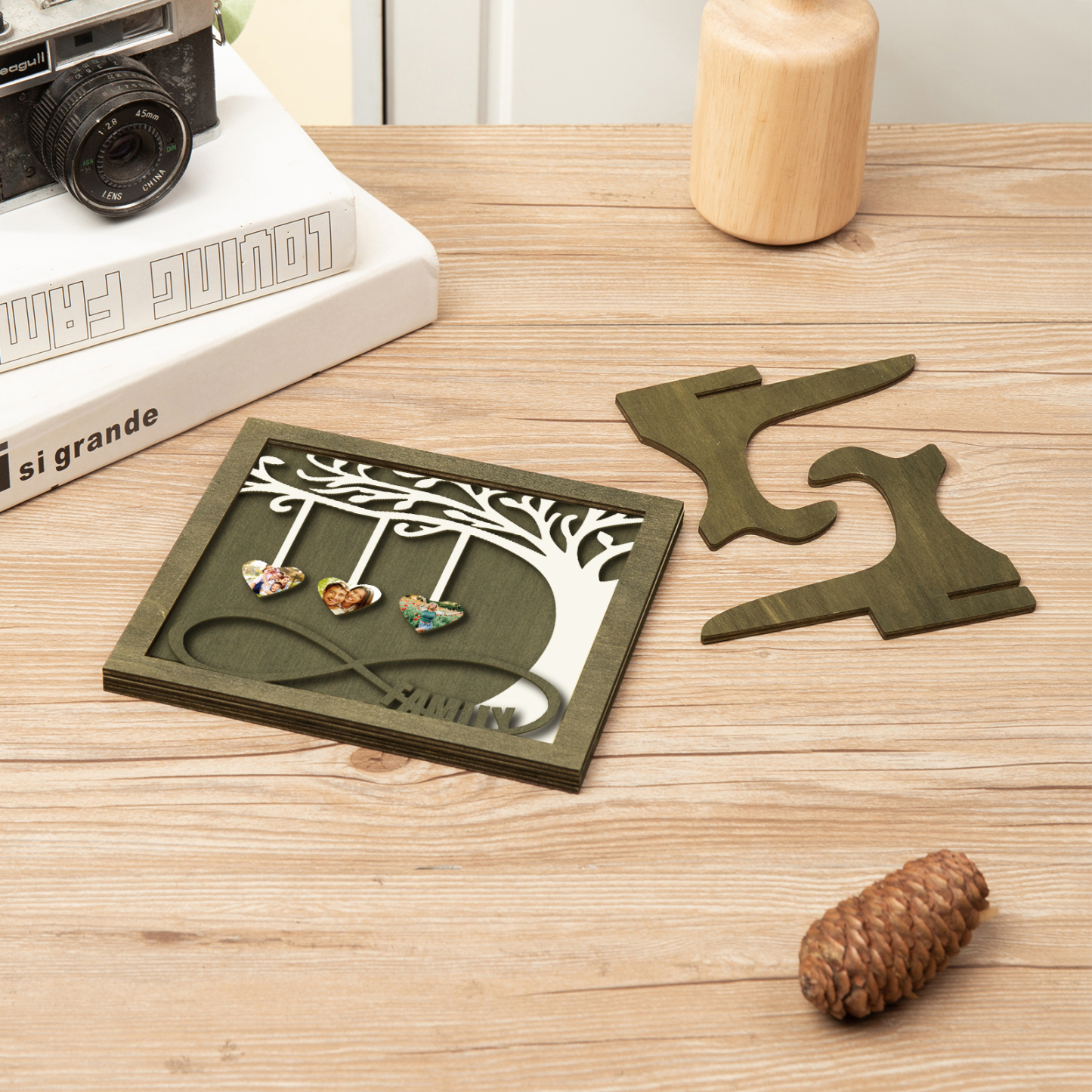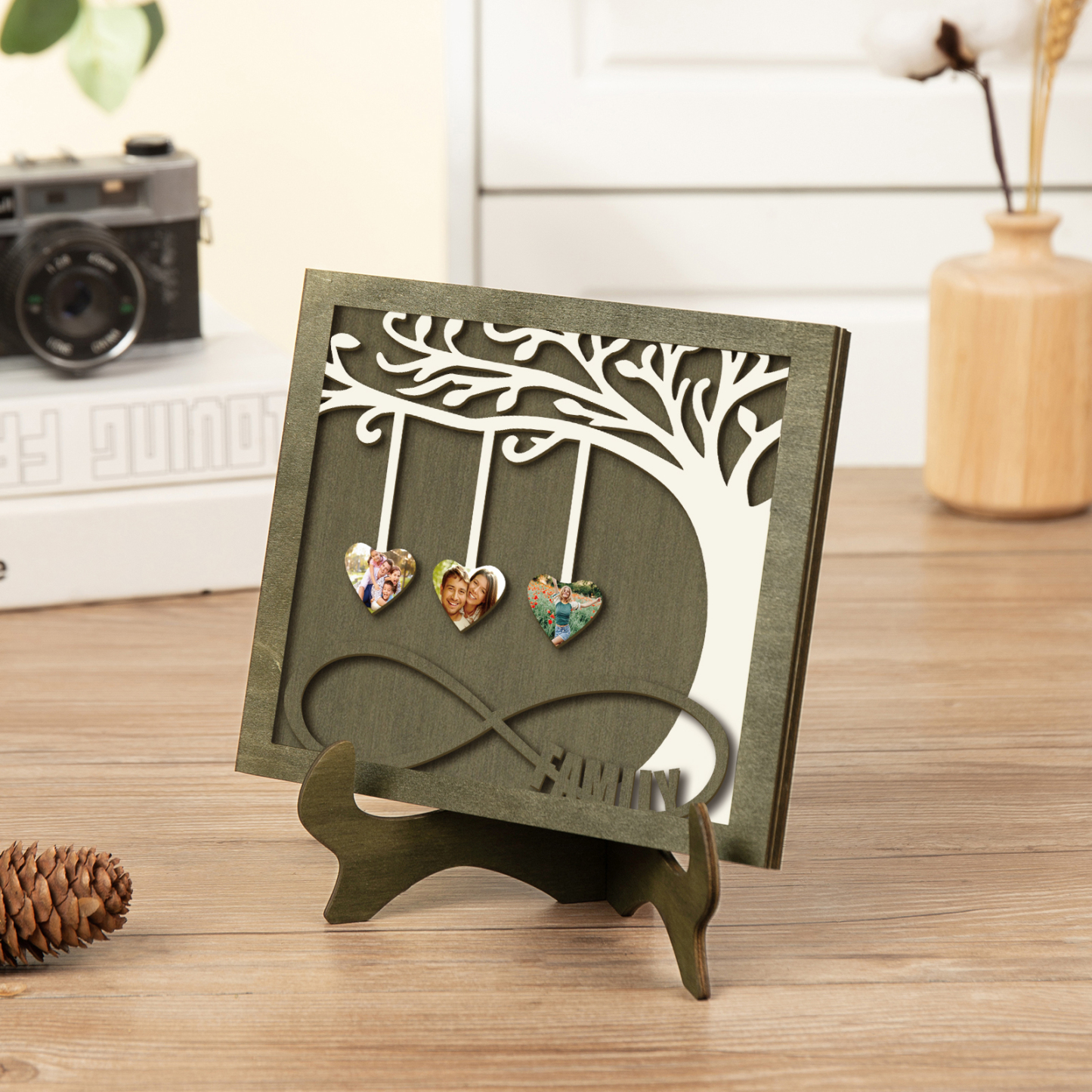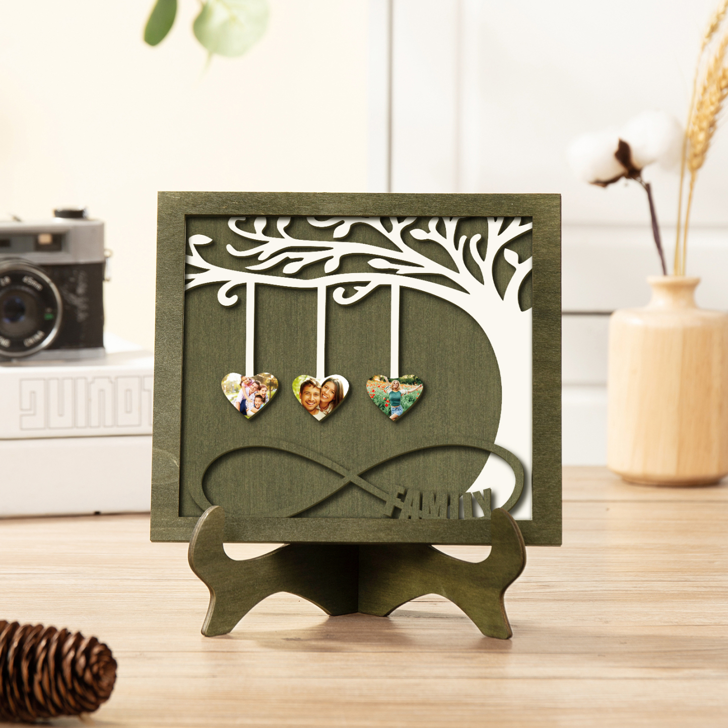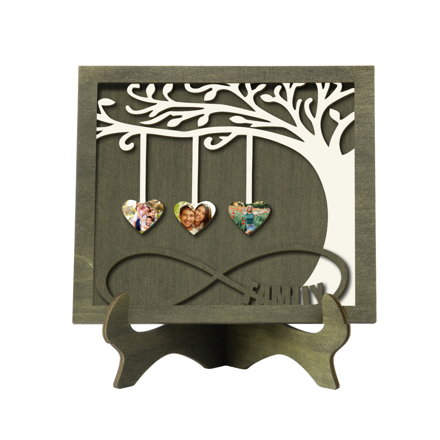 3 Photos-Personalized Family Tree Decoration Wooden Ornaments Concave And Convex Frame Wooden Ornaments Custom Photos For Family