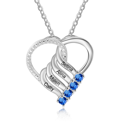 September Birthday Gift Personalized Heart Necklace With 4 birthstones Engraved Names Gift For Mother