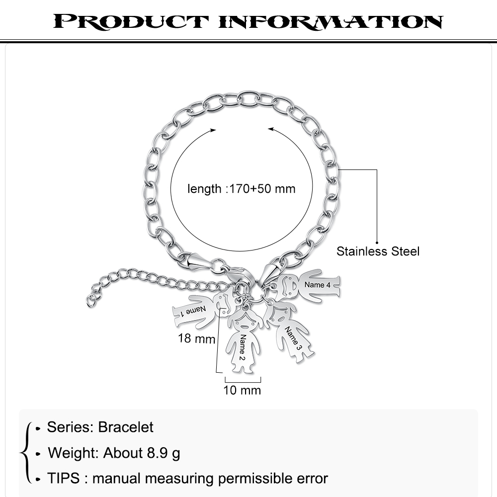 Personalized 4 Kids Charm Bracelet Engraved Names Gift For Mother