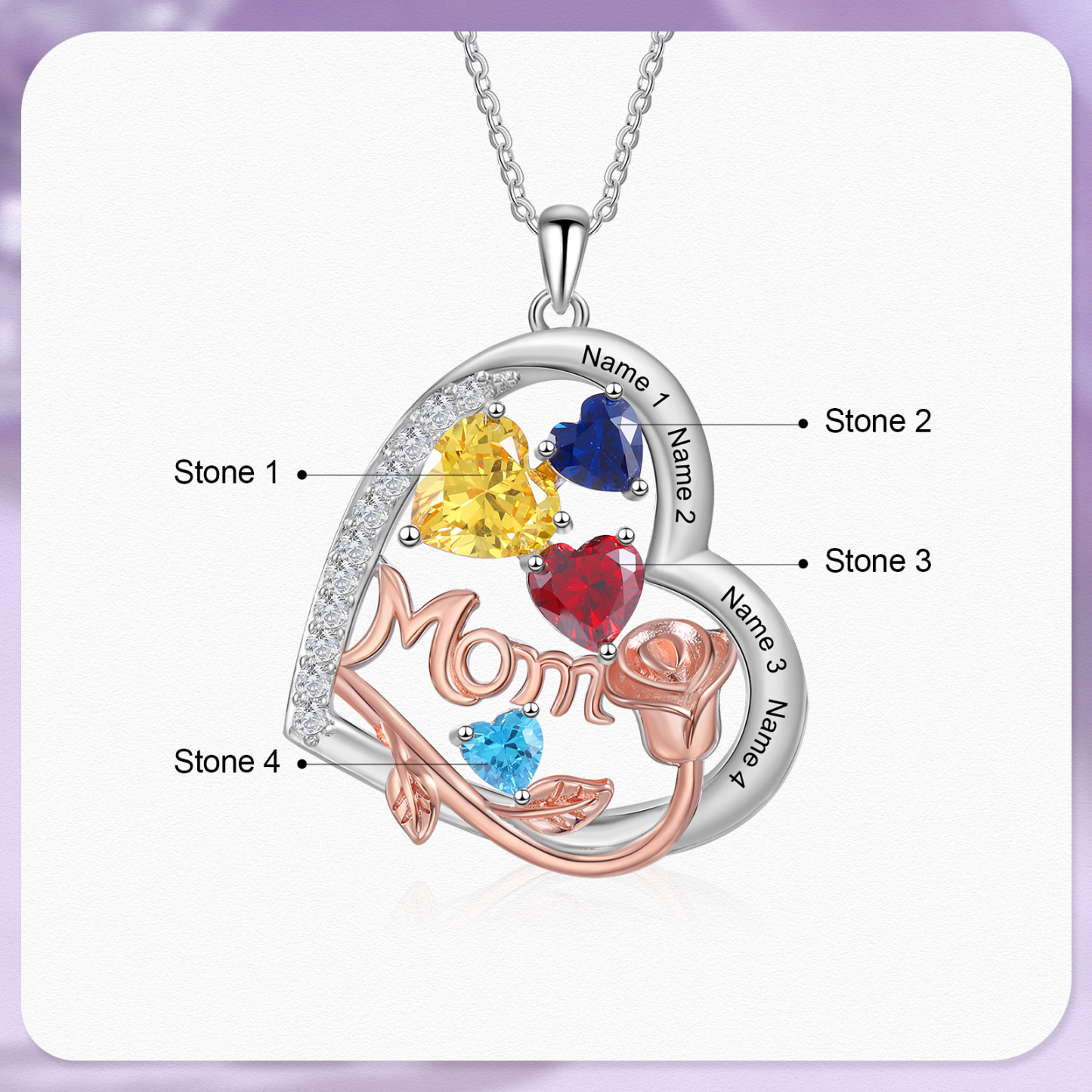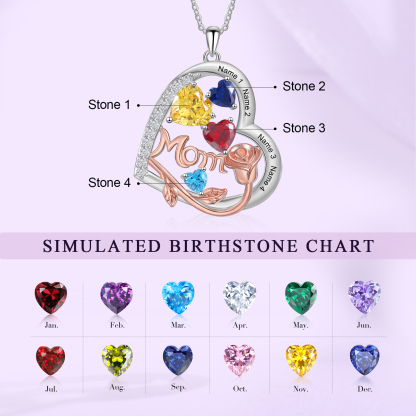 4 Names-Personalized Hearts Necklace Custom Birthstone Necklace Gifts for Mom