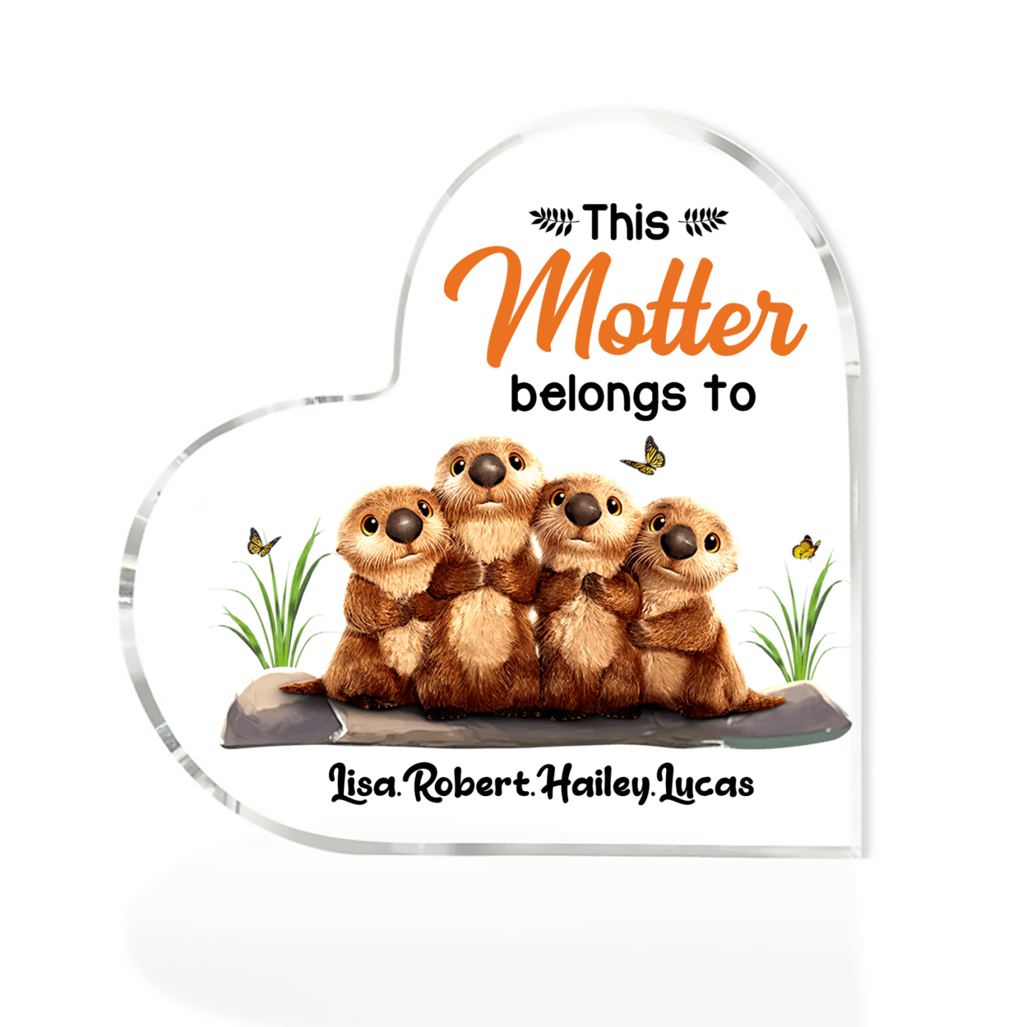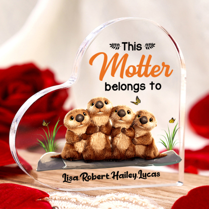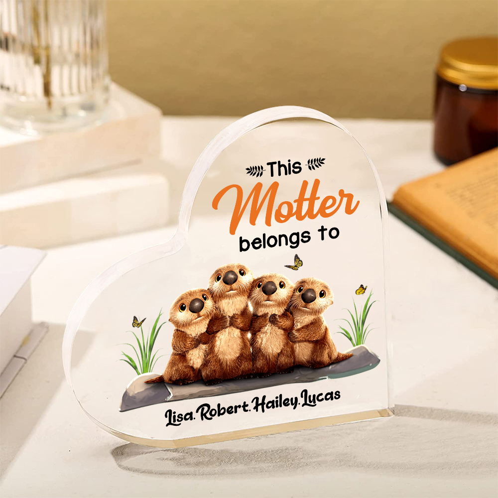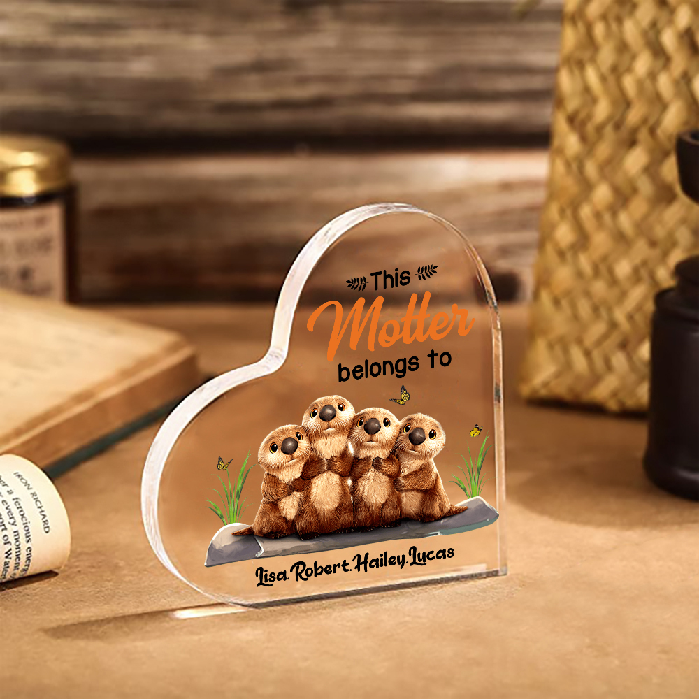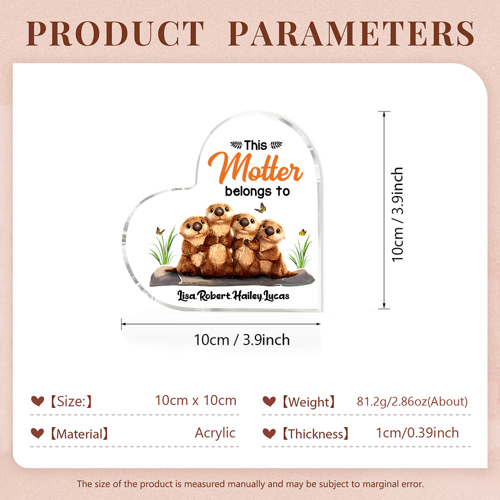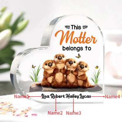 4 Names Personalized Mom Bear With Kids Personalized Acrylic Heart Keepsake Custom Text Acrylic Plaque Ornament Gift for Grandma/Mom This Motter Belongs to...