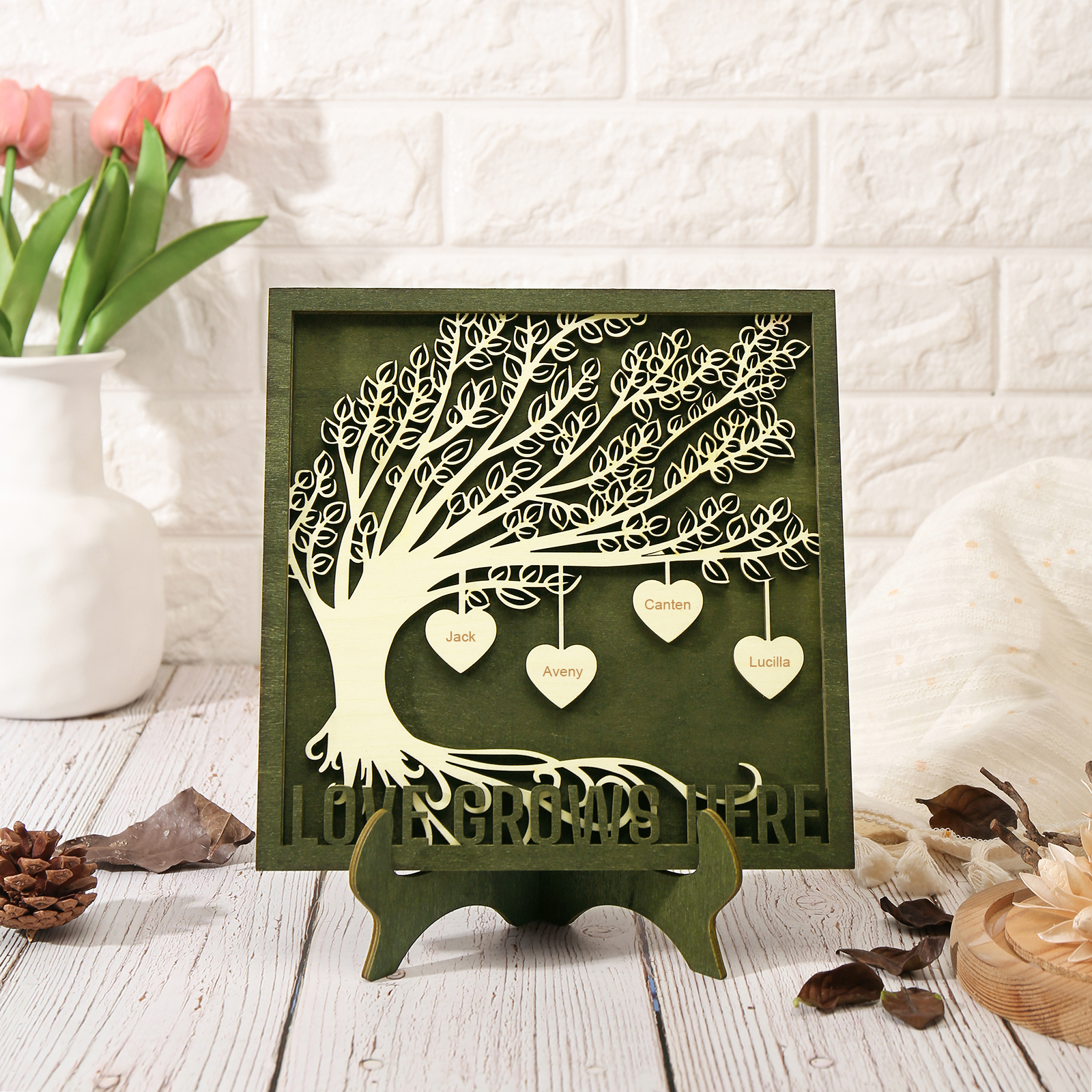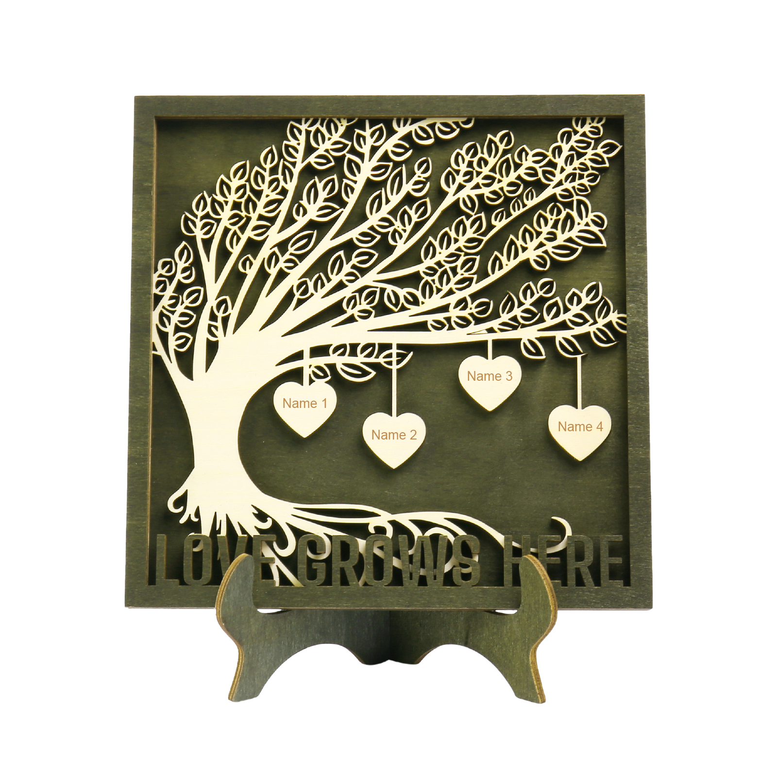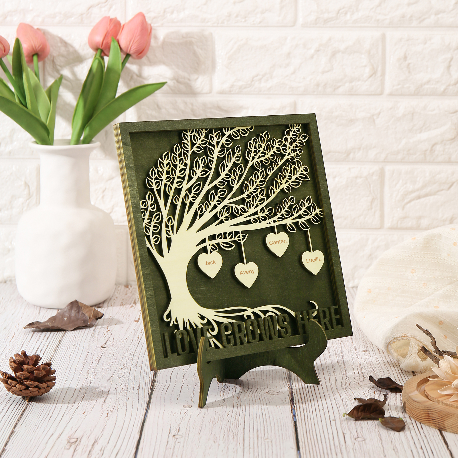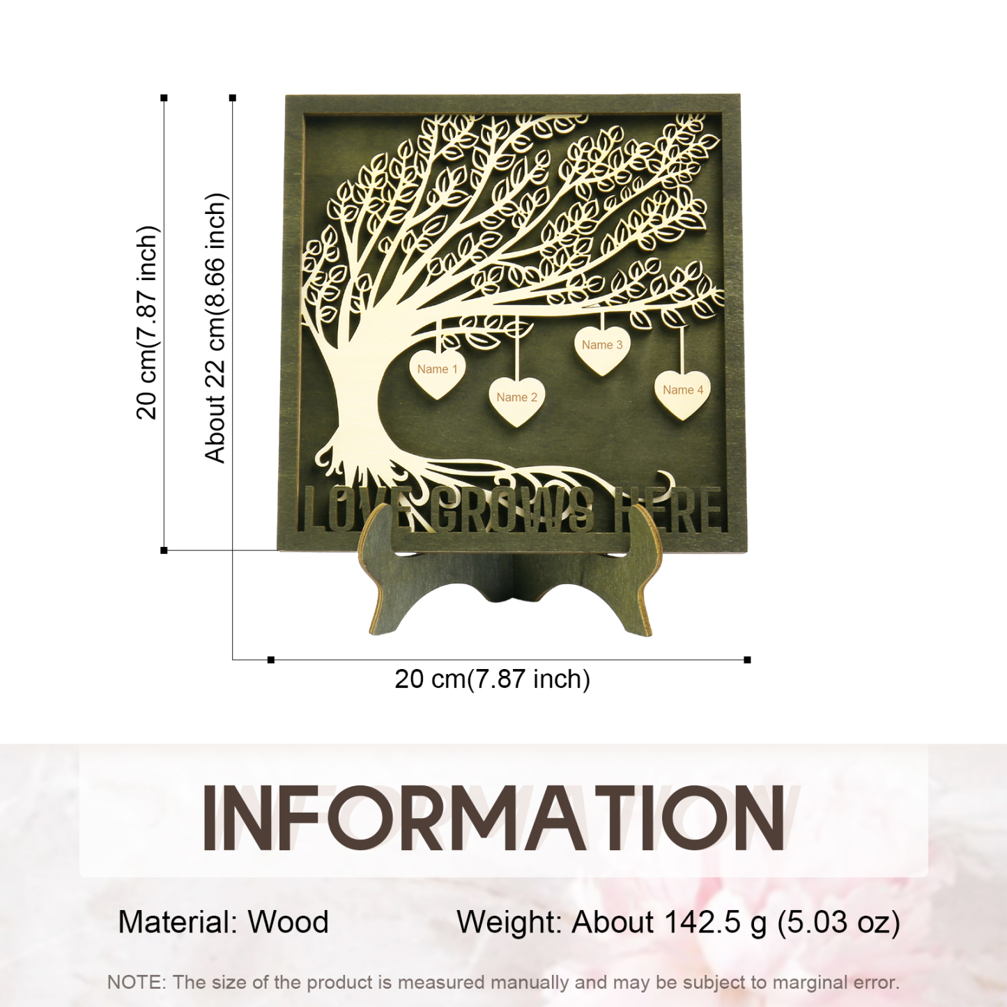 4 Names - Customized Framily Tree Type Wooden Ornaments Decorations Text Love Grows Here