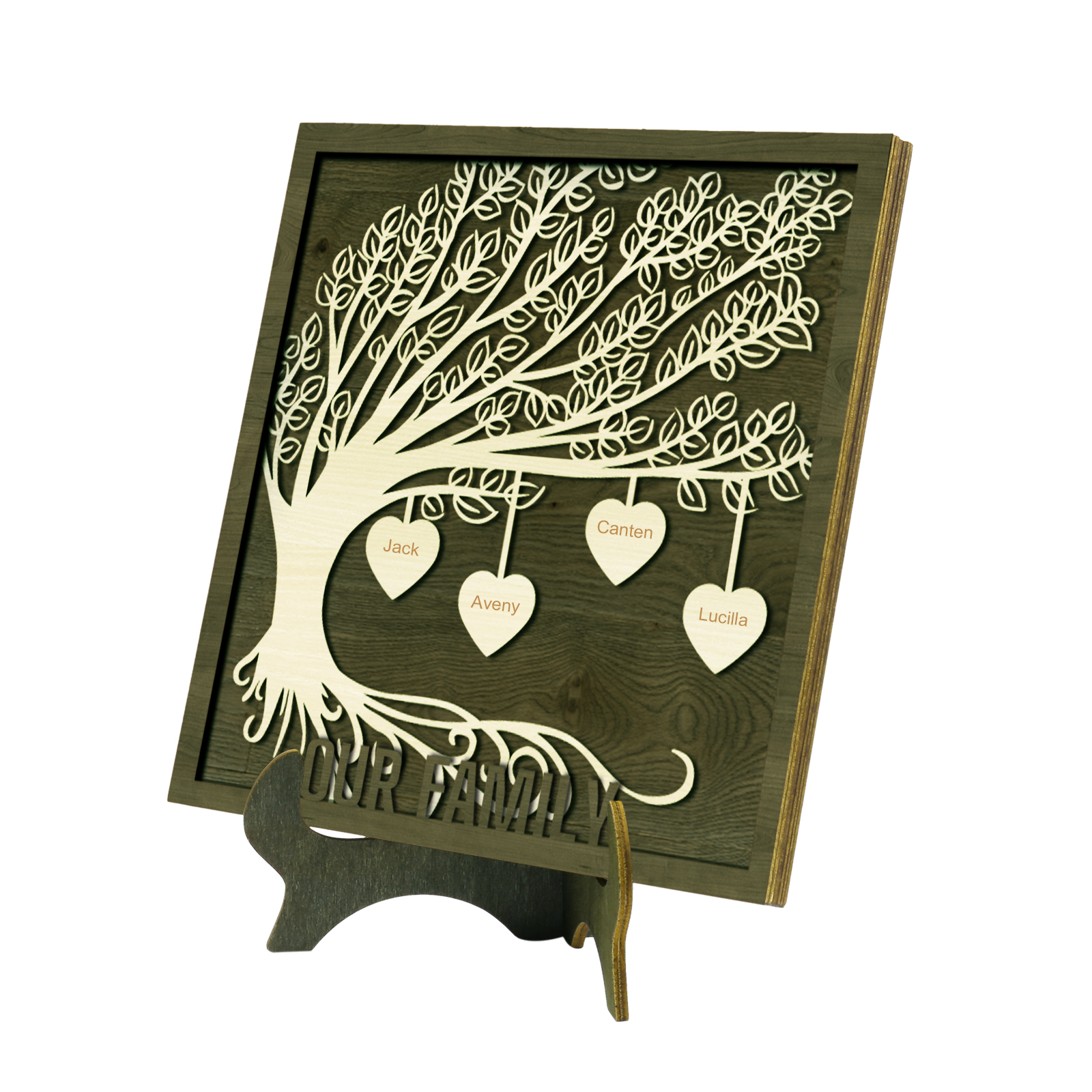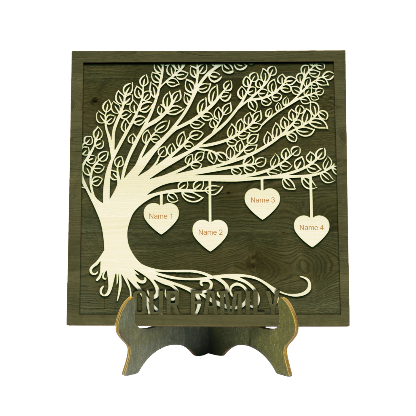 4 Names -Customized Tree Type Wooden Ornaments Decorations Text Our Family