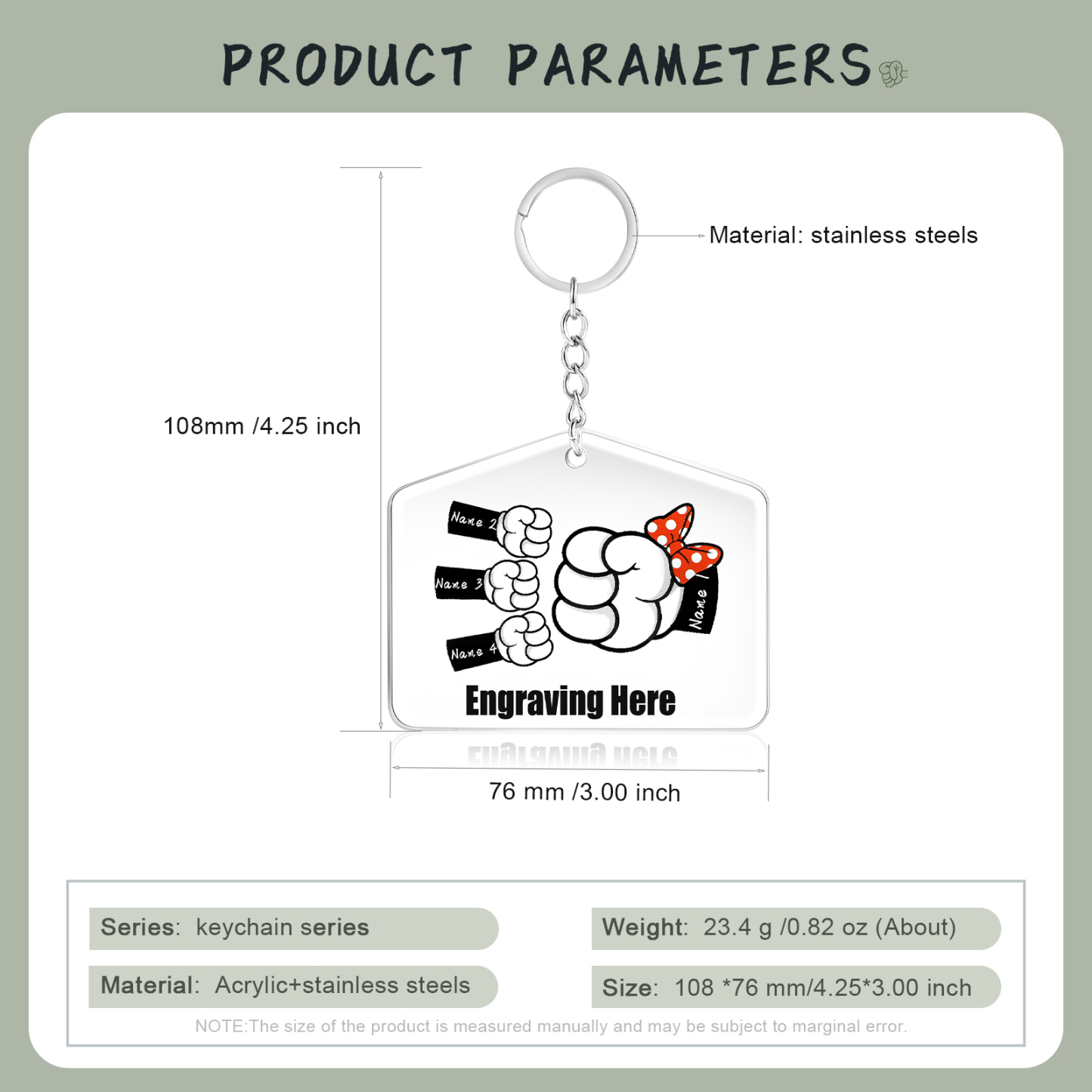 4 Names-Personalized Acrylic Family Fist Keychain-Custom Special Name Keychain Gift For Family