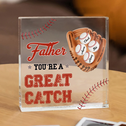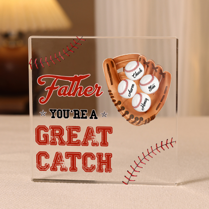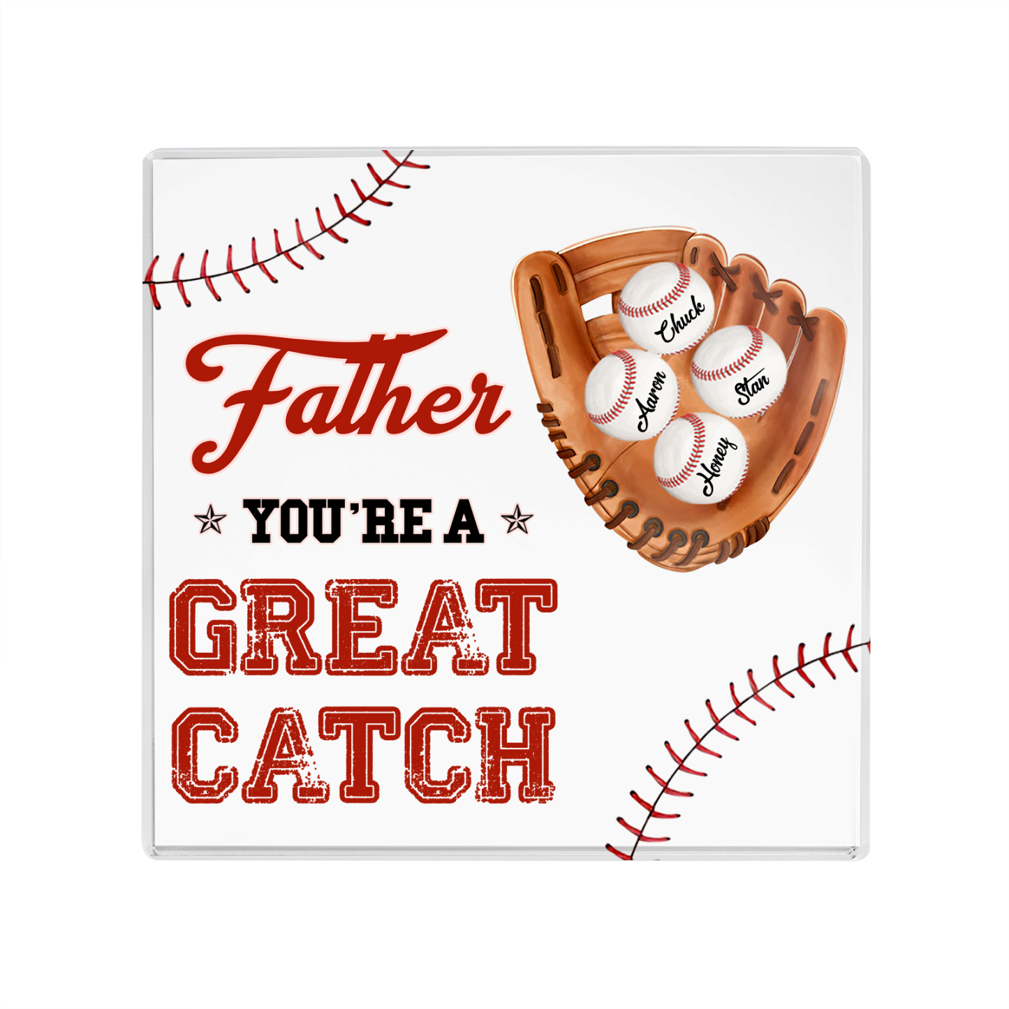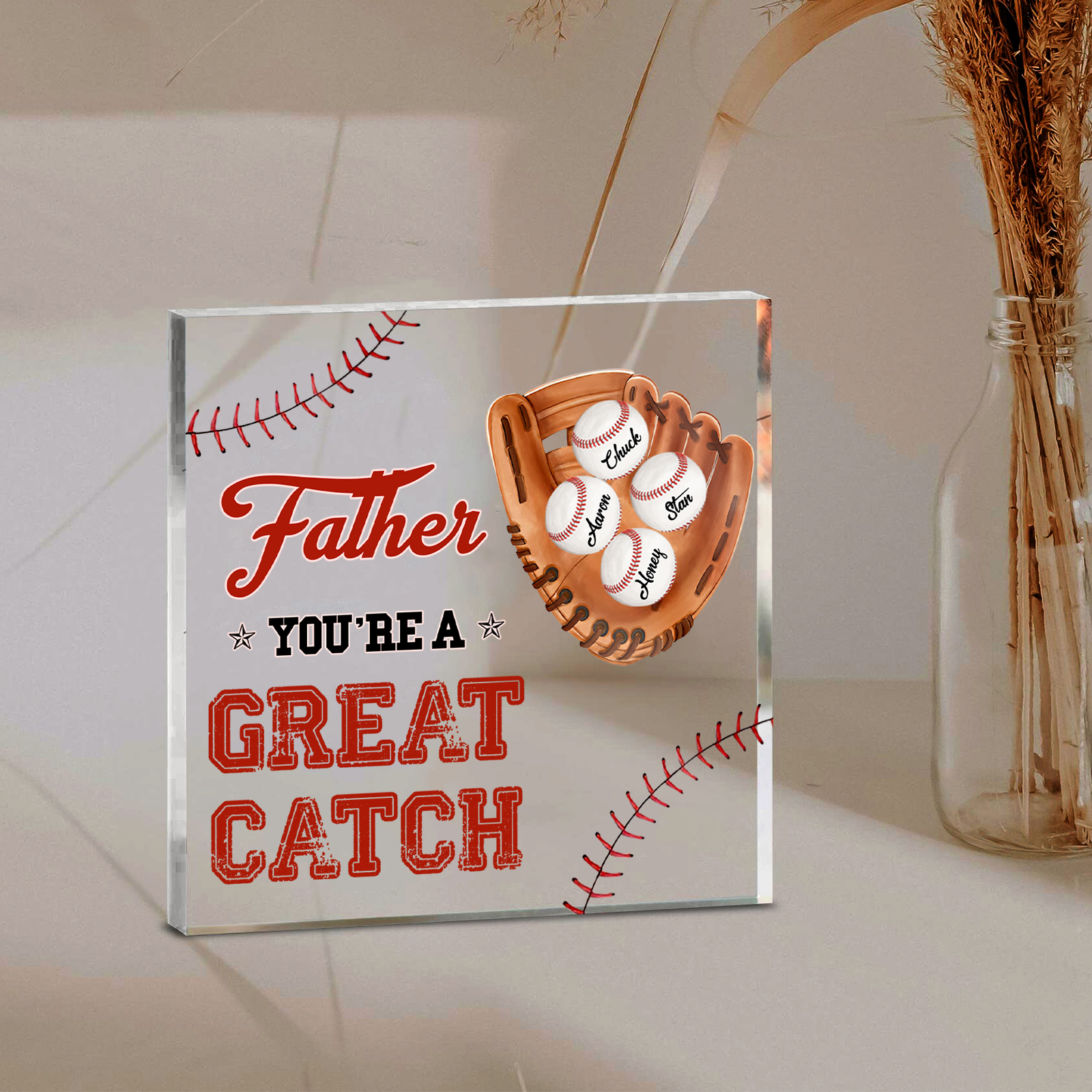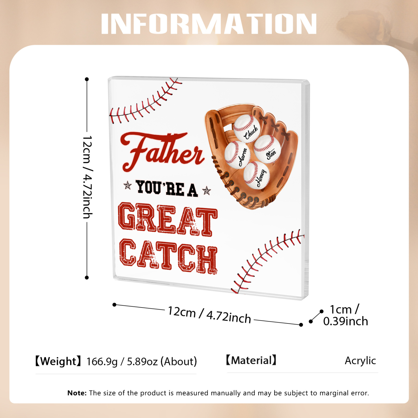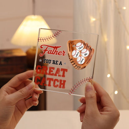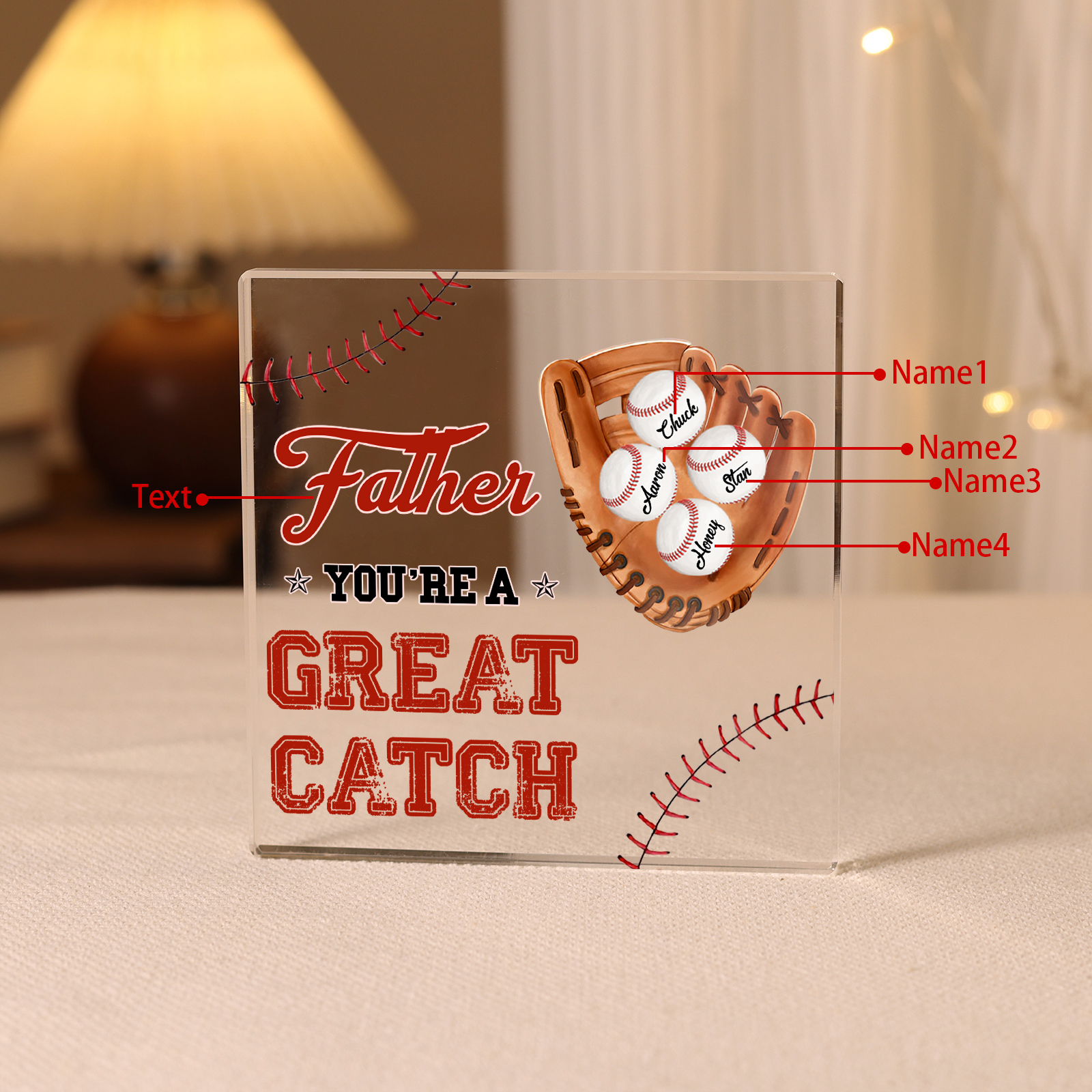 4 Names - Personalized Baseball Acrylic Keepsake Customized Name and Text Acrylic Plaque Ornament Father's Day Gift for Dad