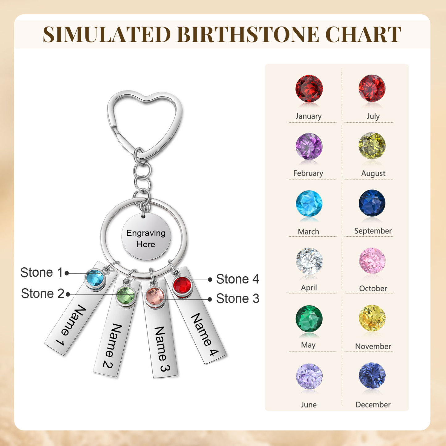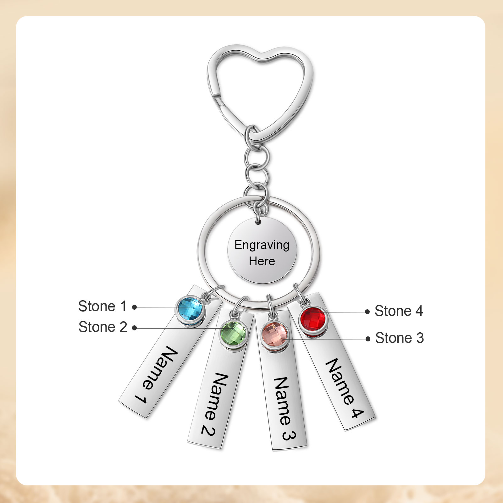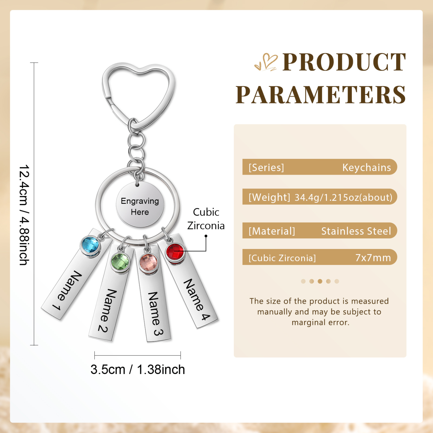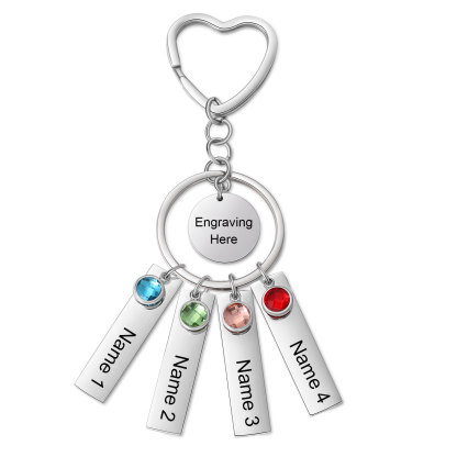 4 Names - Personalized Birthstone Love Pendant Design Keychain Hook Engraving Special Gift for Mom