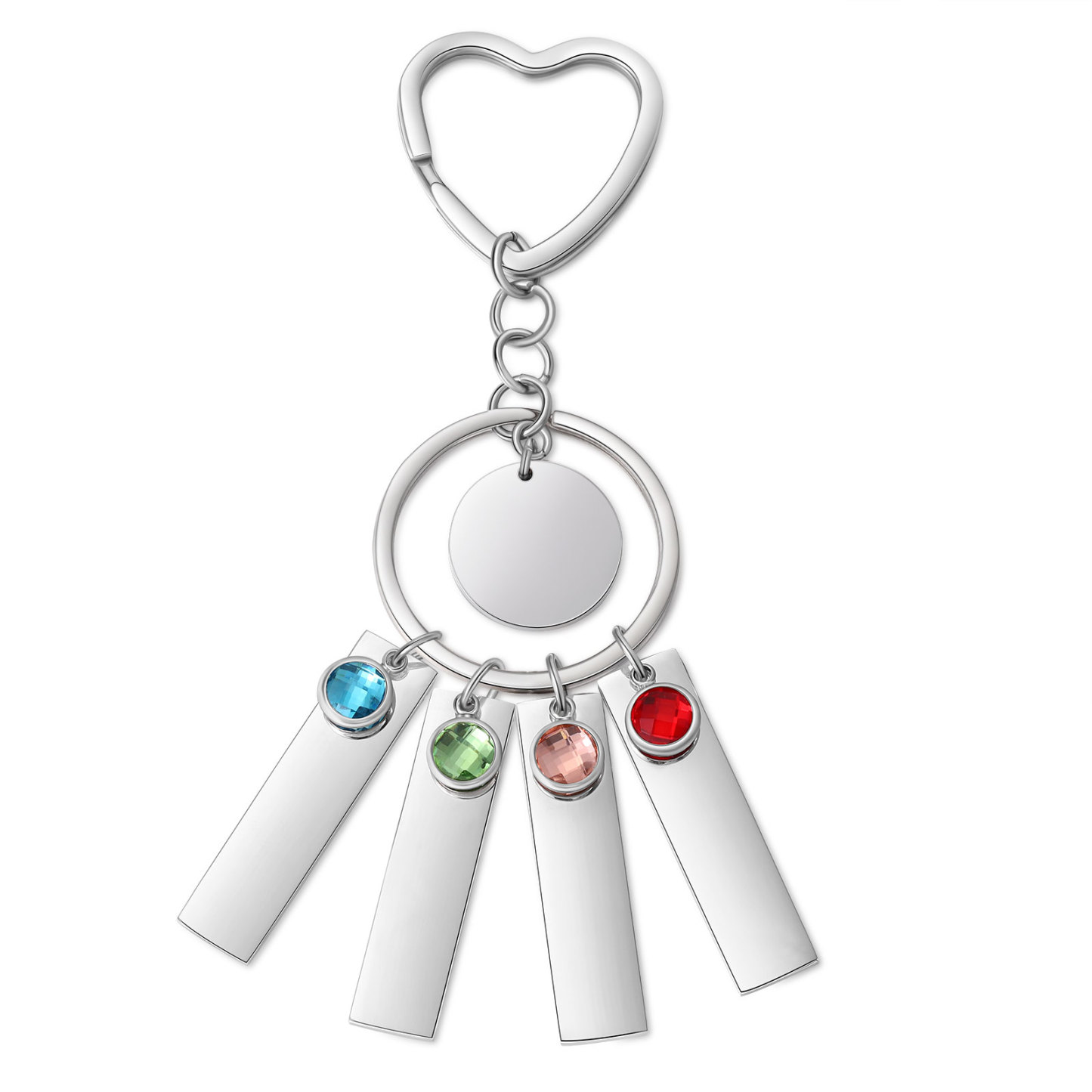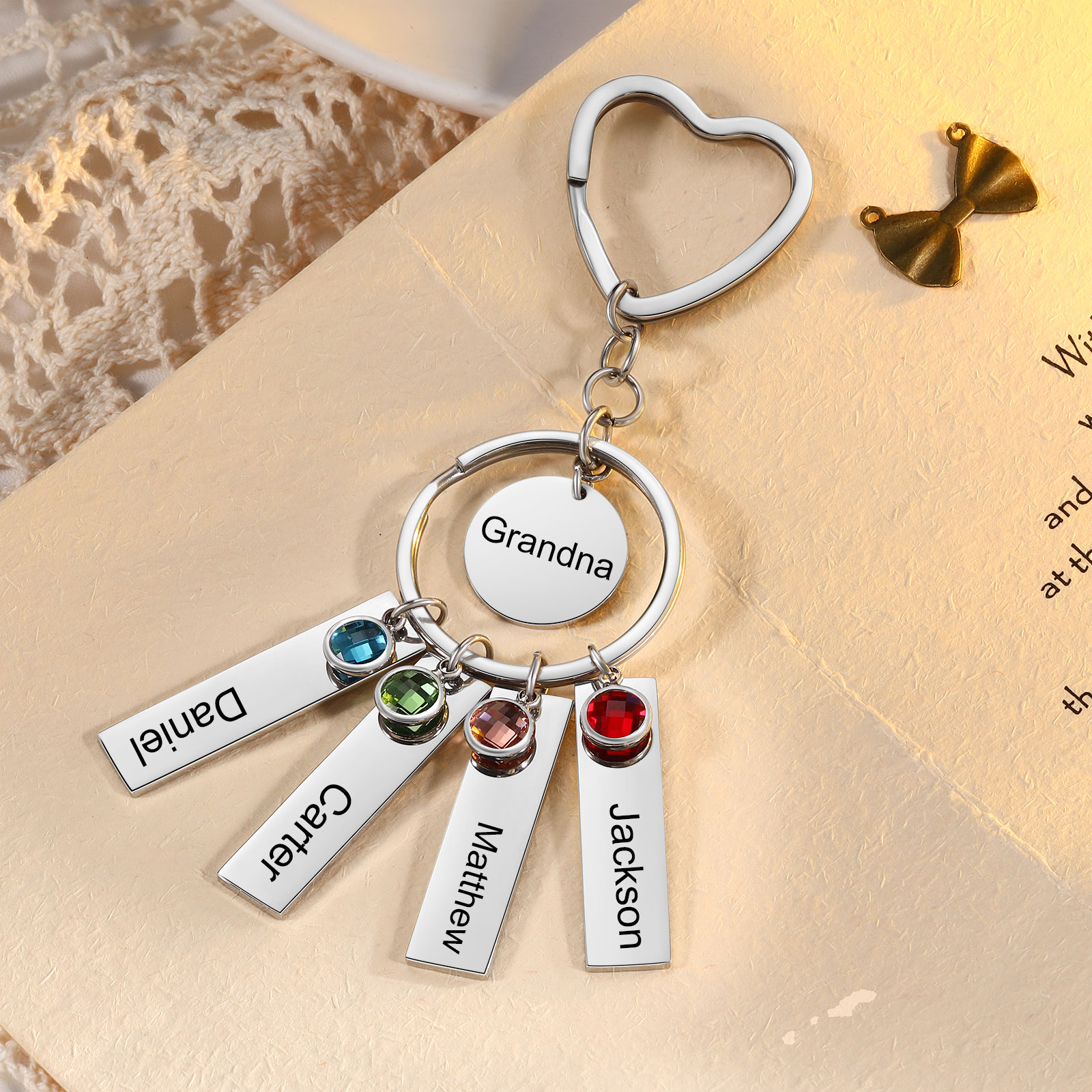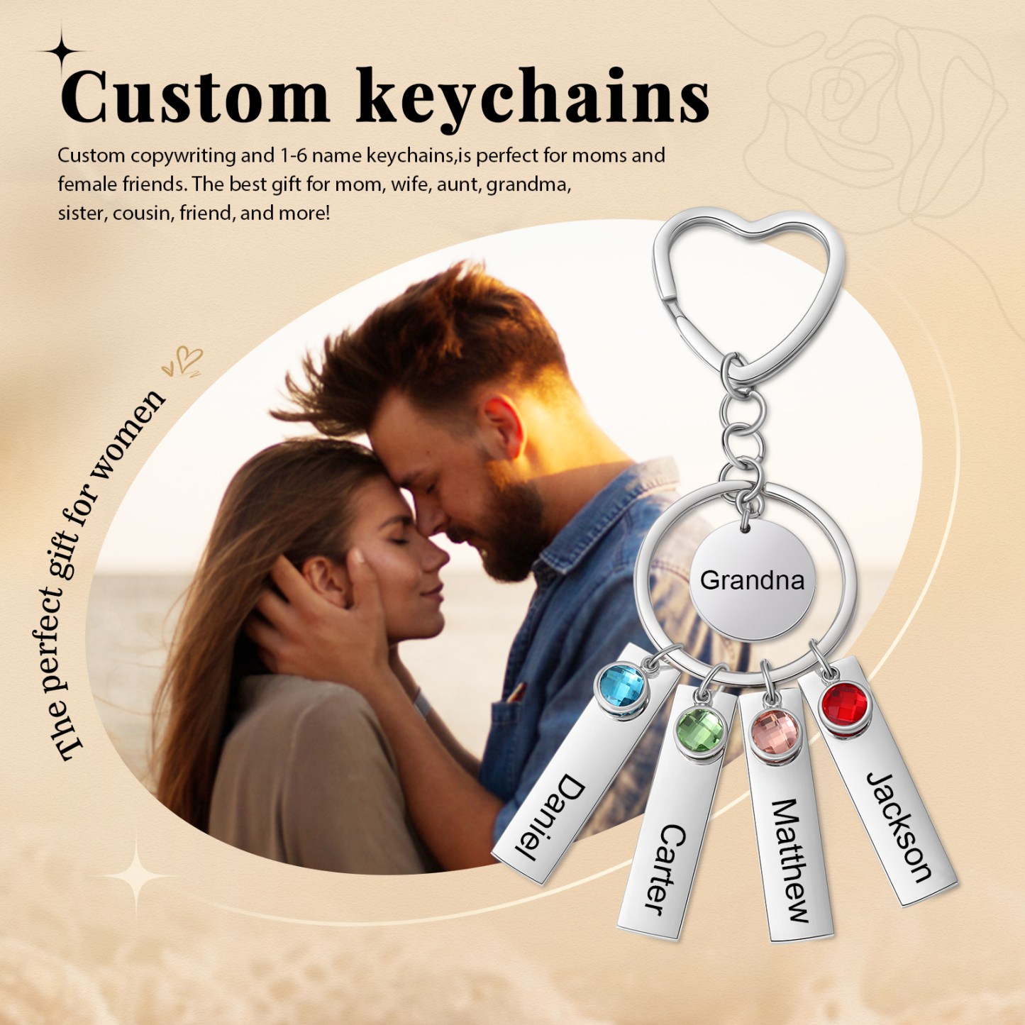 4 Names - Personalized Birthstone Love Pendant Design Keychain Hook Engraving Special Gift for Mom