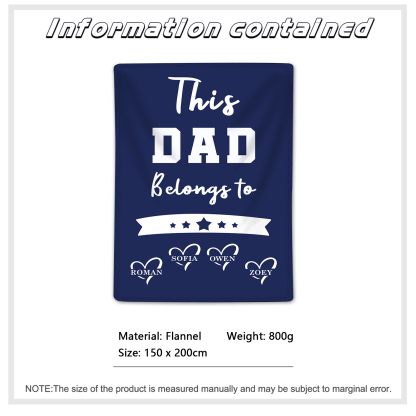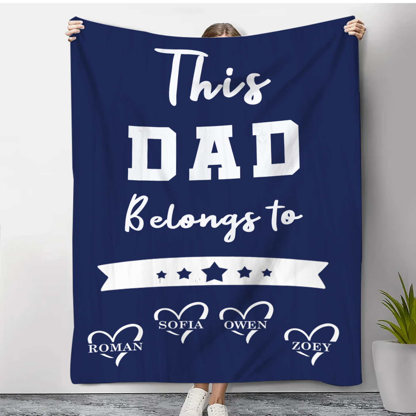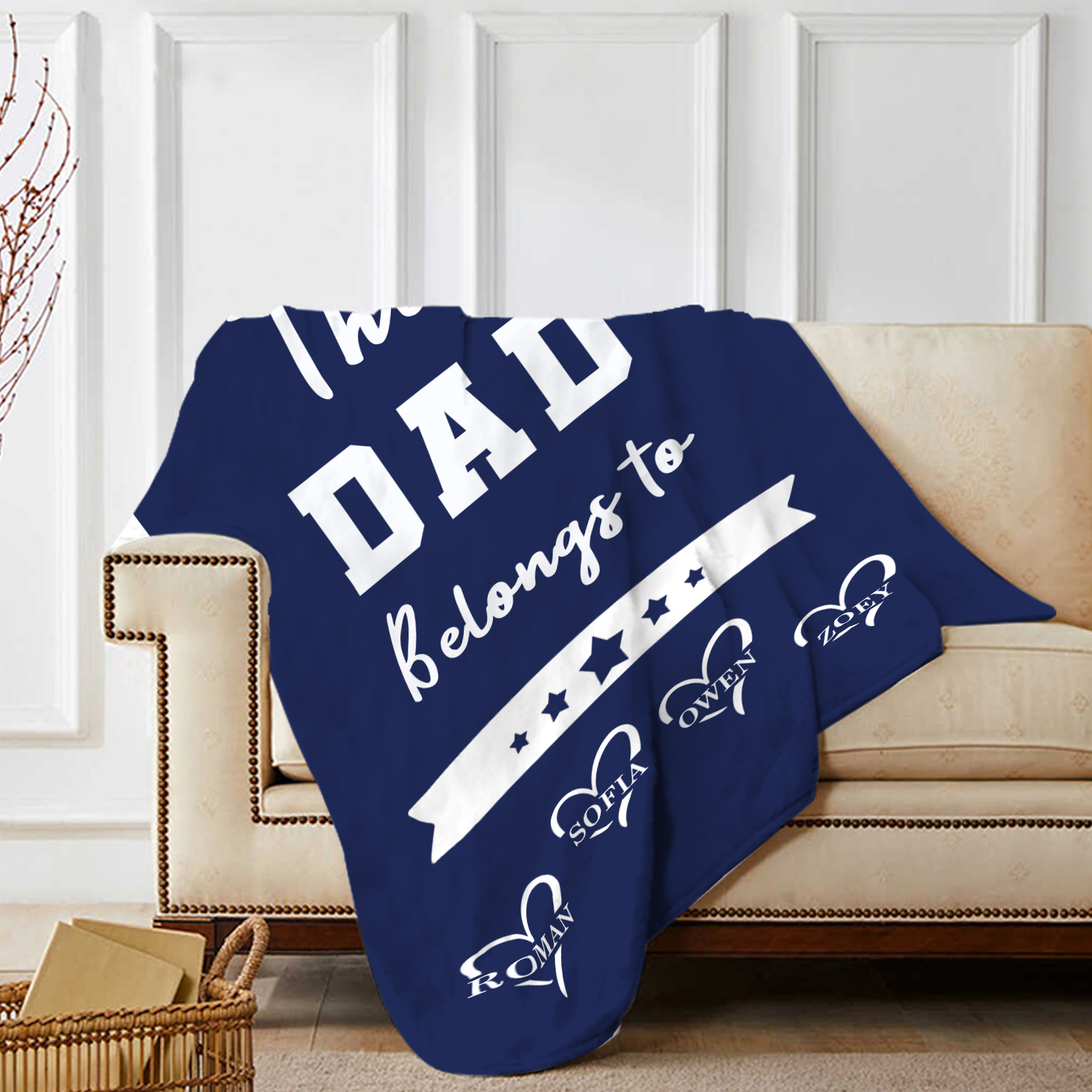 4 Names-Personalized Blanket "This Dad belongs to" Customized Name as a Father's Day Gift for Dad