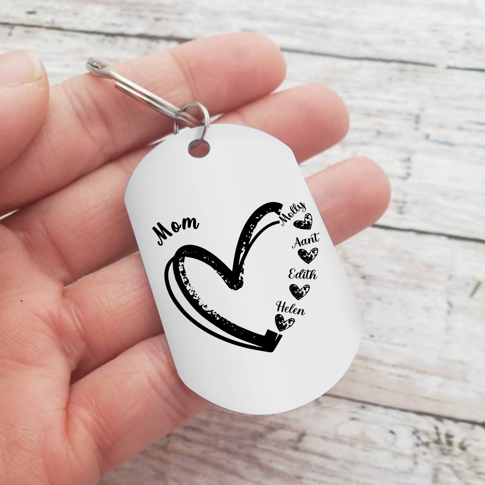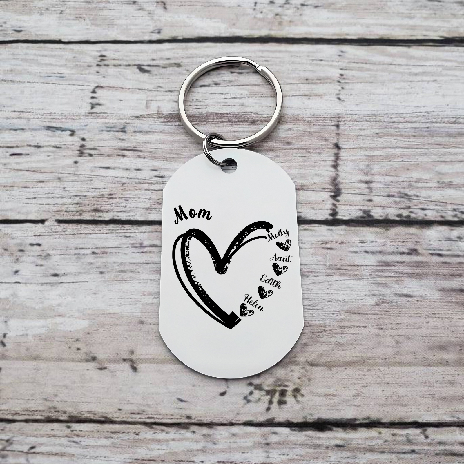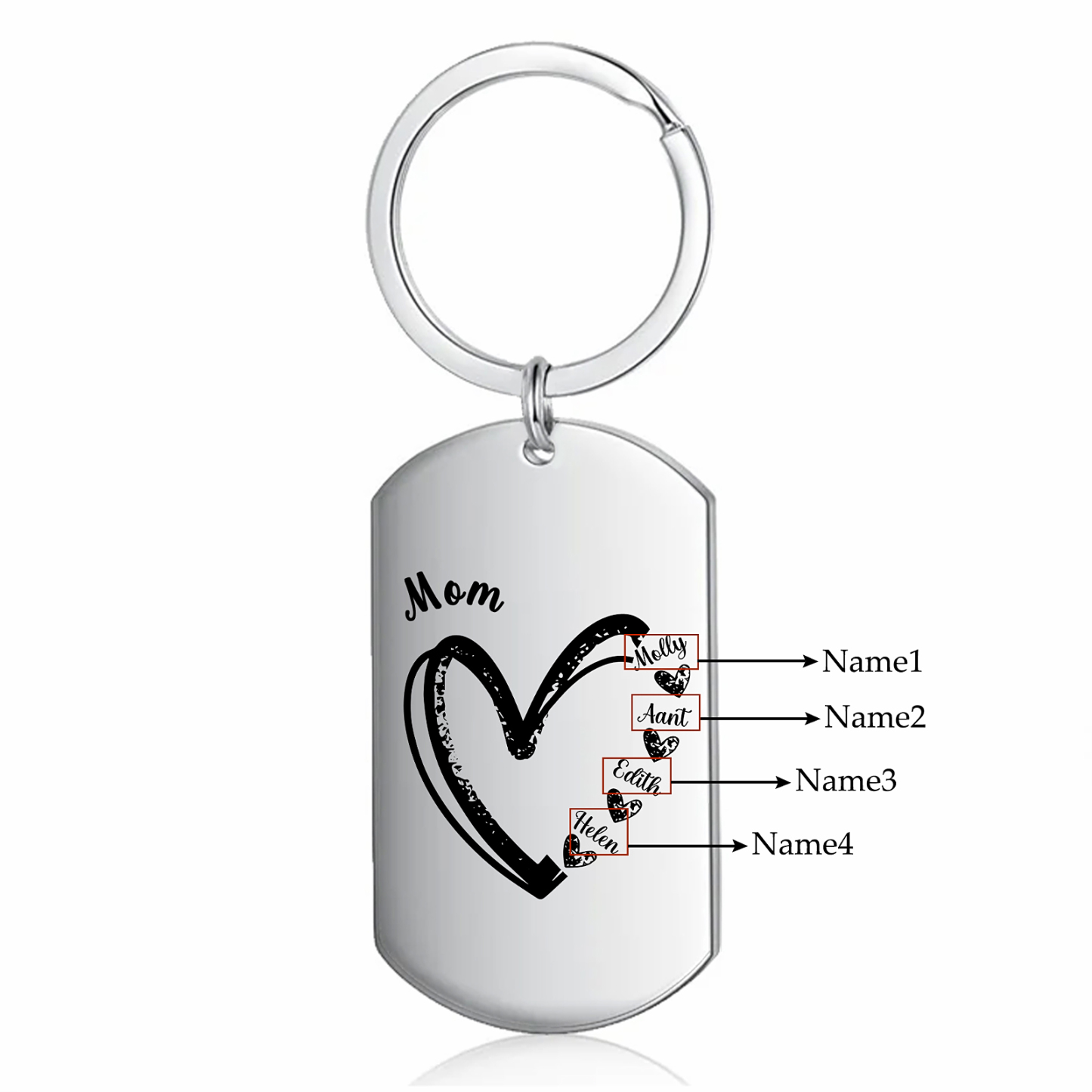 4 Names Personalized Charm Love Design Keychain Mom Hook Engraved Text Special Gift for Mom