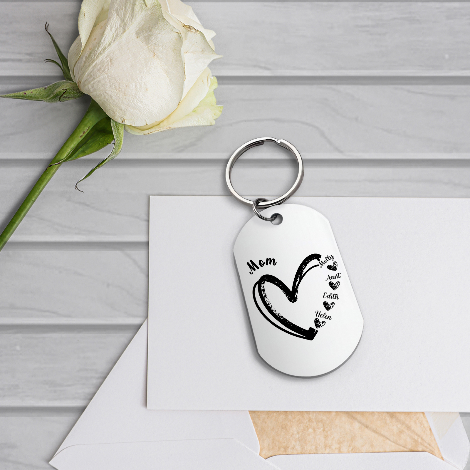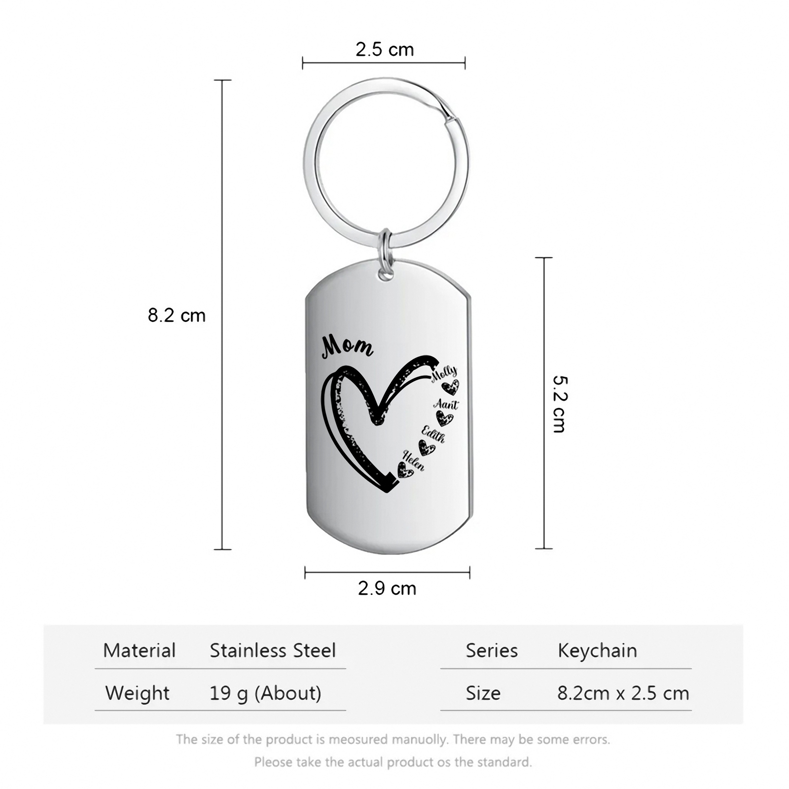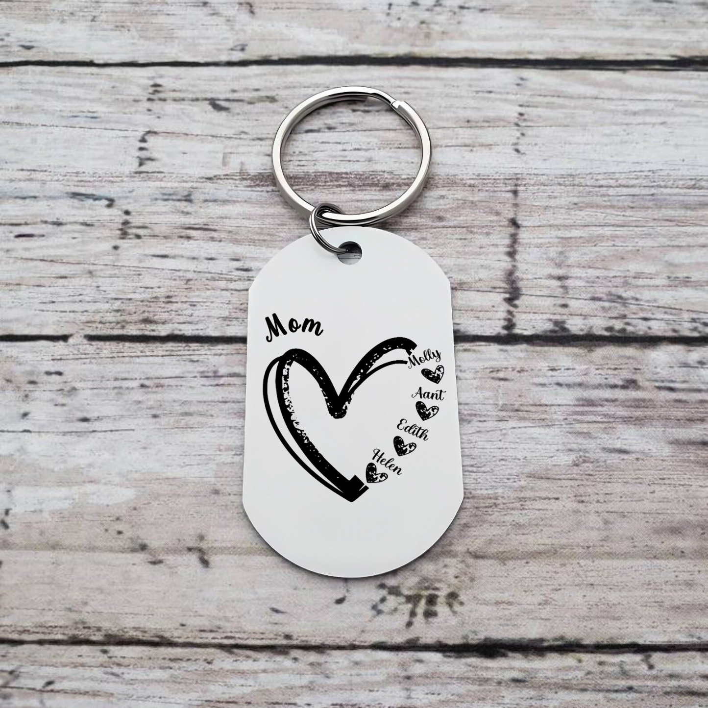 4 Names Personalized Charm Love Design Keychain Mom Hook Engraved Text Special Gift for Mom