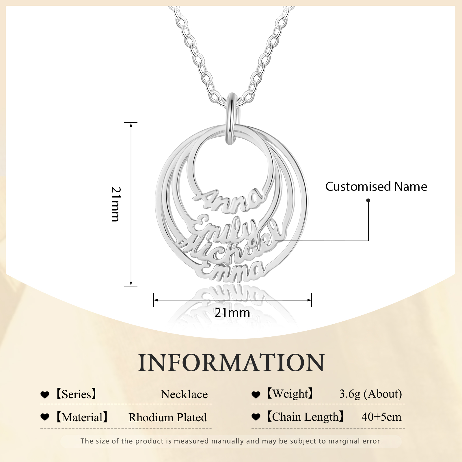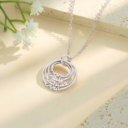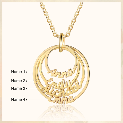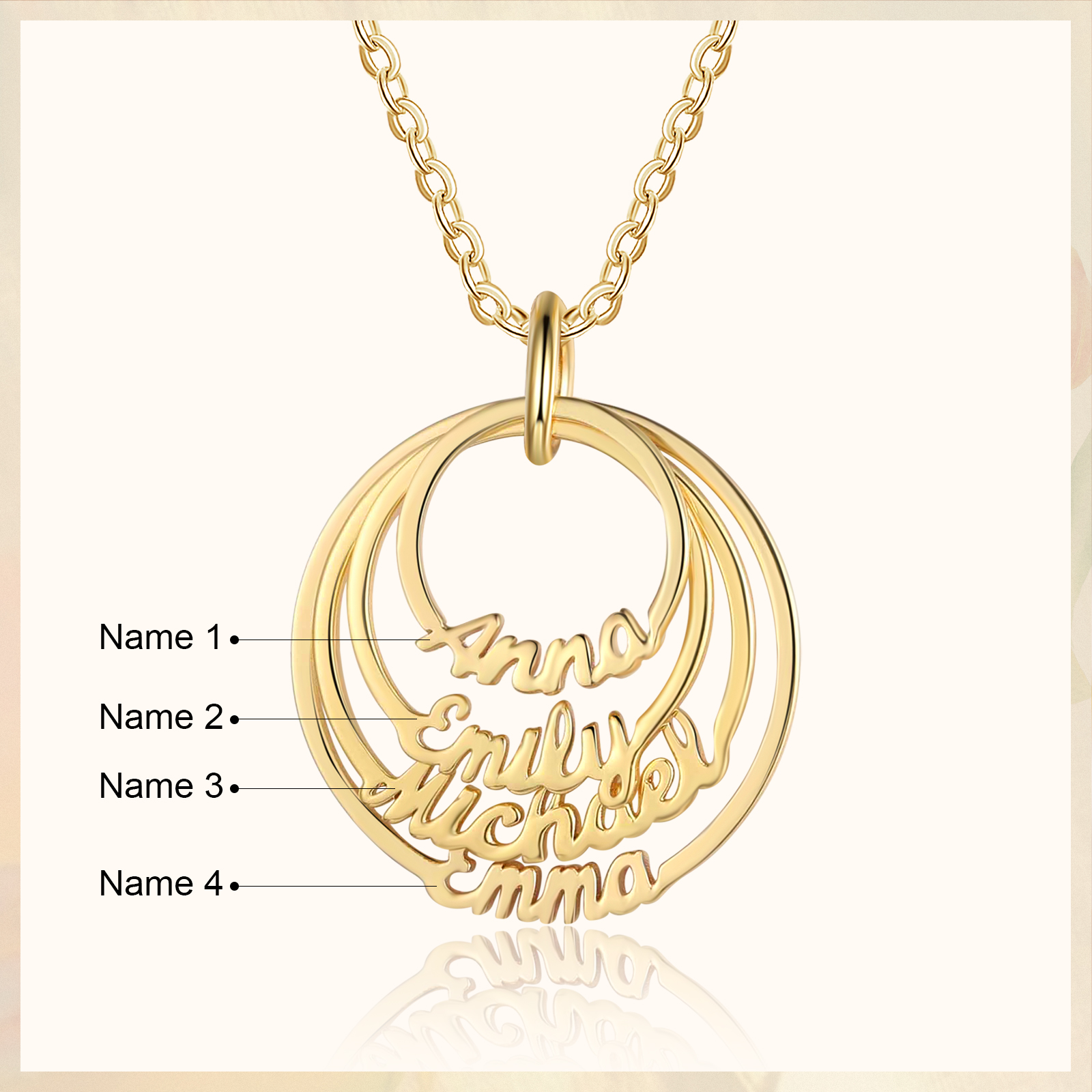 4 Names-Personalized Circle Necklace With 4 Names Pendant Engraved Names Gift For Woman