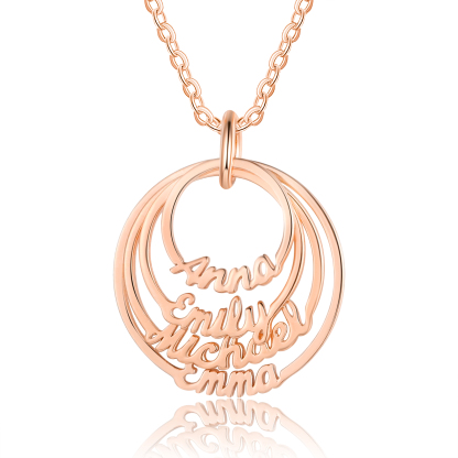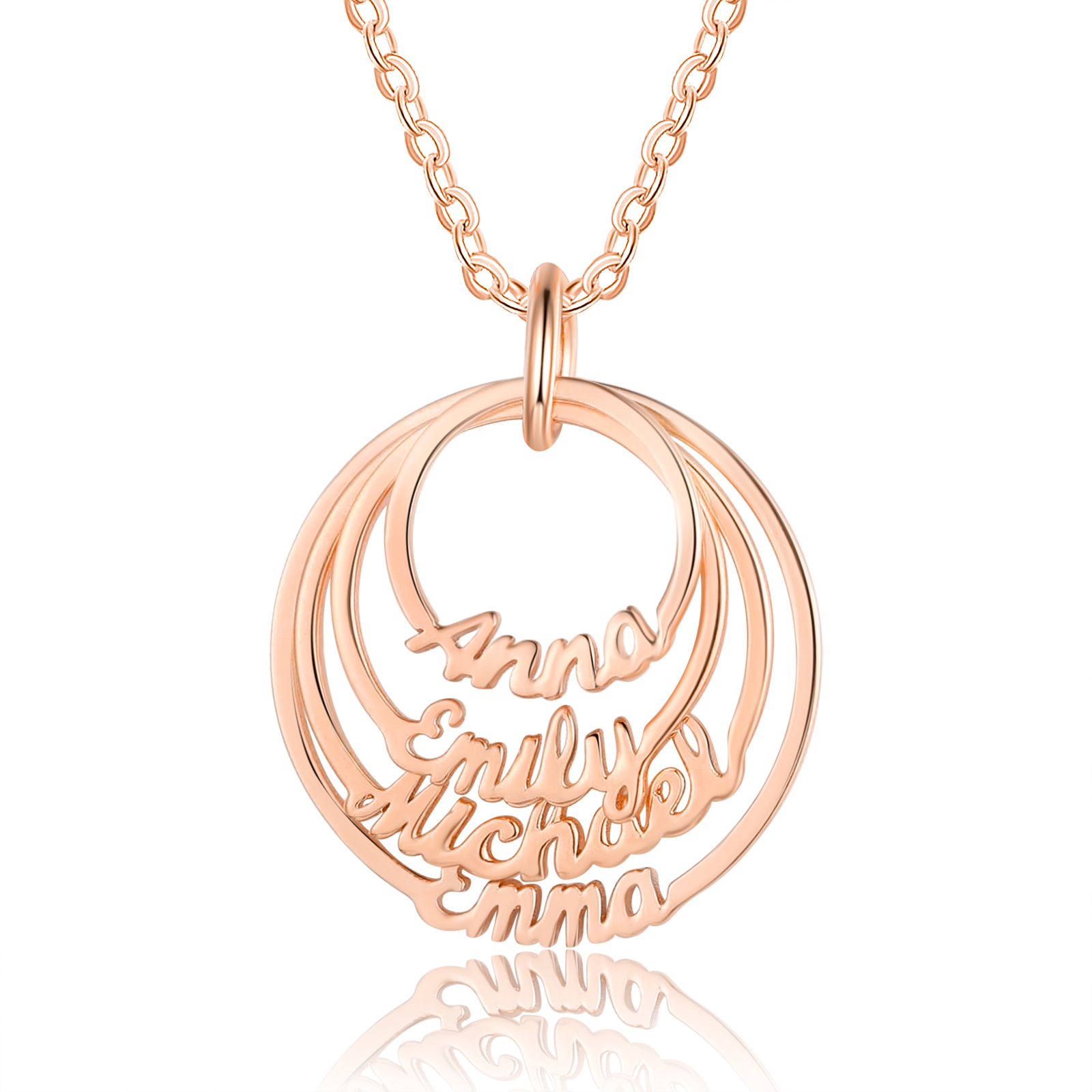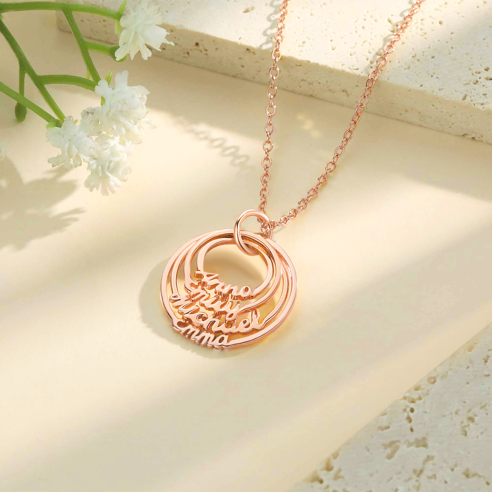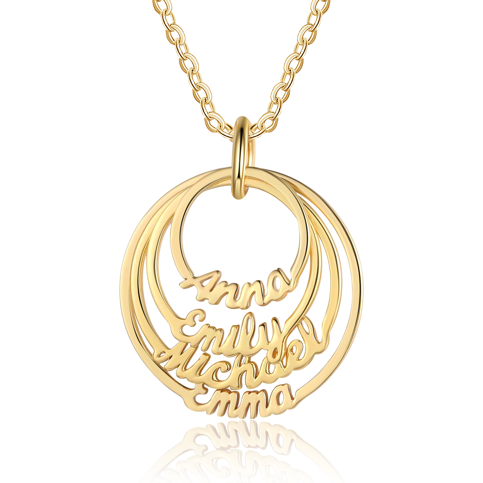4 Names-Personalized Circle Necklace With 4 Names Pendant Engraved Names Gift For Woman