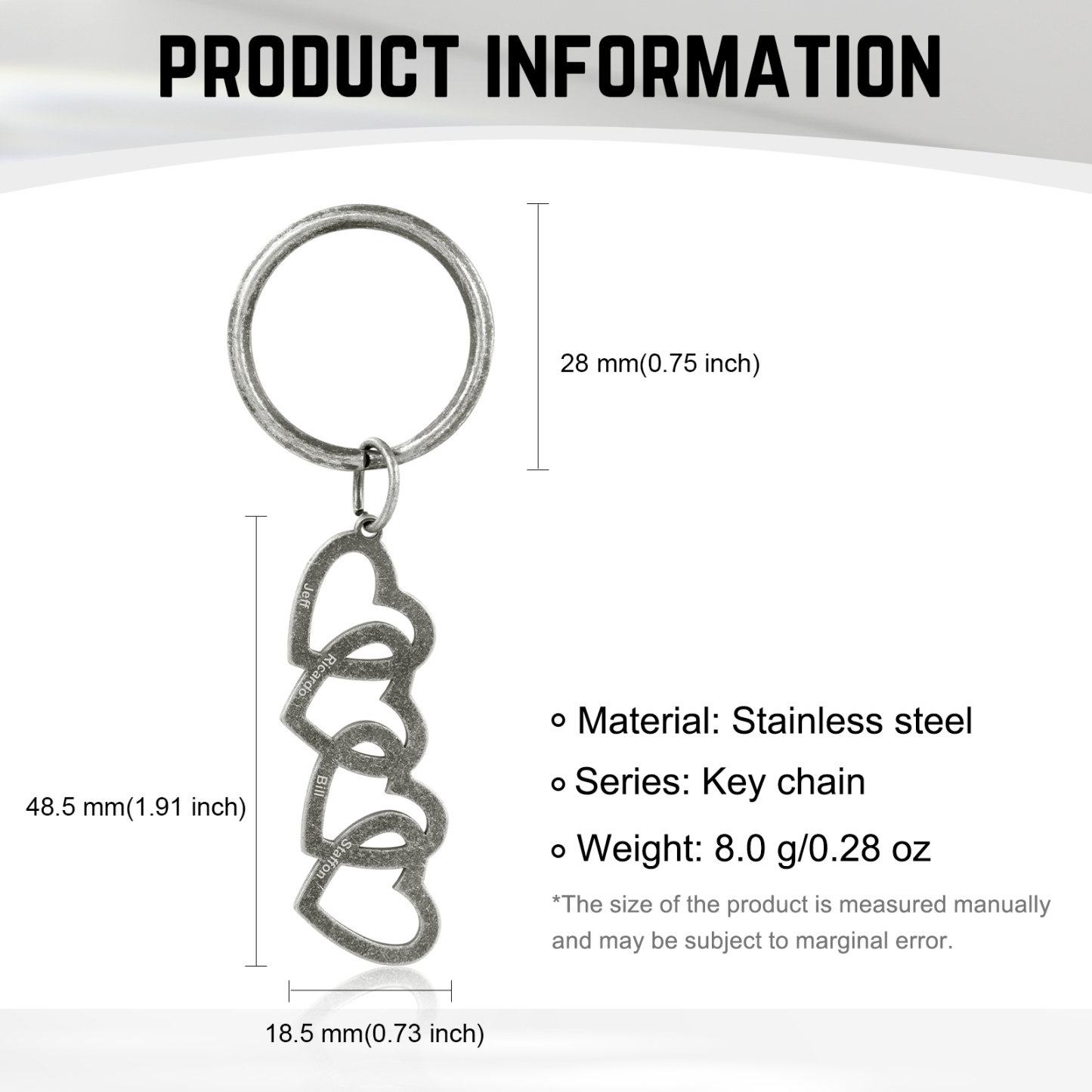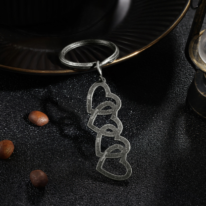 4 Names-Personalized Concatenated Hearts Stainless Steel Heart-Shape Keychain-Custom Names Keychain Gift