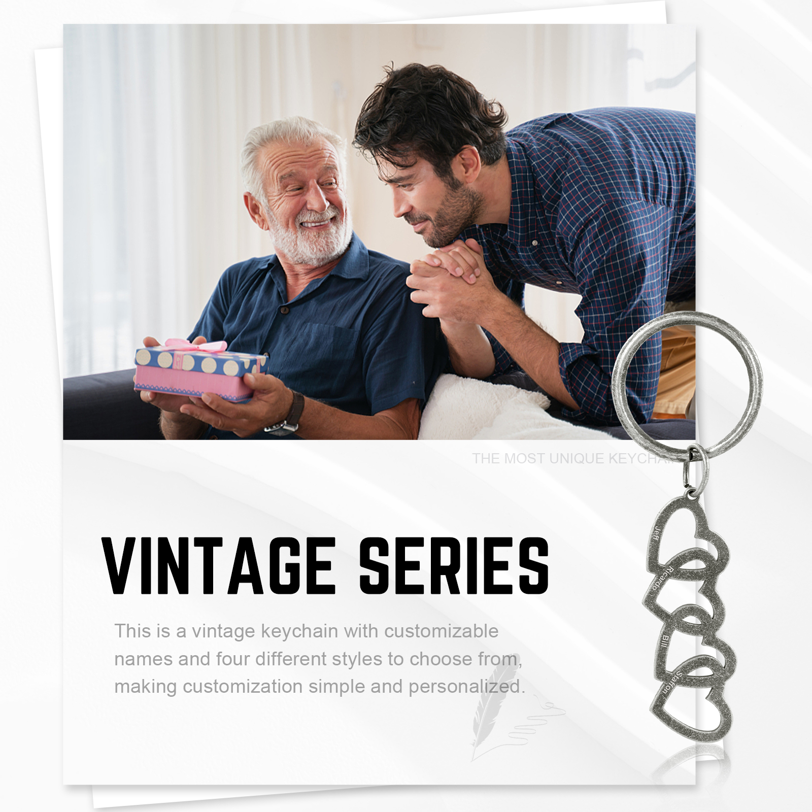 Our Keychain is a special gift! It can be customized with 2-5 names.