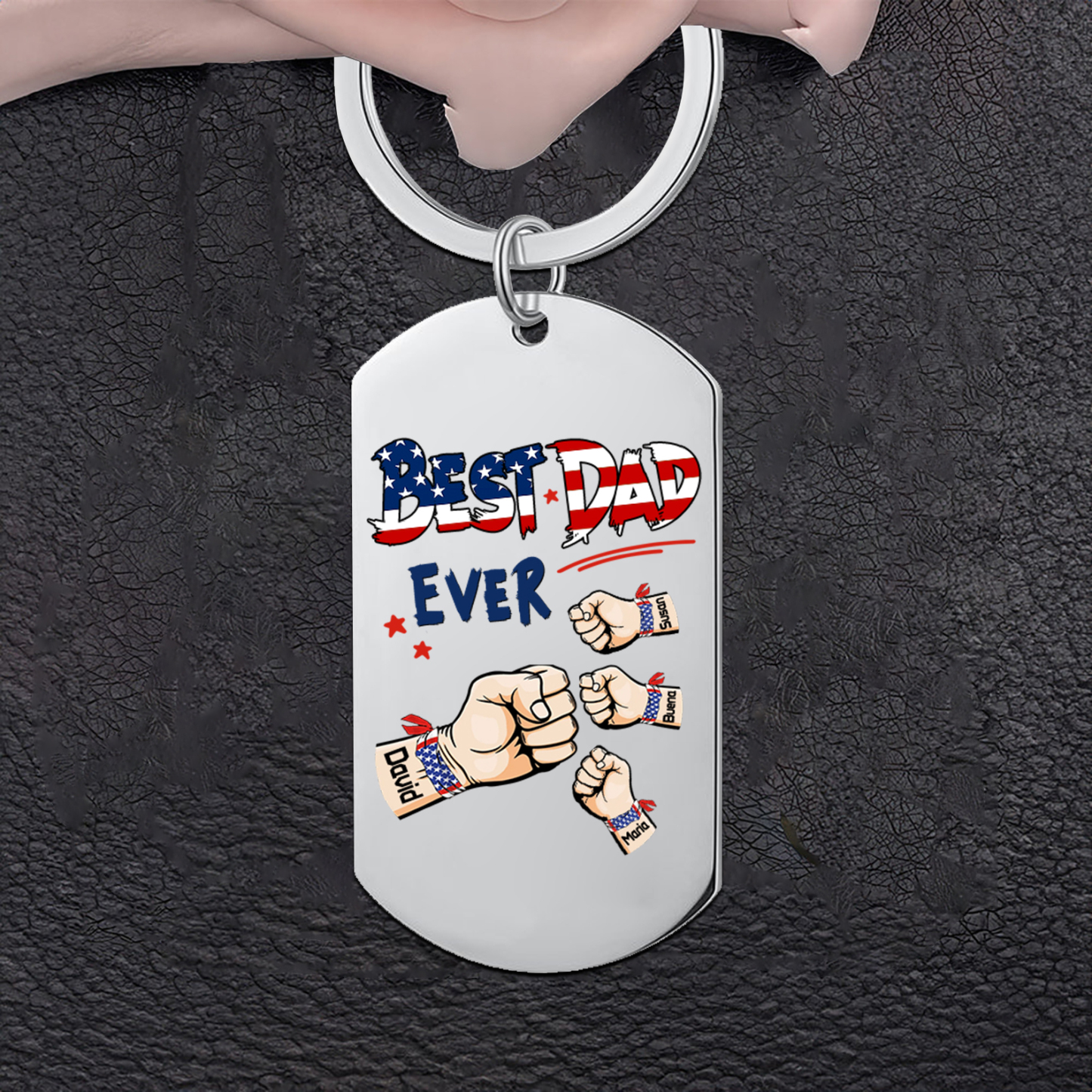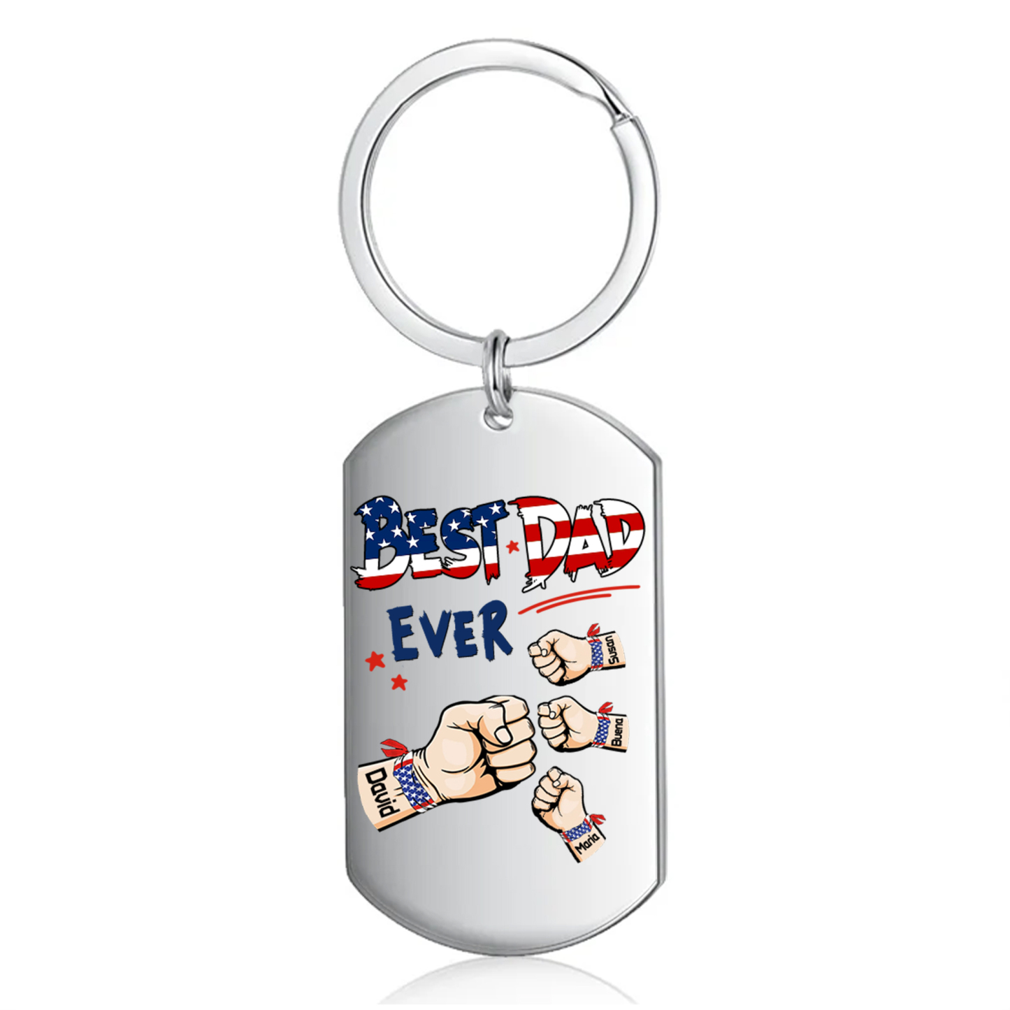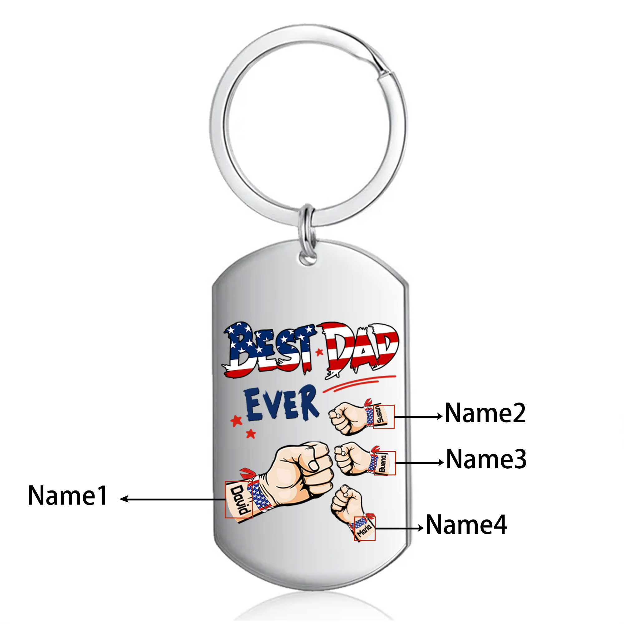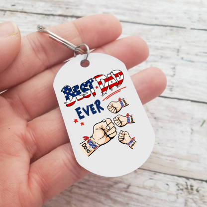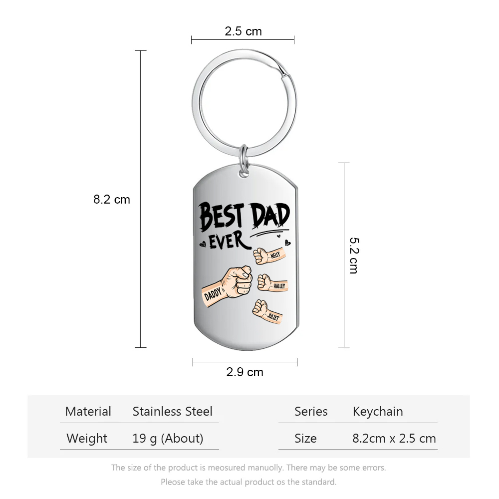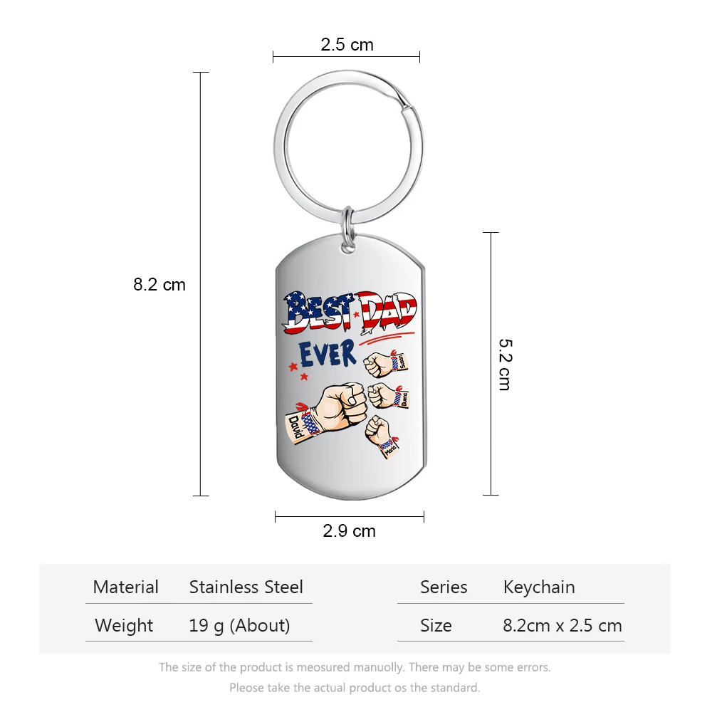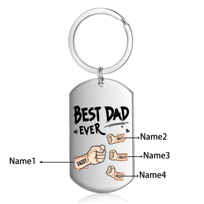 4 Names - Personalized Custom Fist Keychain Gift "Best Dad Ever" Special Keychain Gift for Dad
