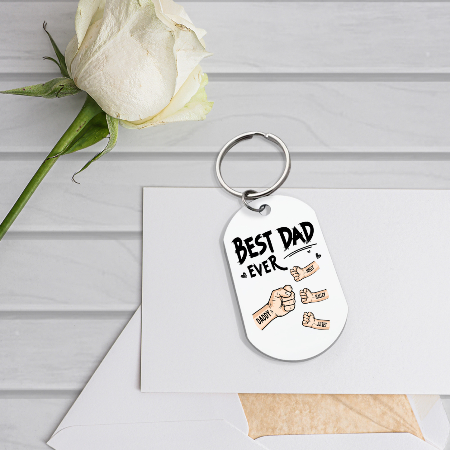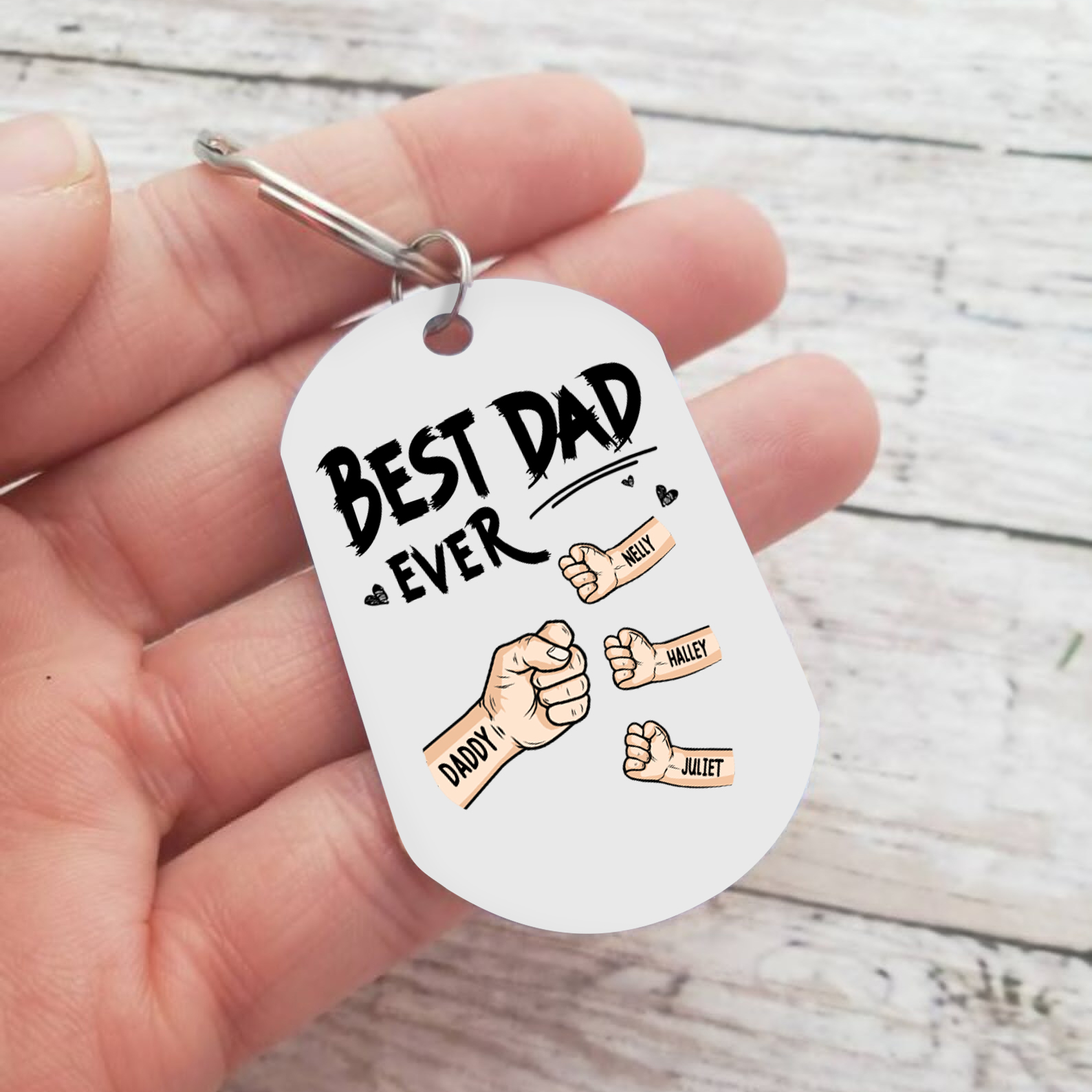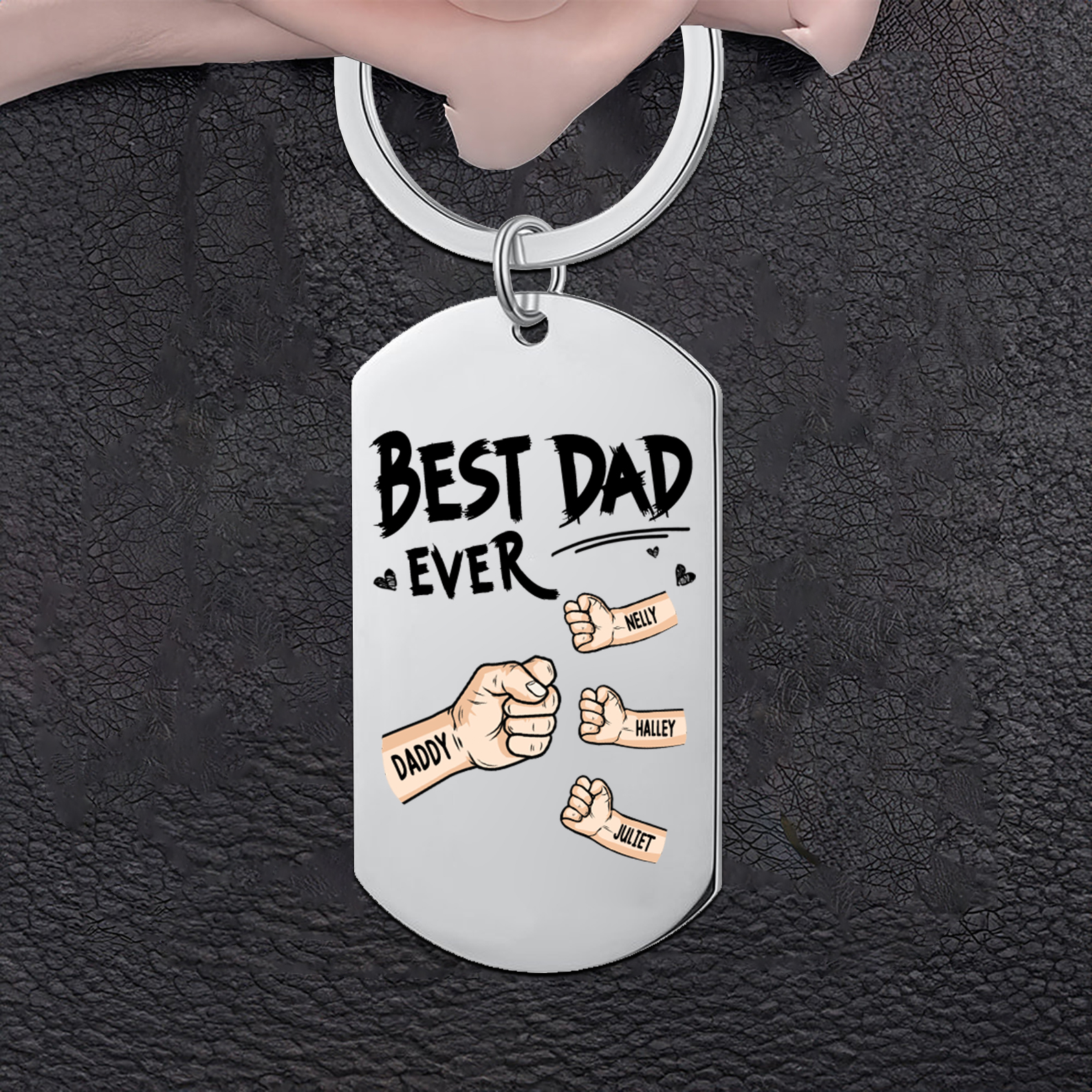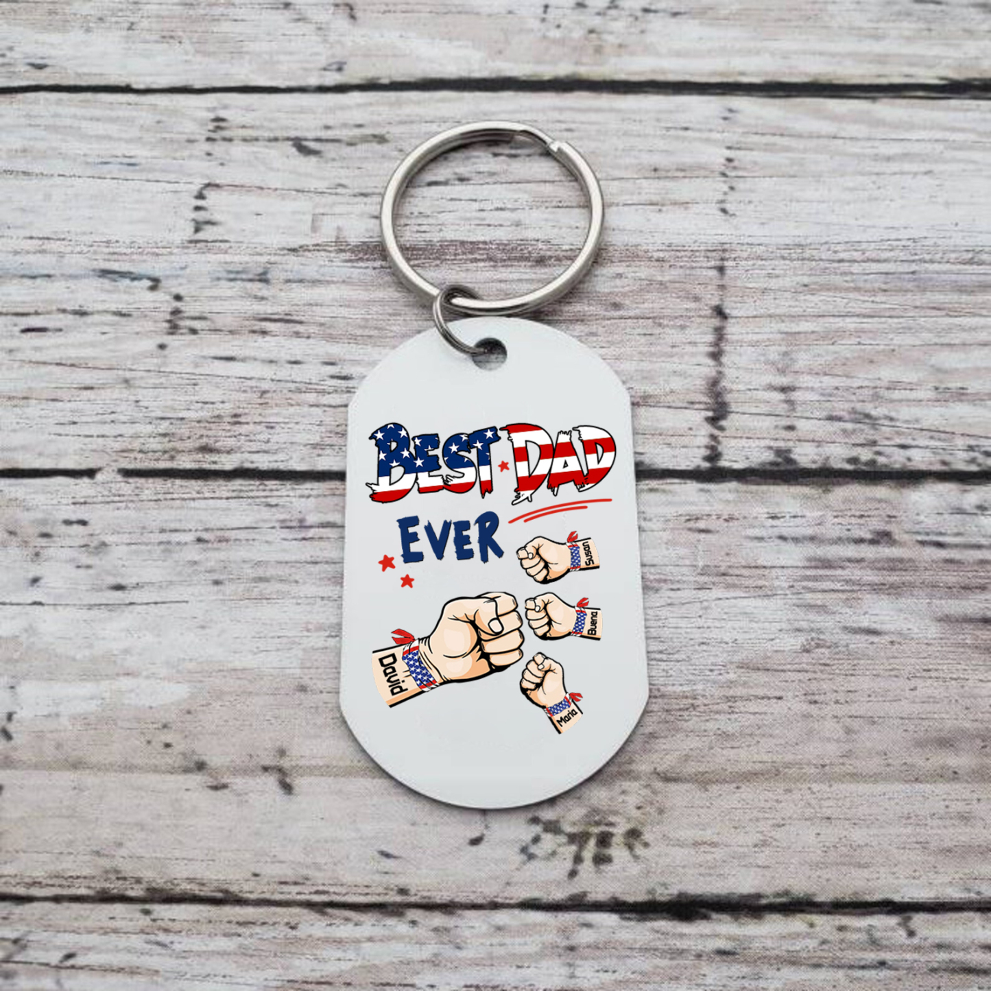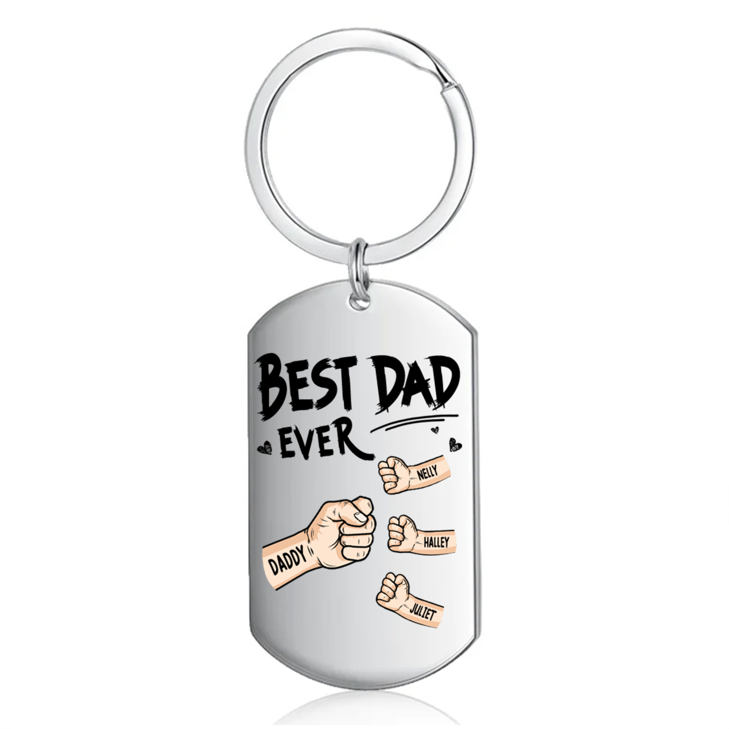 4 Names - Personalized Custom Fist Keychain Gift "Best Dad Ever" Special Keychain Gift for Dad