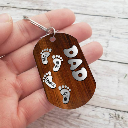 4 Names - Personalized Custom Footprint Pattern Keychain Custom Name and Text Gift for Dad