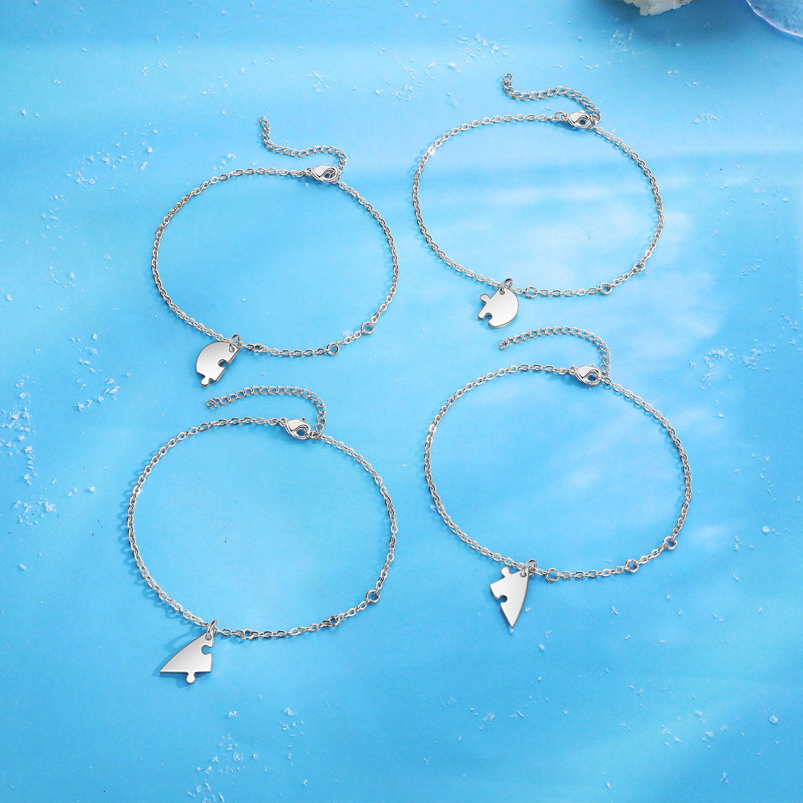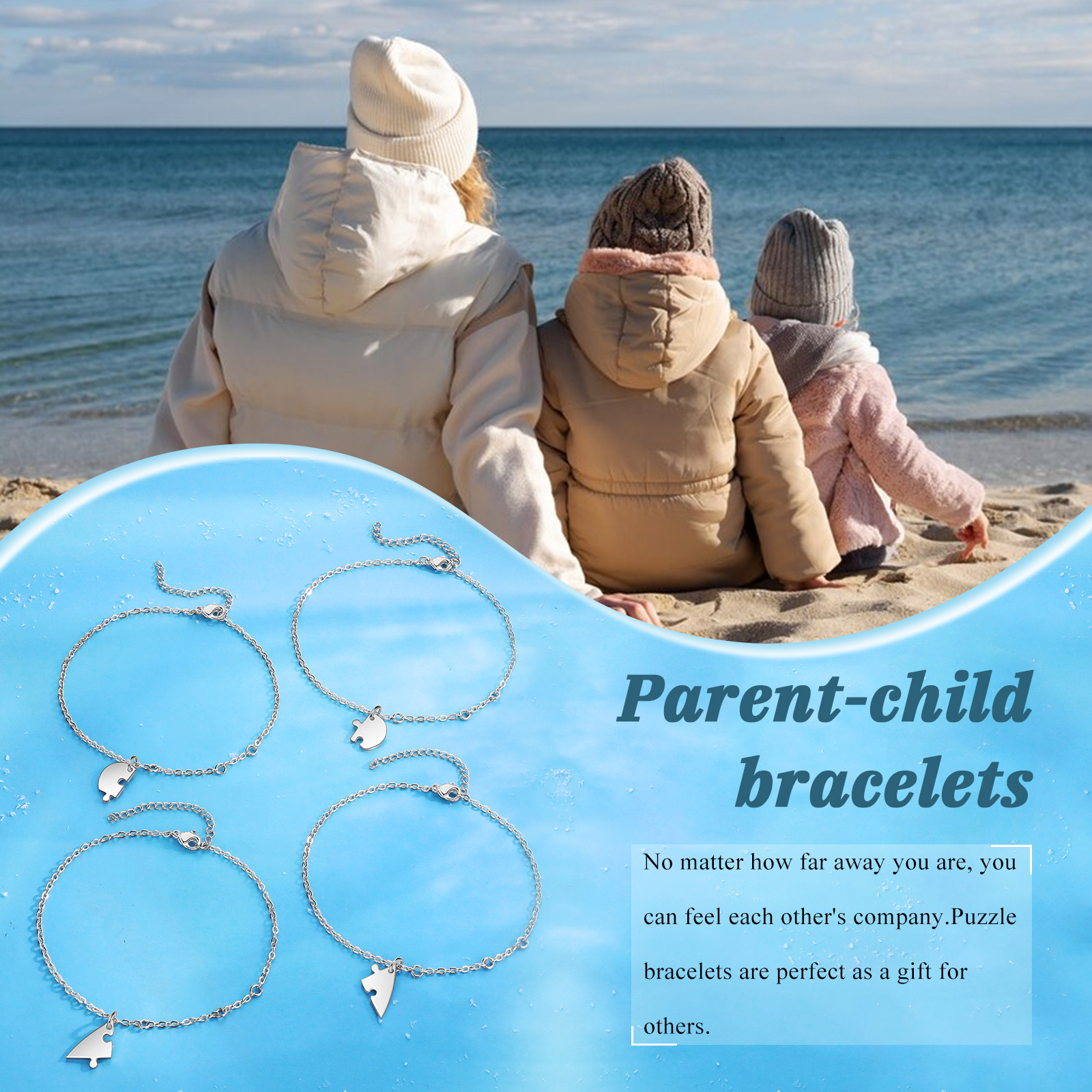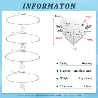 4 Names - Personalized Custom Name Puzzle Bracelet Stainless Steel Love Bracelet Set for Family