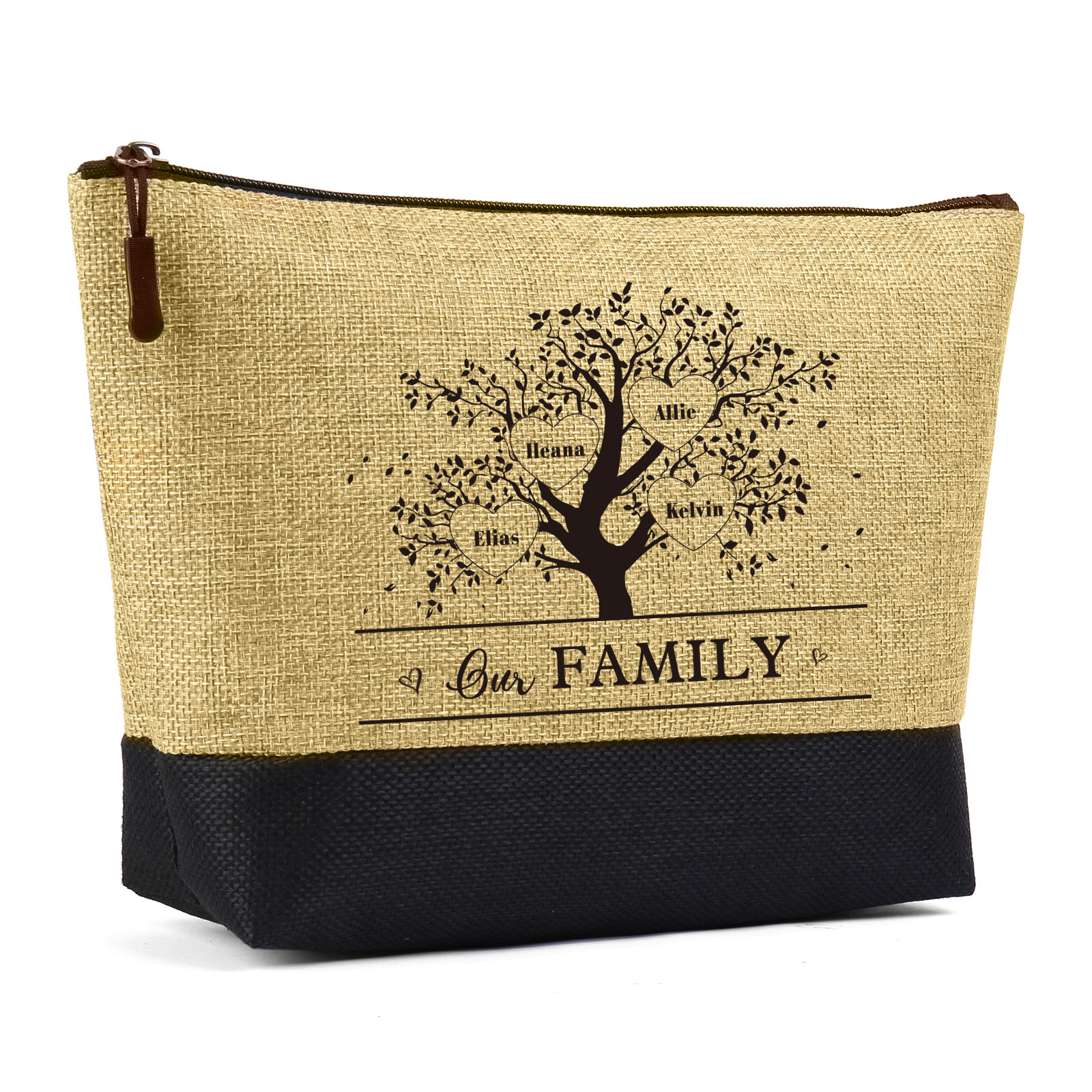 4 Names-Personalized Custom Text Handbag with Customized Name Tree of Life Home Storage Grid Bag As a Mother's Day Gift for Mom