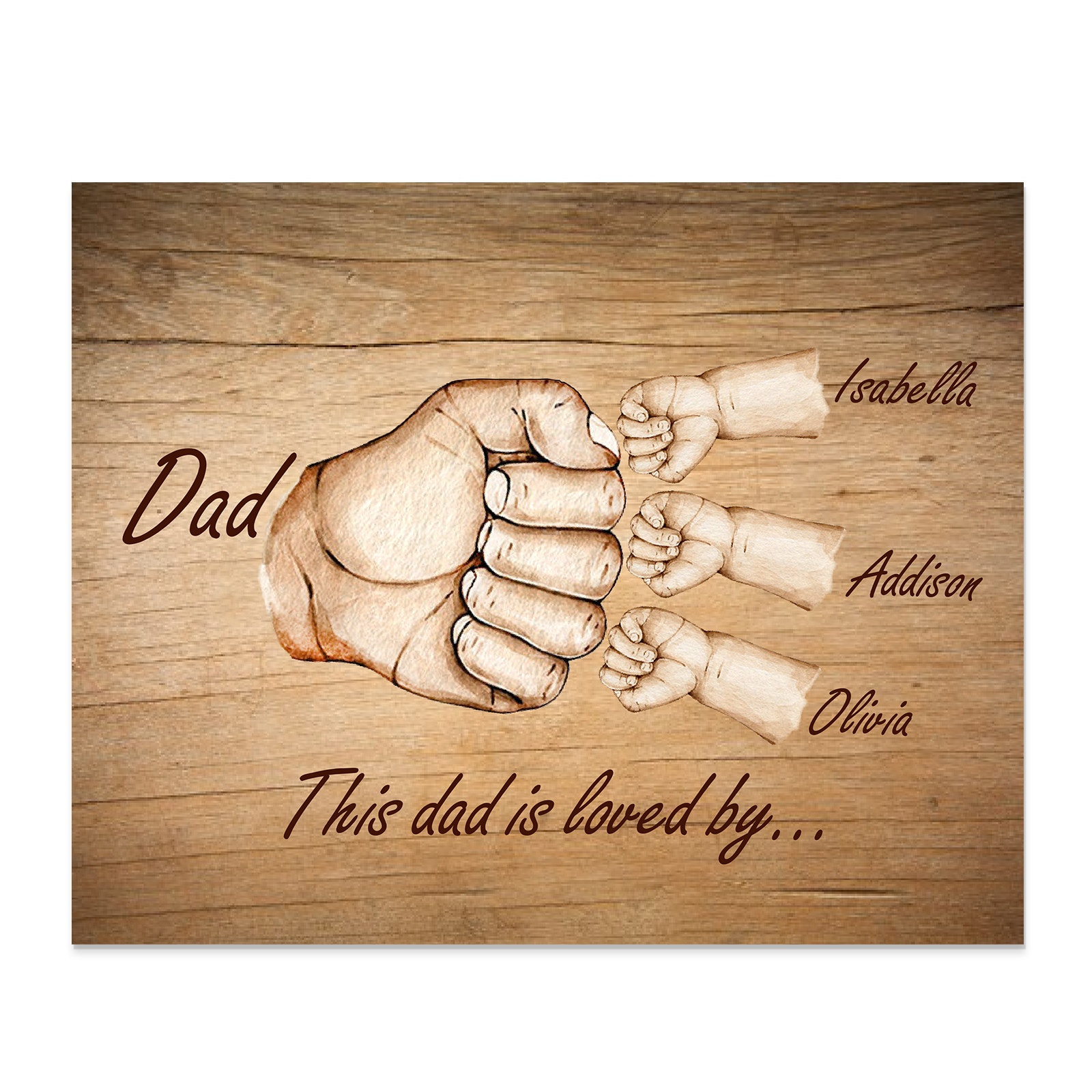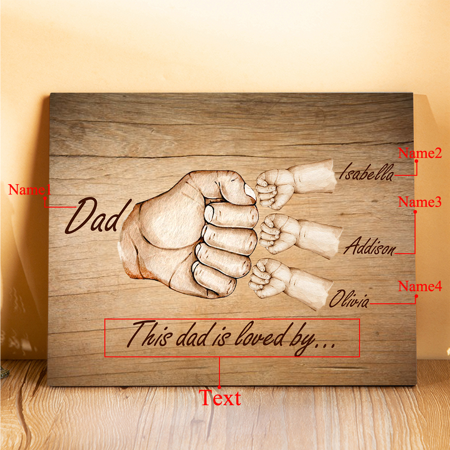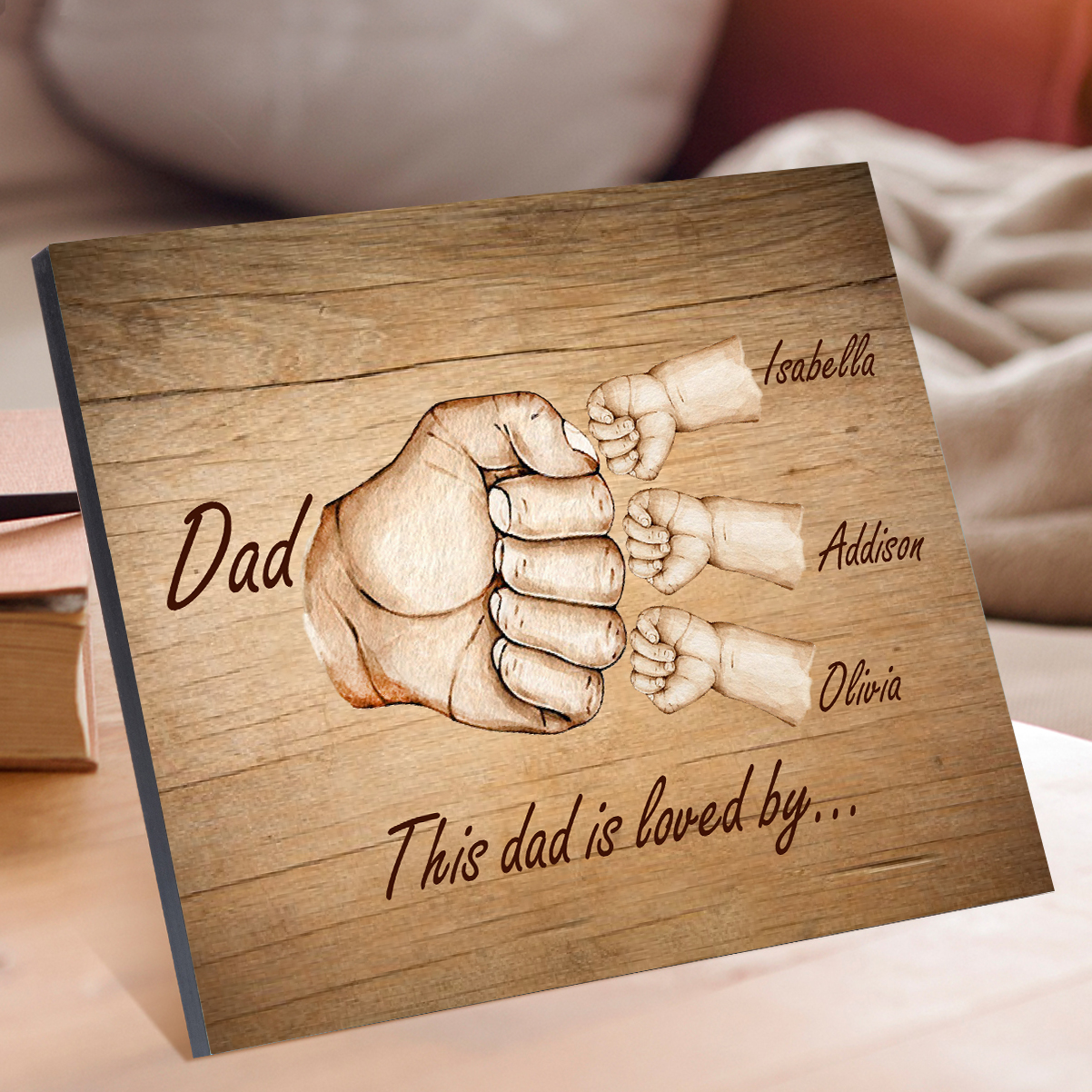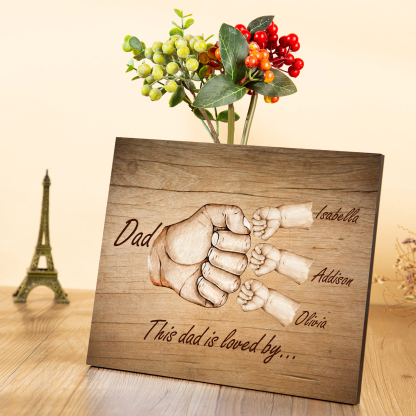 4 Names-Personalized Dad Family Fist Bump Frame Wooden Ornament Custom Text Plaque Home Decoration for Father