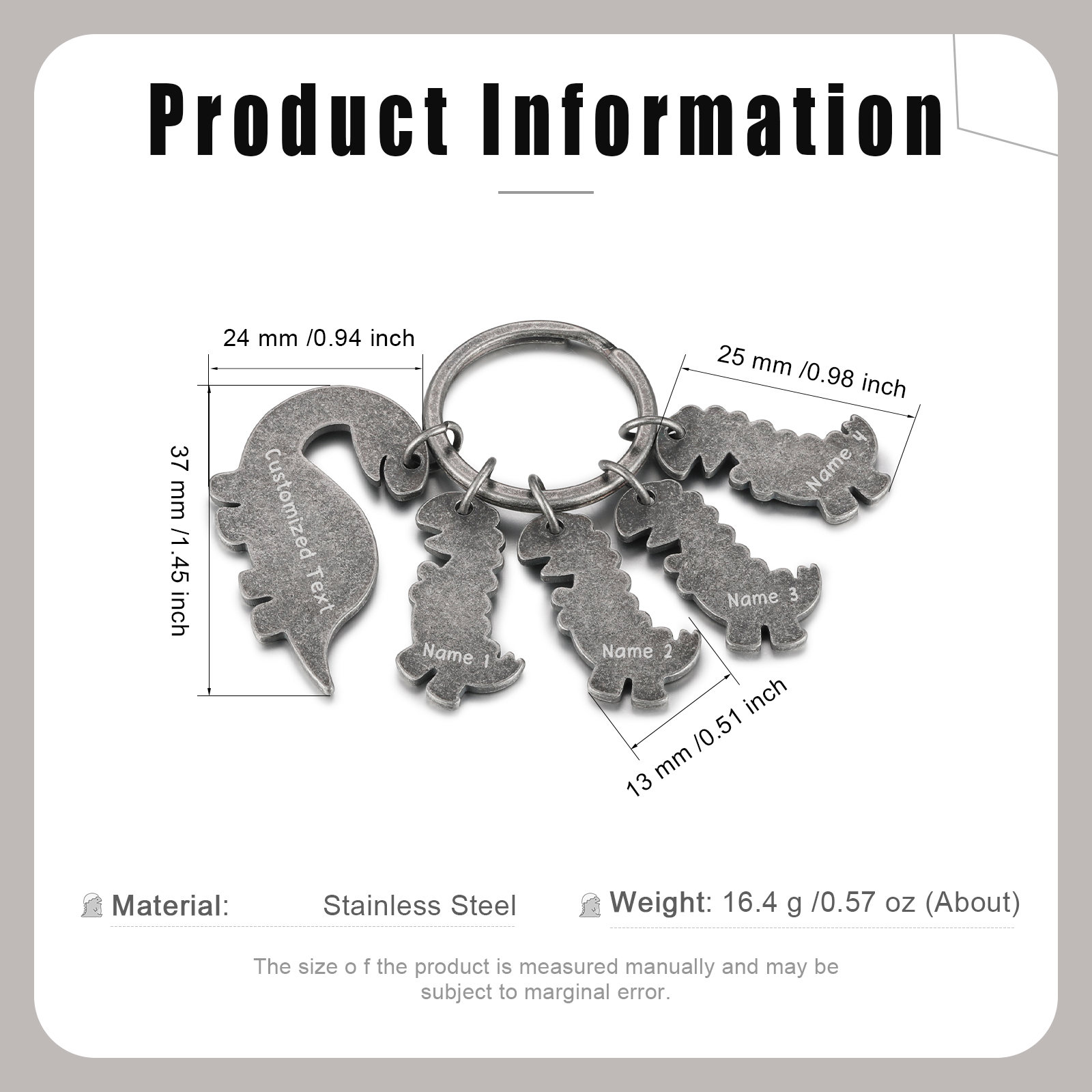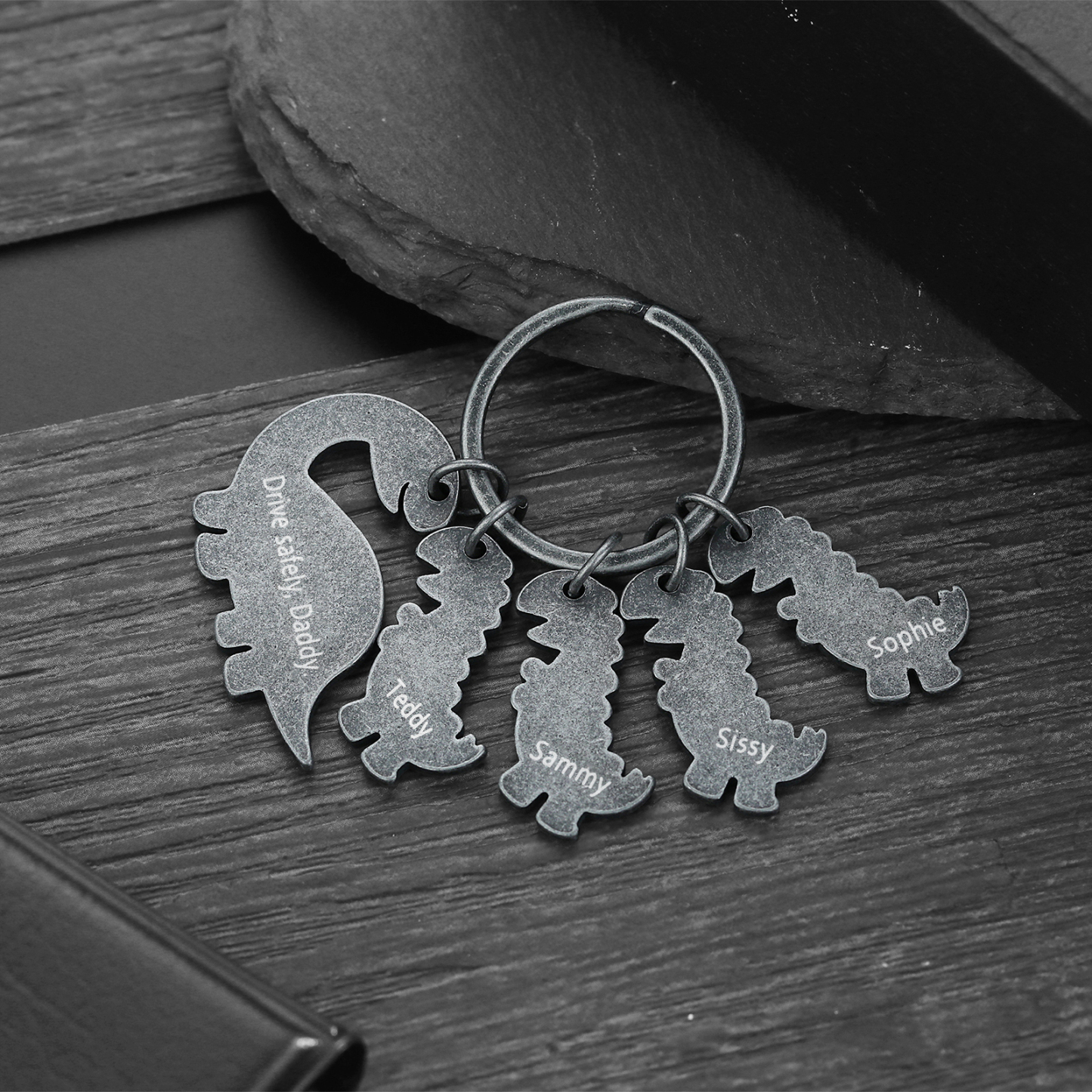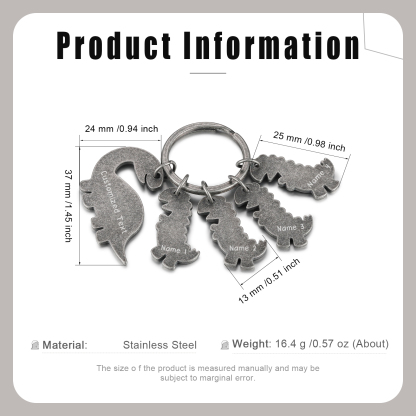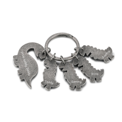 4 Names-Personalized Dinosaur Kids Charms Keychain Gift Set-Custom Names And Text Special Keychain Gift For Grandpa/Father