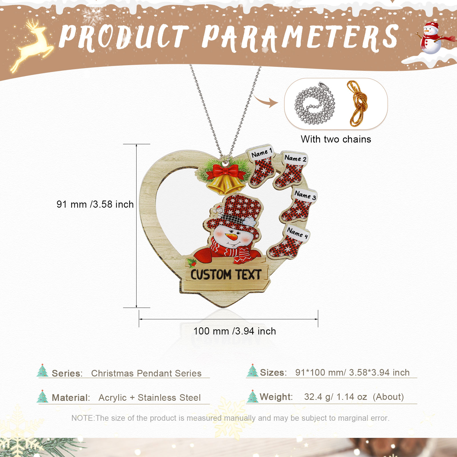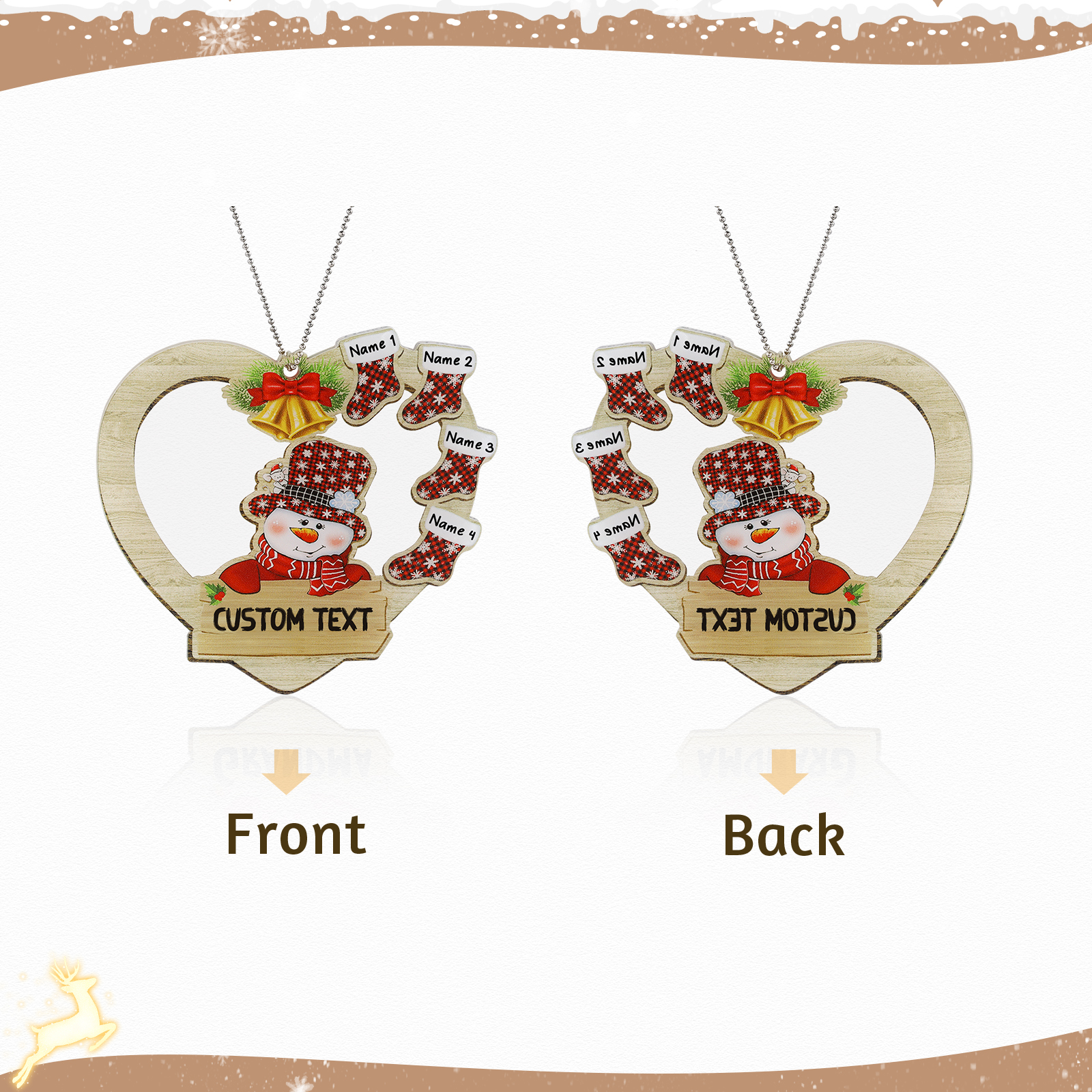 🎁Made of acrylic material, 2-8 names can be customized, The names of each family member are written on the Christmas Shocks, and the personalized text can be written under the snow man. This is a great Christmas gift for the family.
