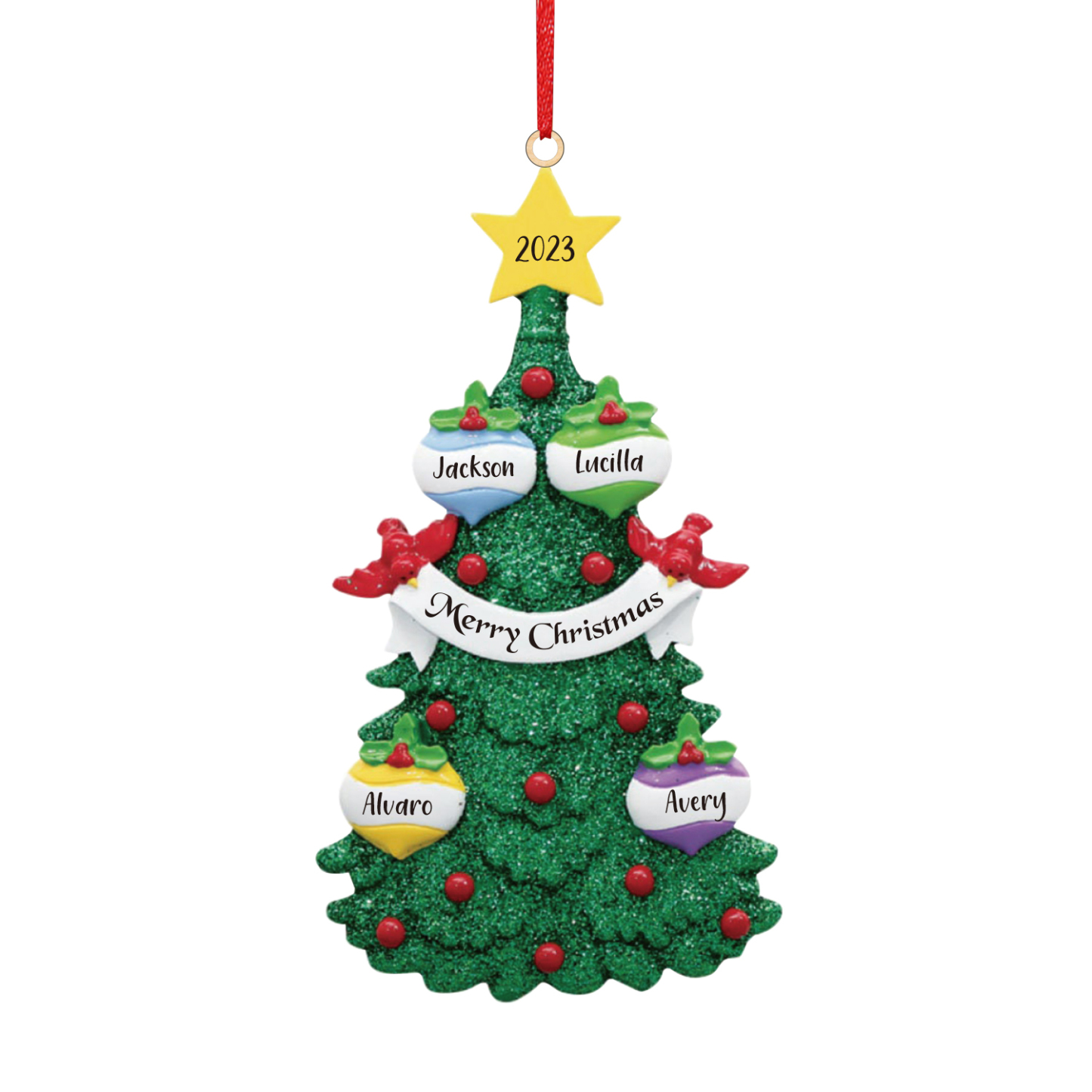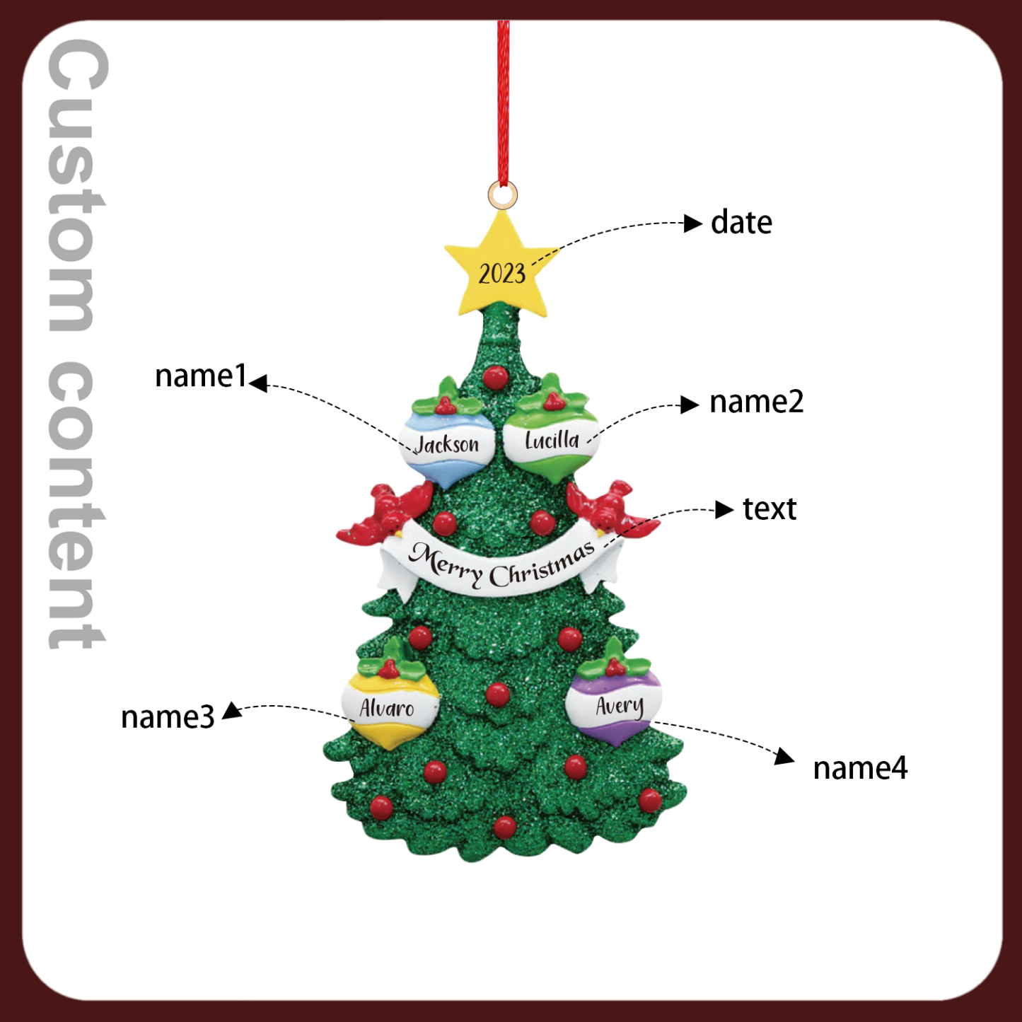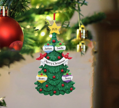 4 Names-Personalized Family Wooden Christmas Xmas Tree Decoration Ornament-Custom 4 Names And Text Hanging Ornament Gifts For Family