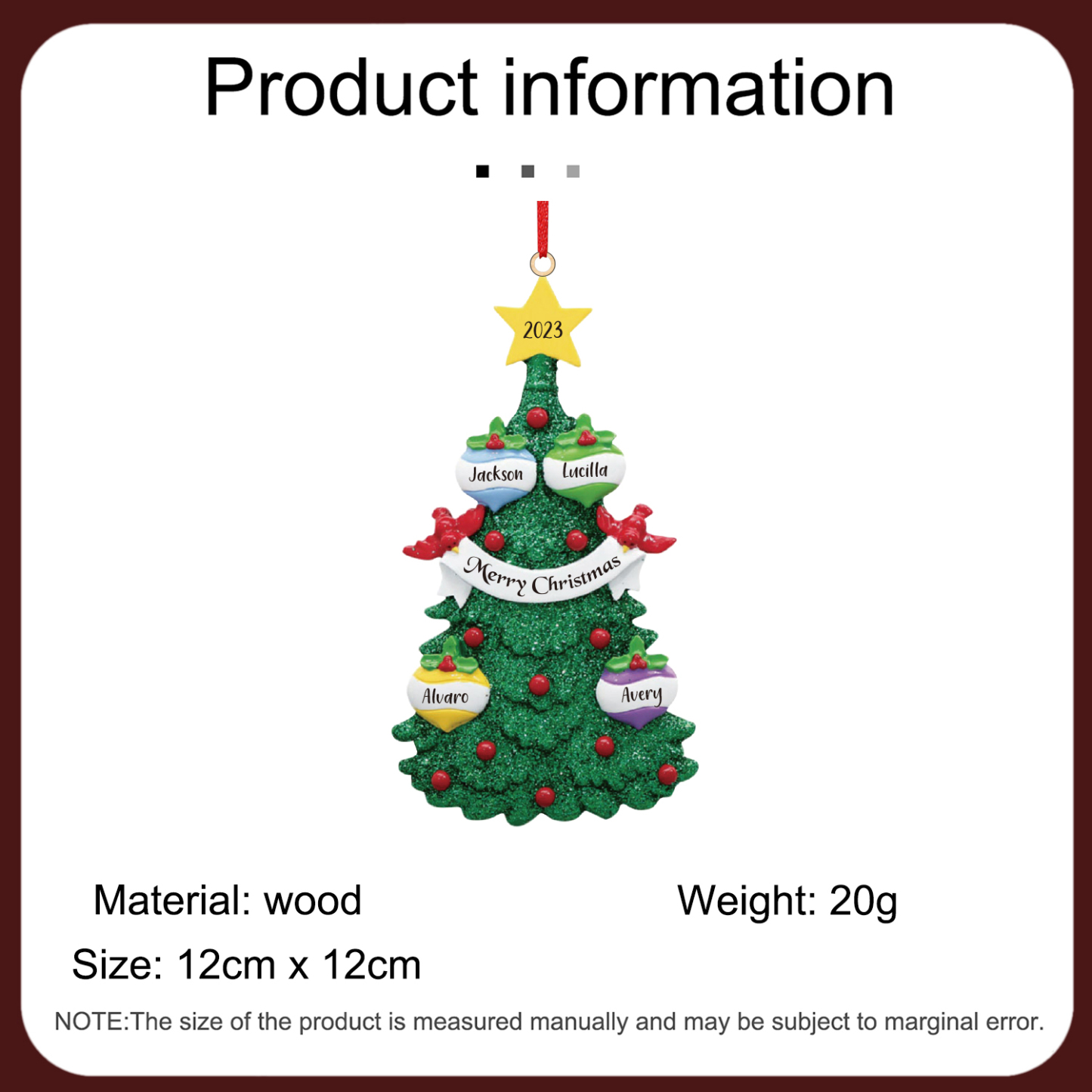 🎁Made of wooden material, 3-8 names can be customized, The names of each family member are written on the tree, the date is wirtten on the top star and the personalized text can be written on the middle of the Christmas Tree. This is a great Christmas gift for the family.