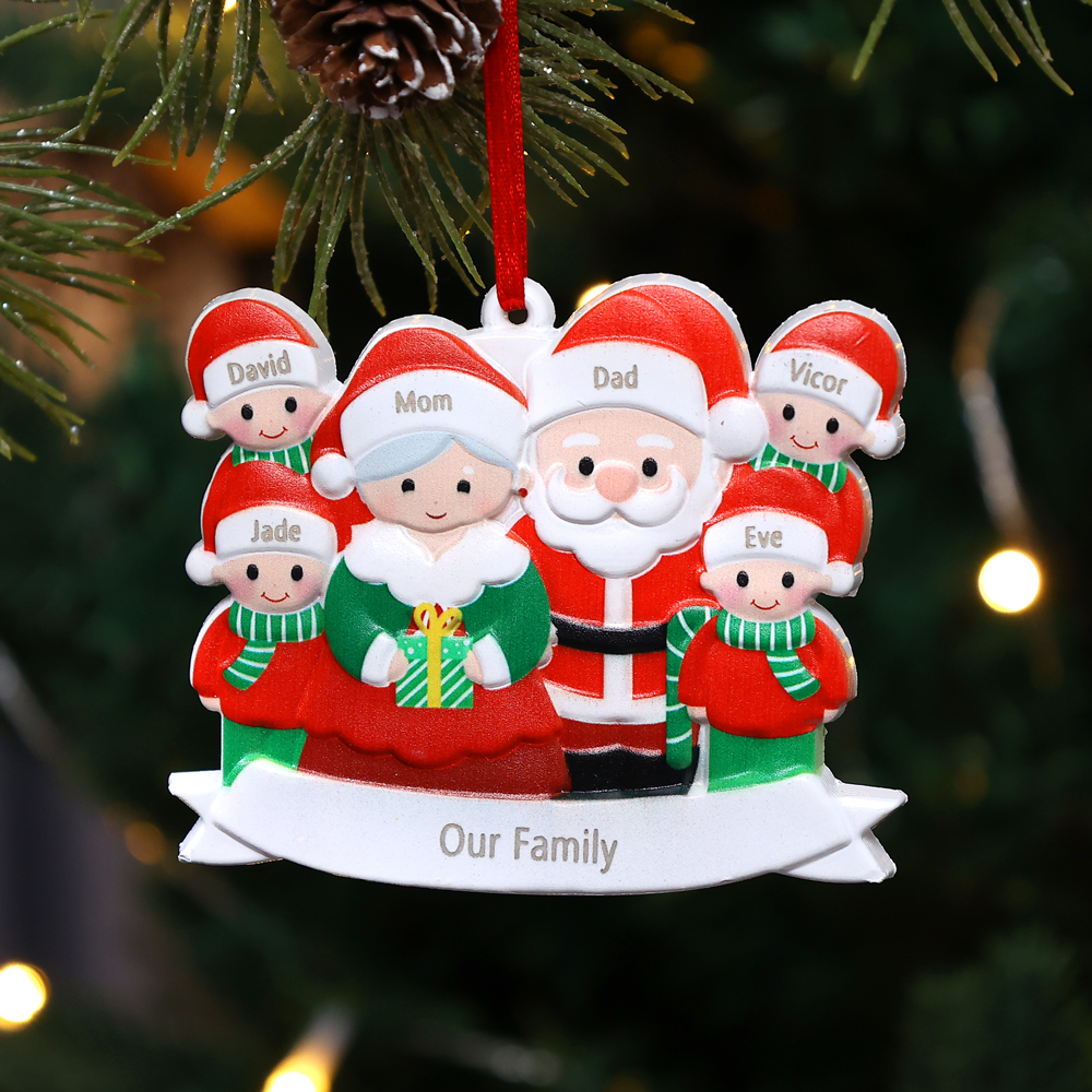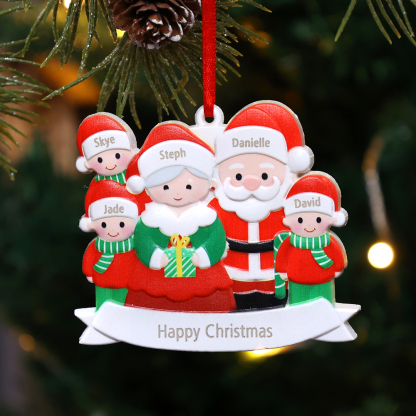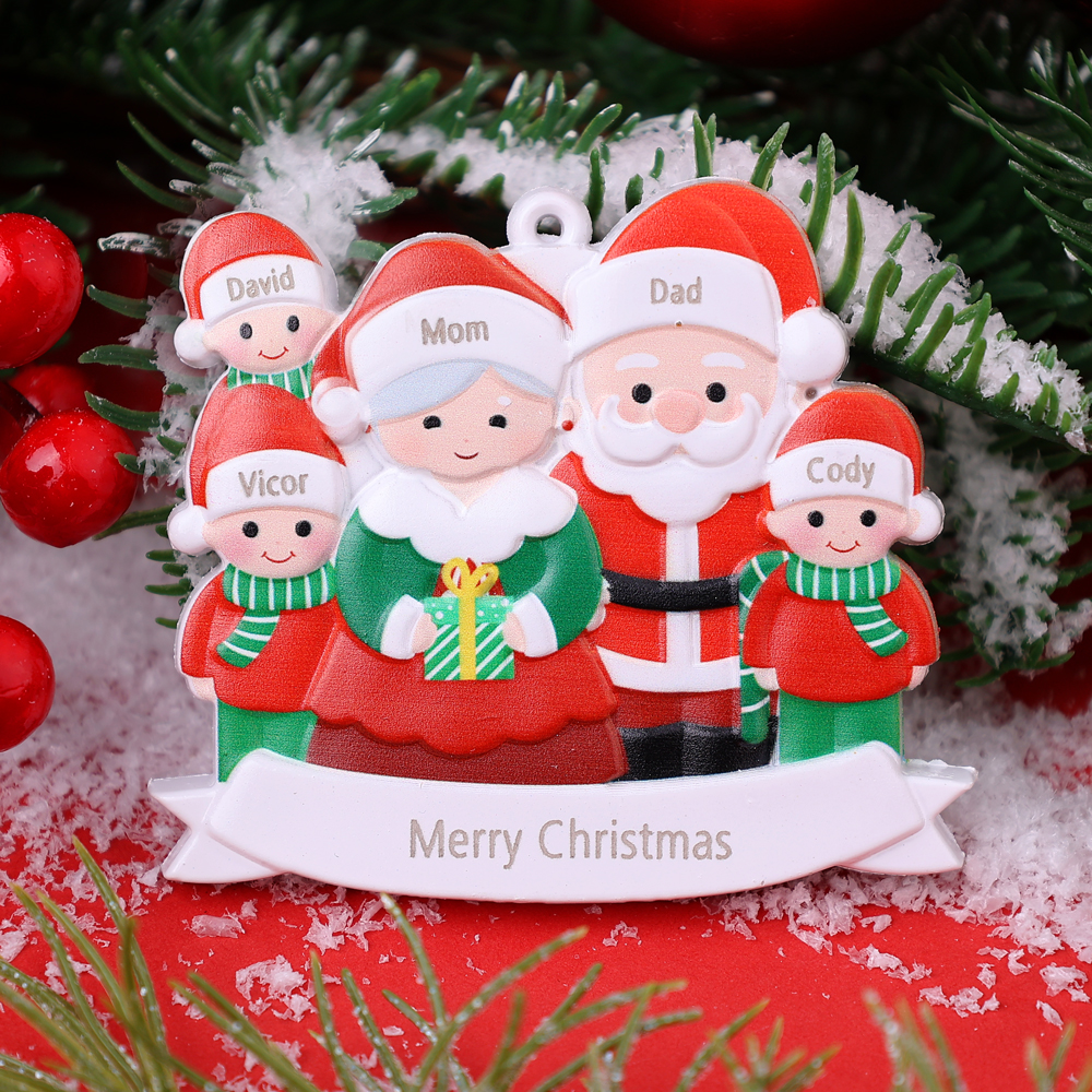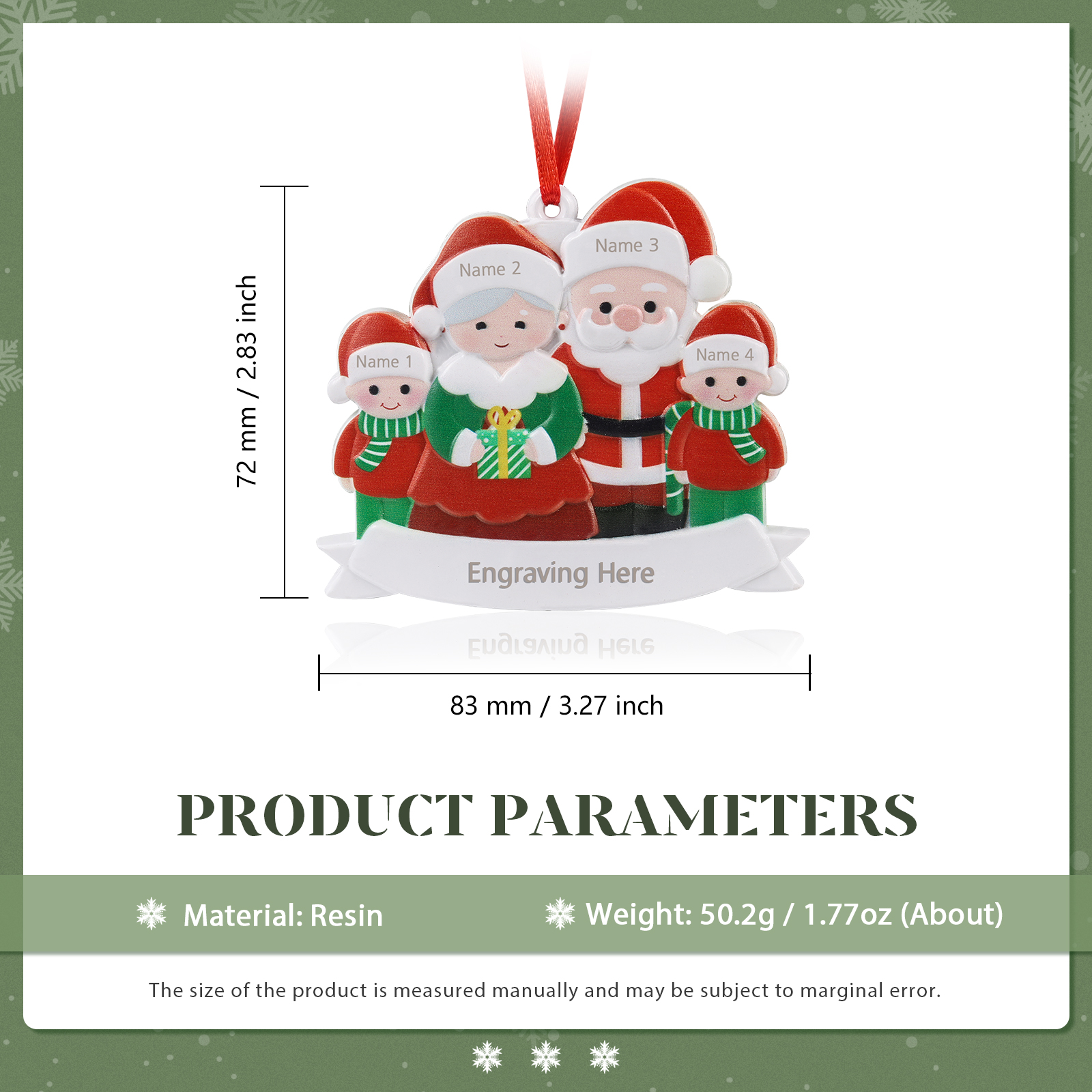 4 Names-Personalized Family Christmas Santa Claus Resin Ornament-Custom 4 Names Hanging Christmas Ornament Gifts For Family