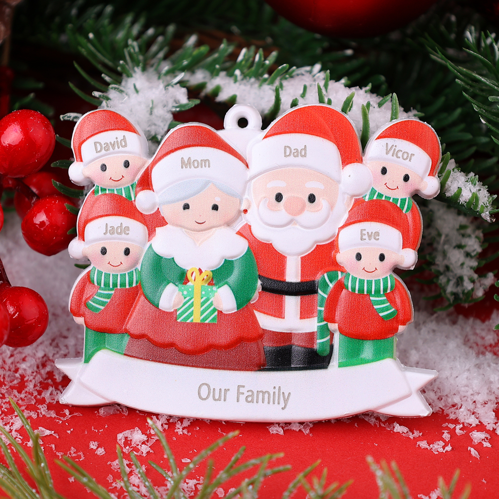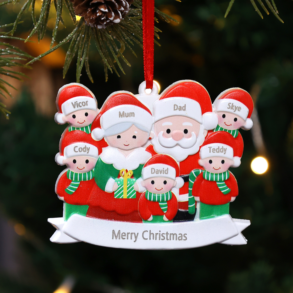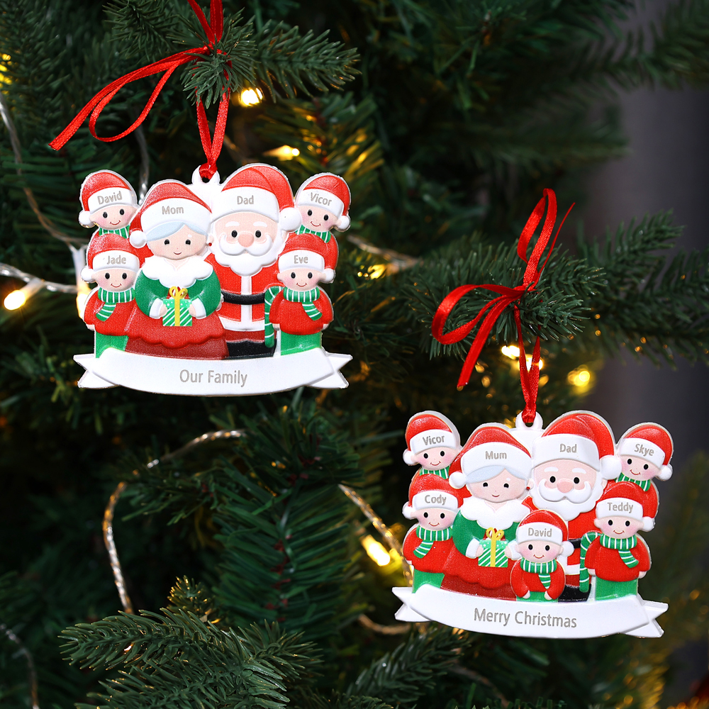 4 Names-Personalized Family Christmas Santa Claus Resin Ornament-Custom 4 Names Hanging Christmas Ornament Gifts For Family