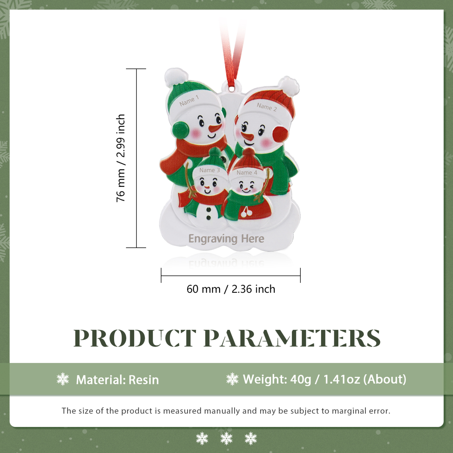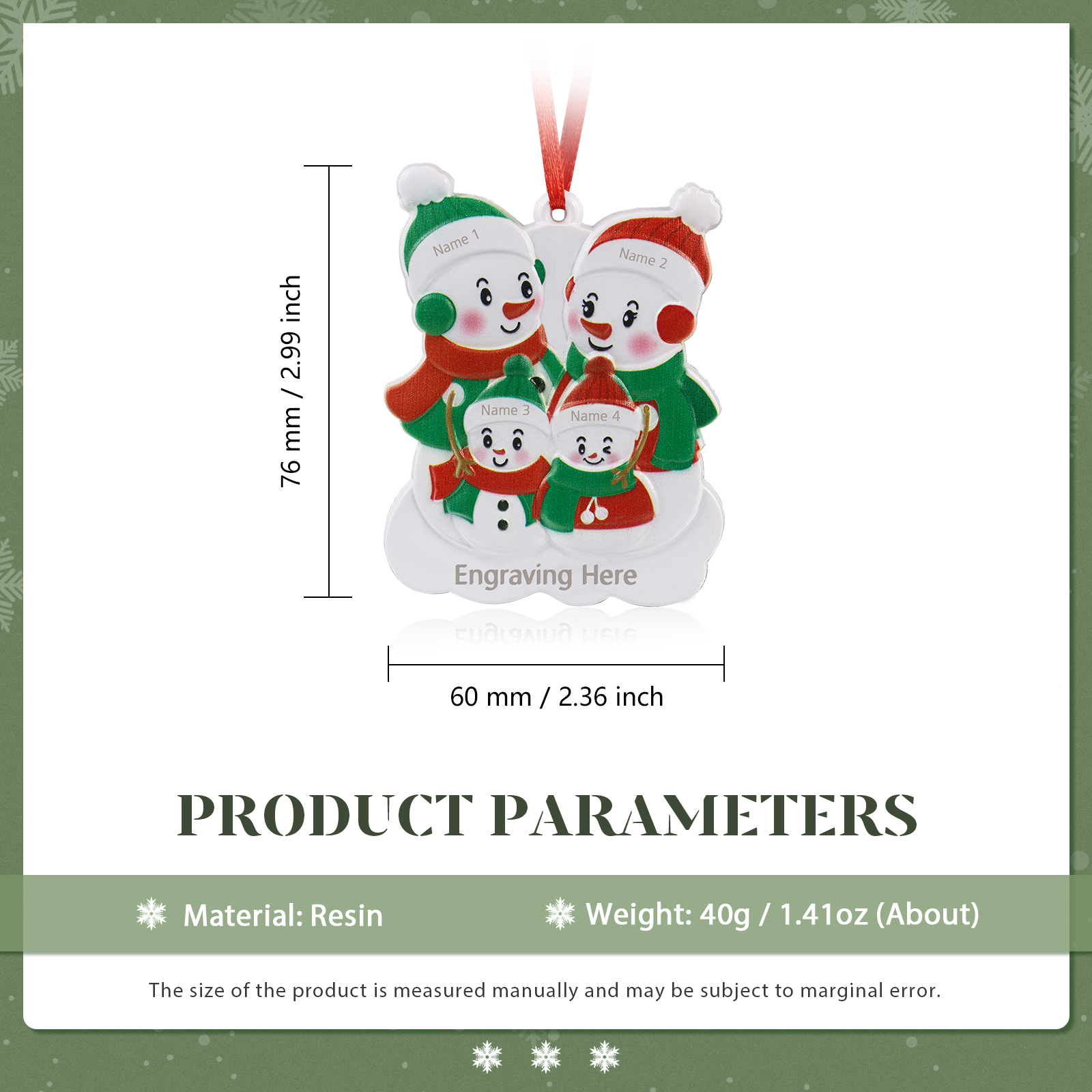 4 Names-Personalized Family Christmas Snowman Resin Ornament-Custom 4 Names Hanging Christmas Ornament Gifts For Family