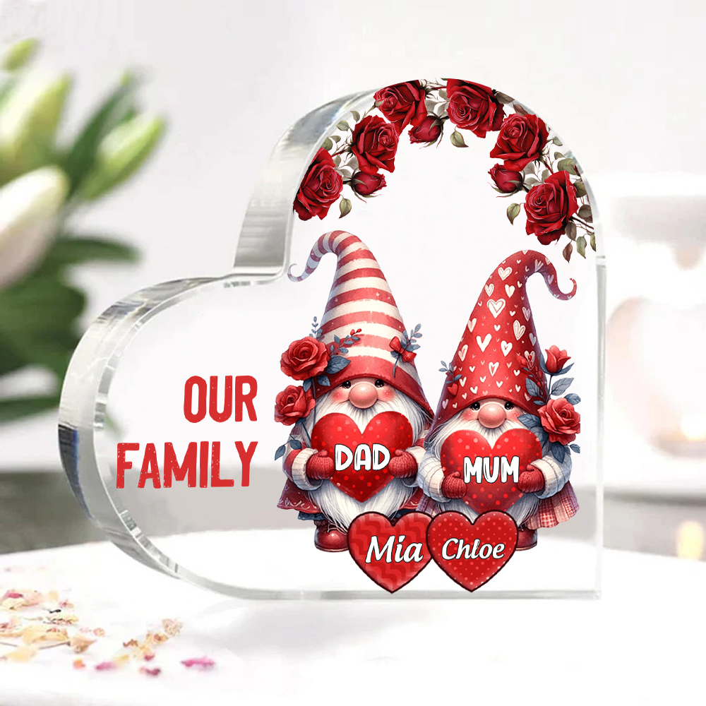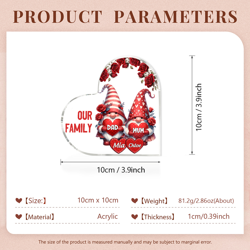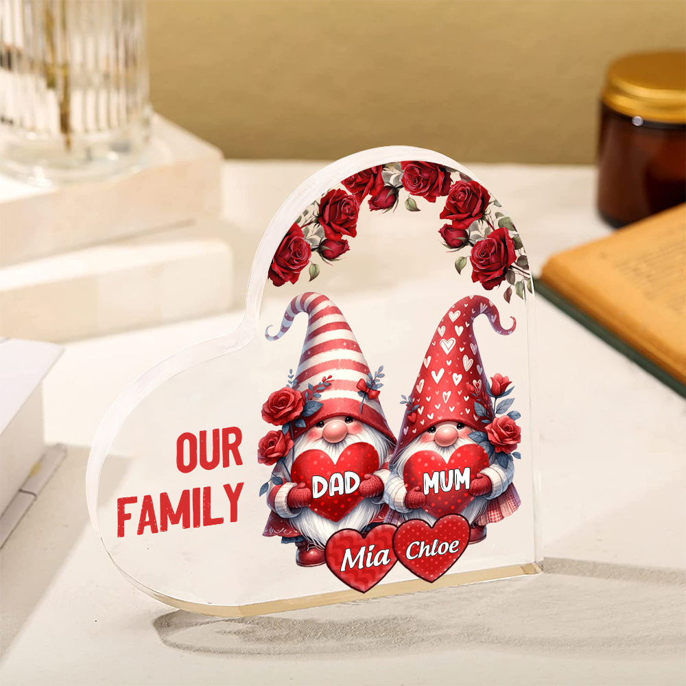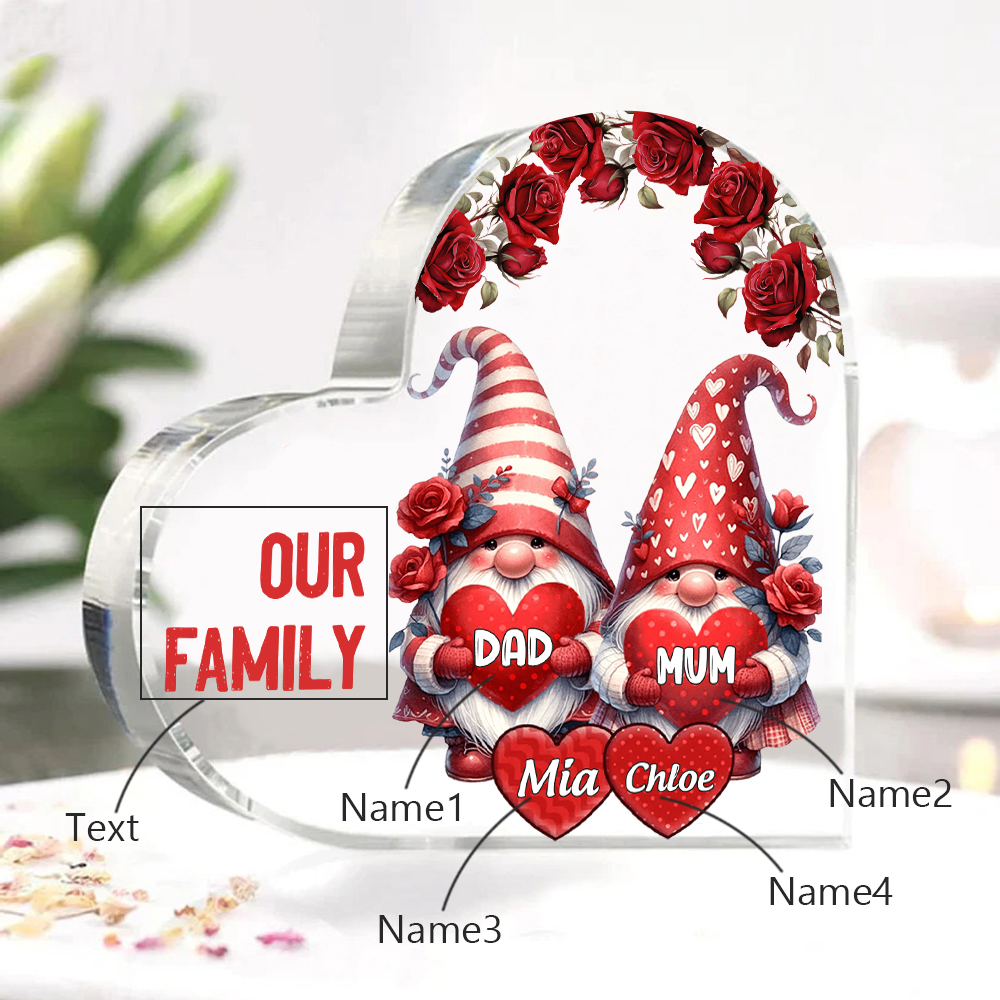 4 Names-Personalized Family Dwarf Acrylic Ornament-Custom Text Acrylic Family Heart Keepsake Desktop Ornament For Family
