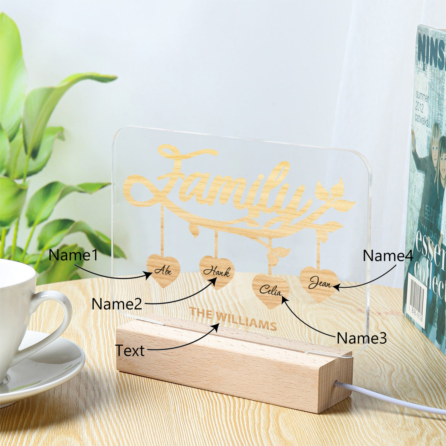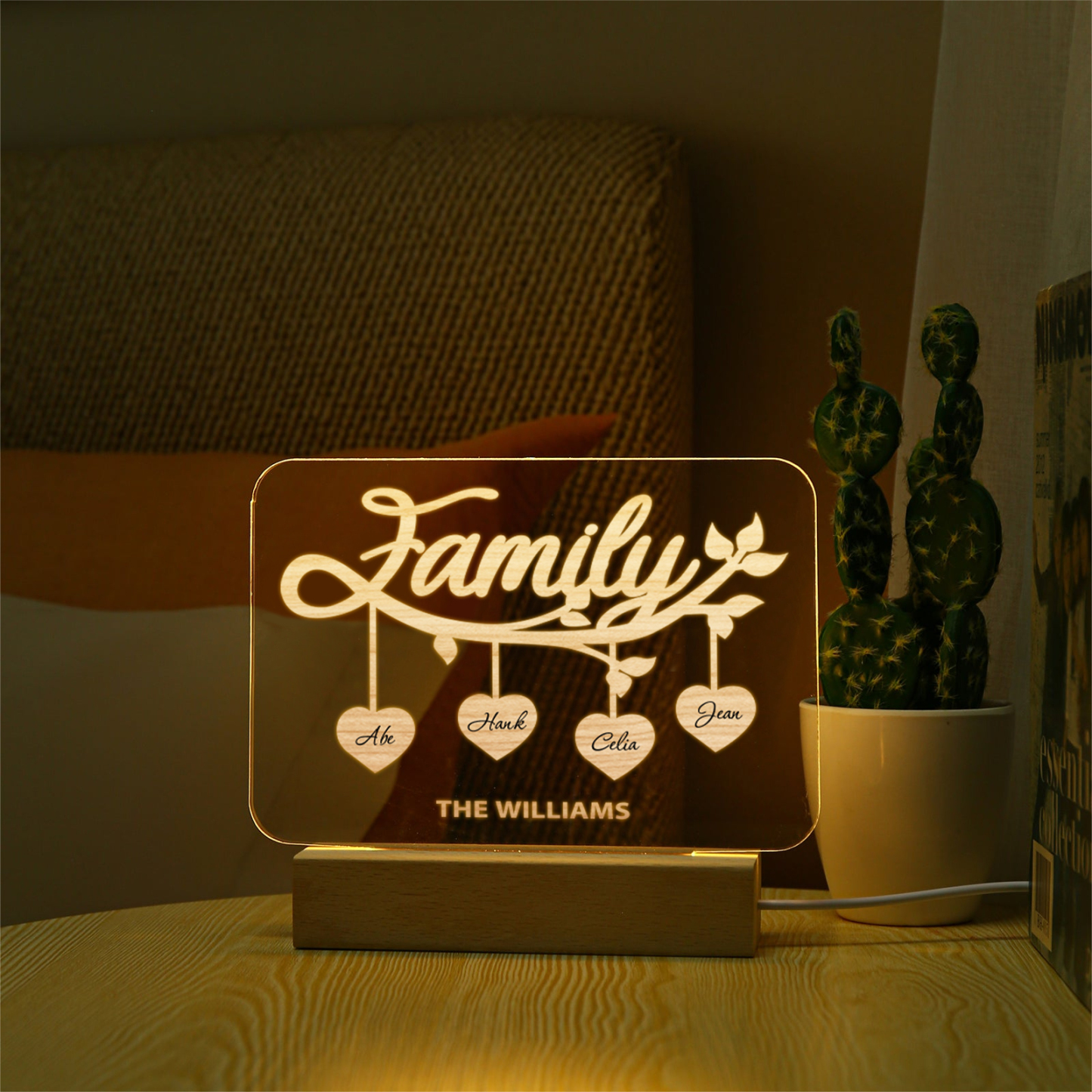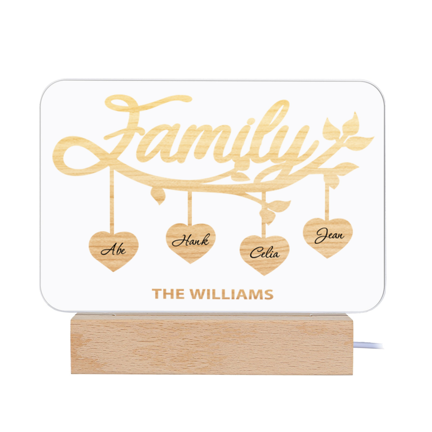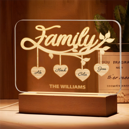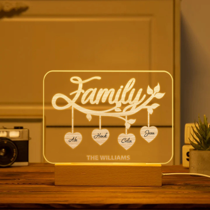 4 Names-Personalized Family Night Light Custom Text LED Lamp Mother's Day Gift For Family