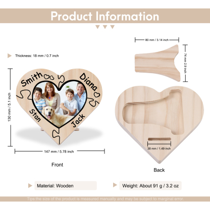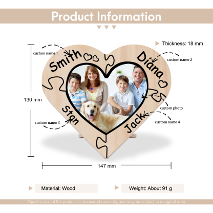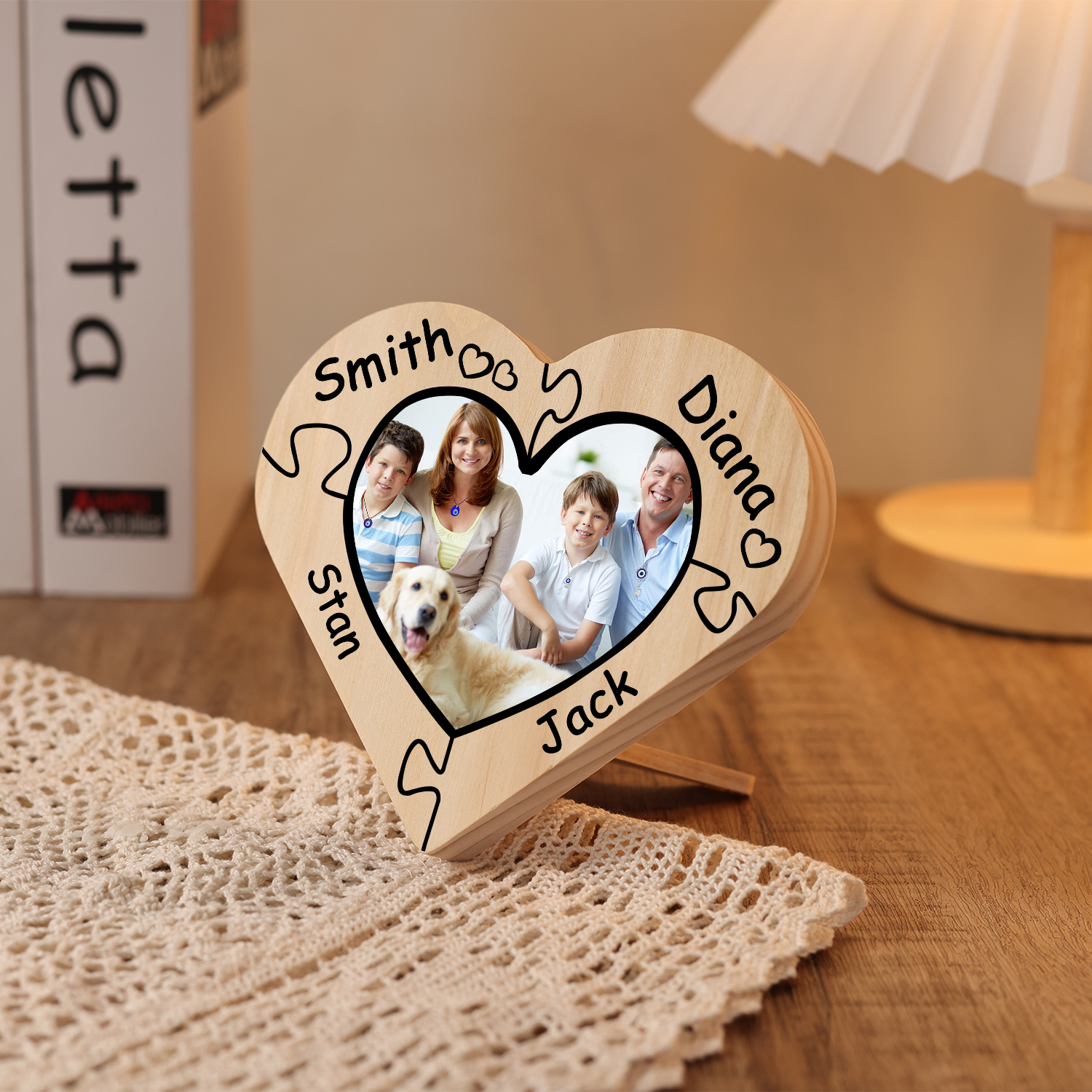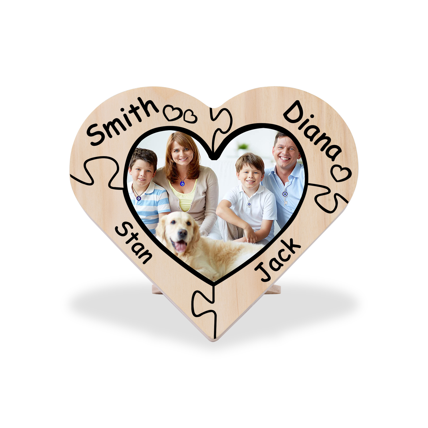 4 Names-Personalized Family Heart Wooden Ornament Gift-Customized Gift Ornament Desktop Decoration Picture Frame For Family