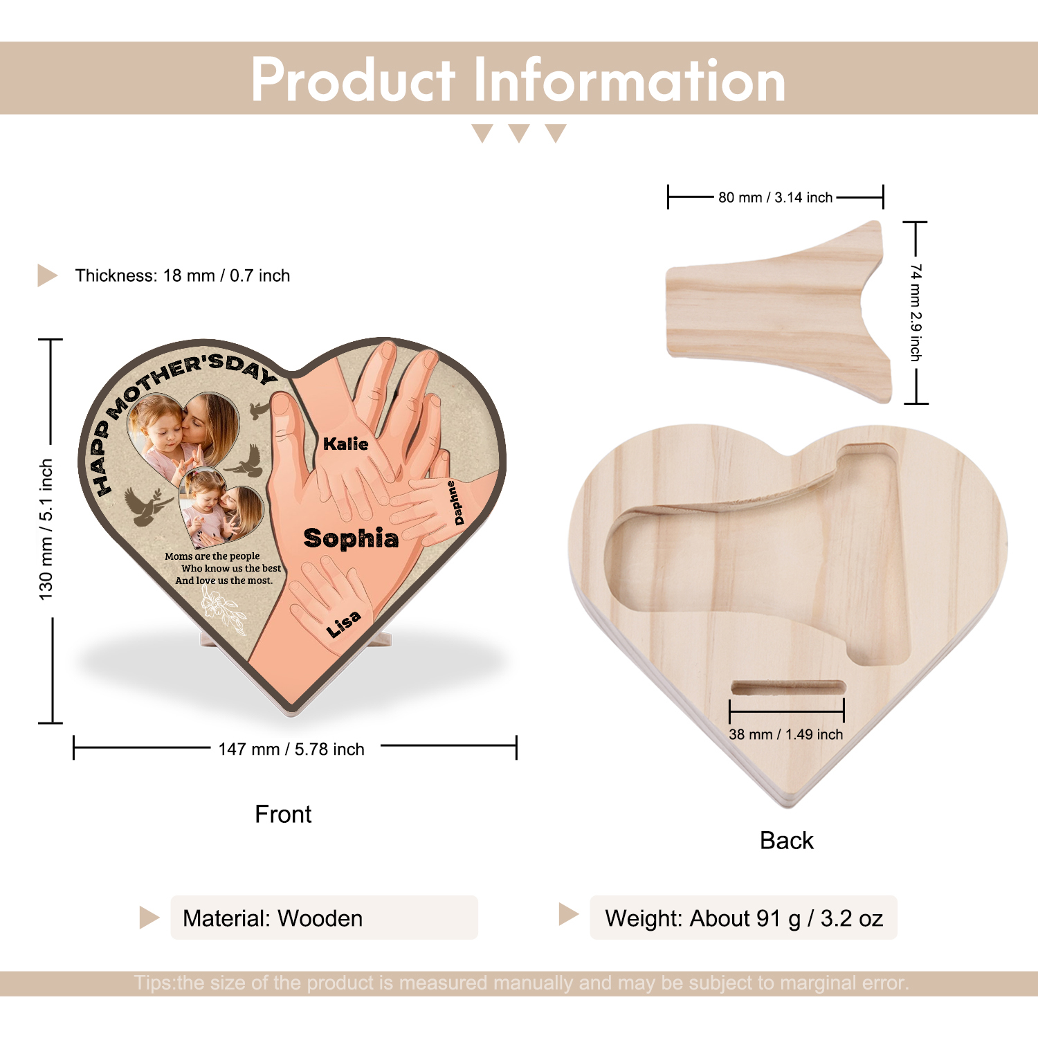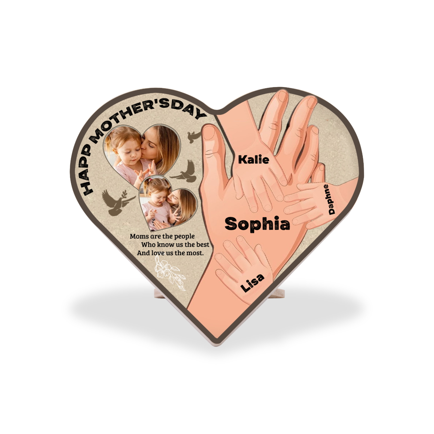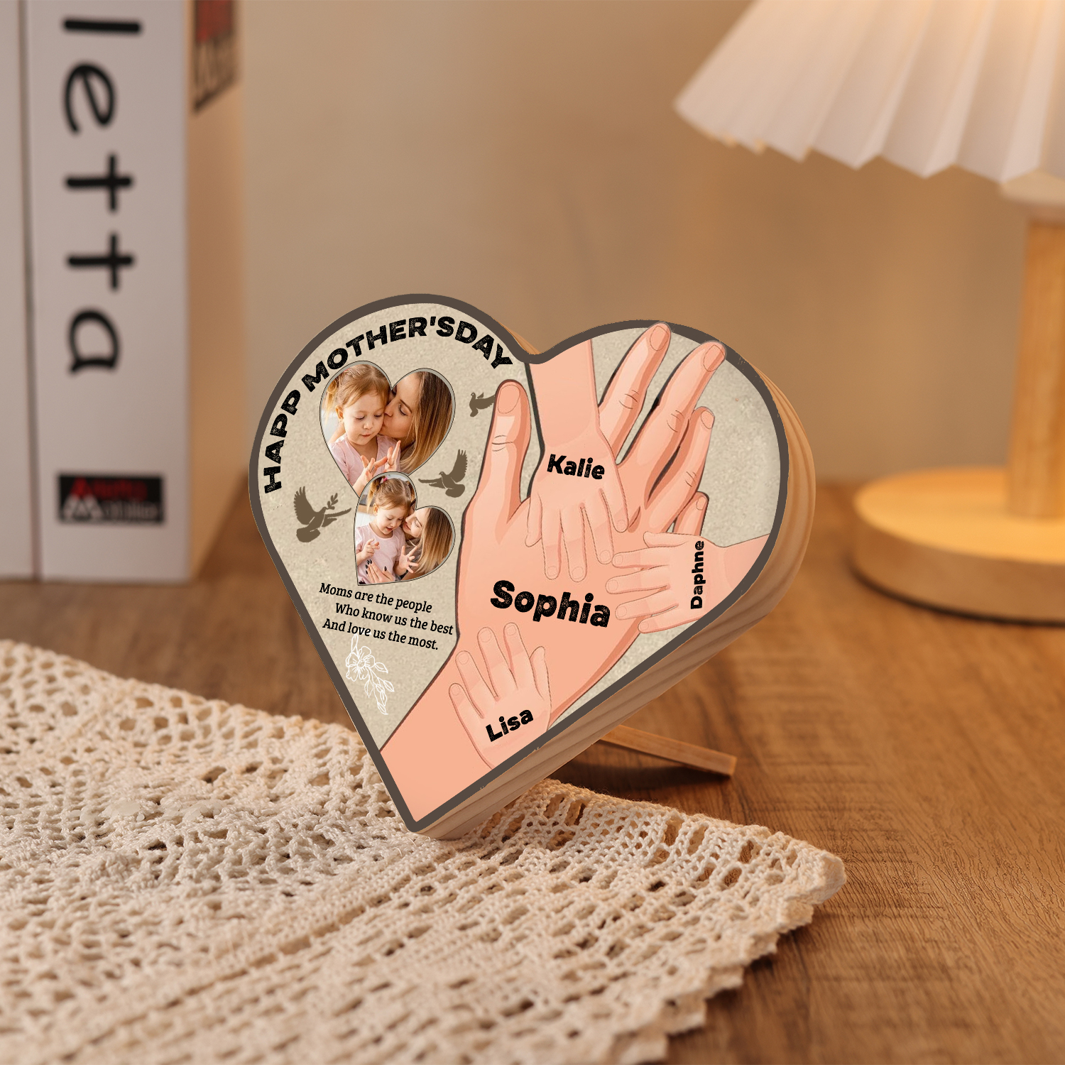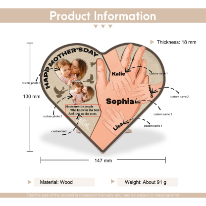 4 Names-Personalized Family Heart Wooden Ornament Gift-Customized Gift Ornament Desktop Decoration Picture Frame For Mother