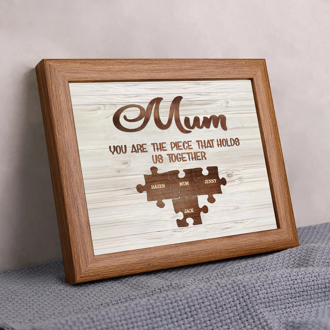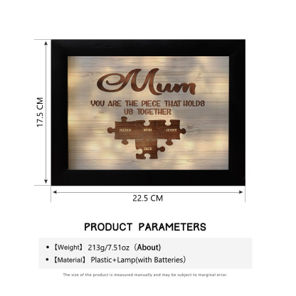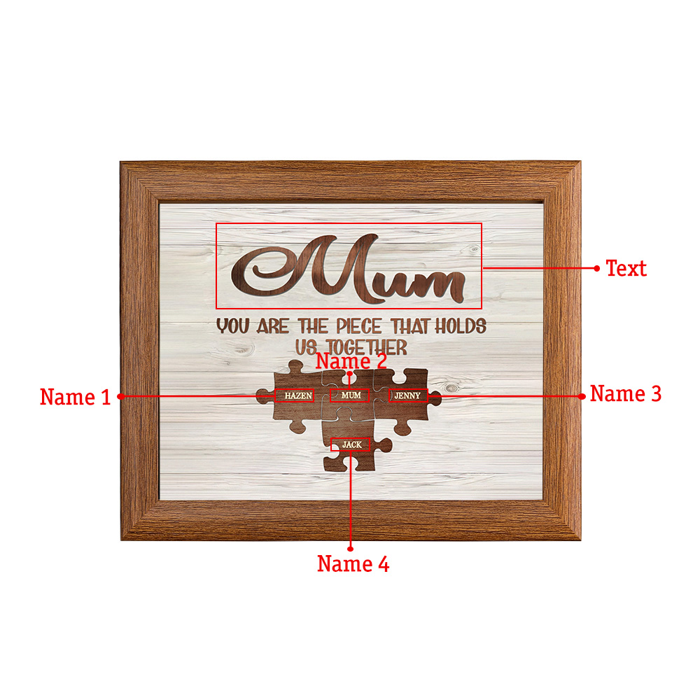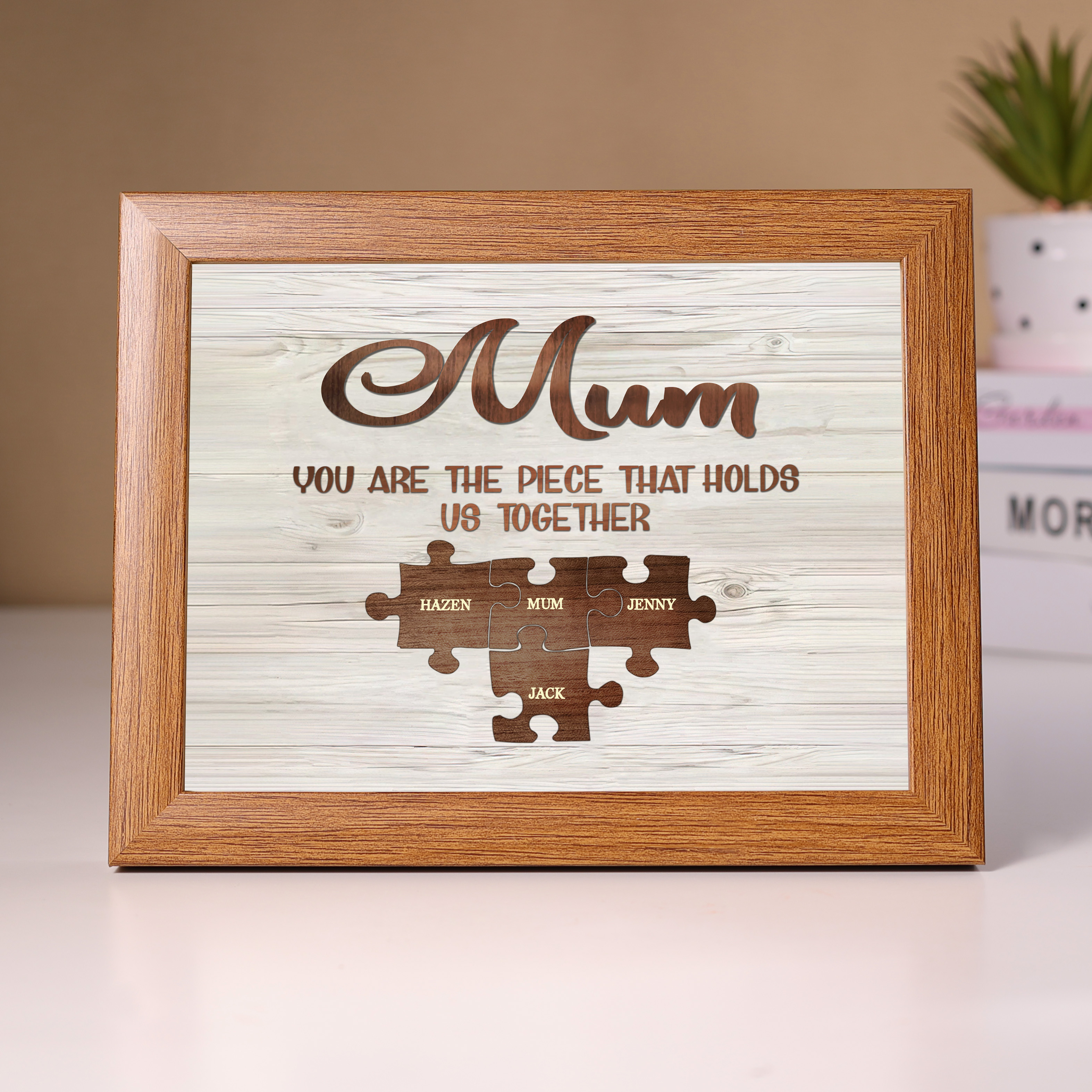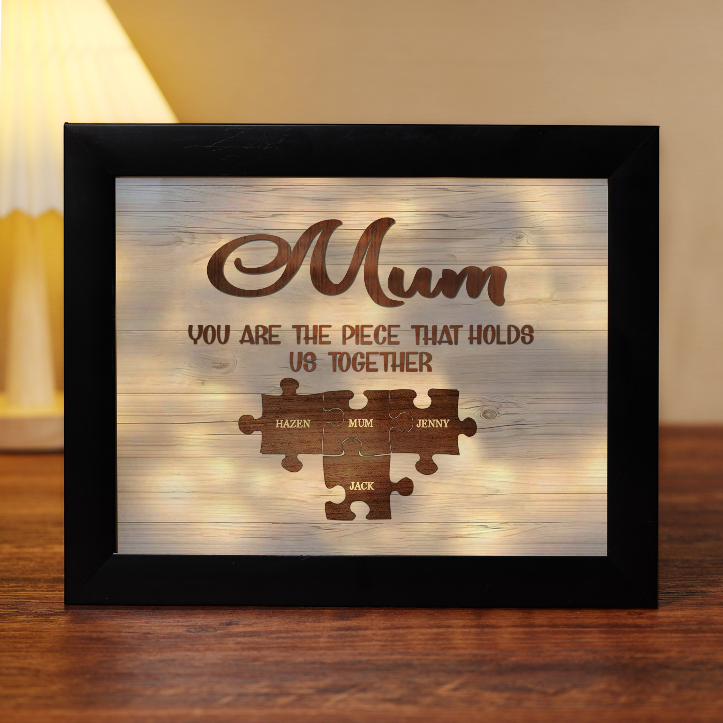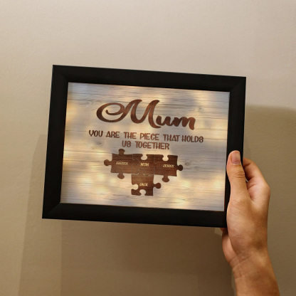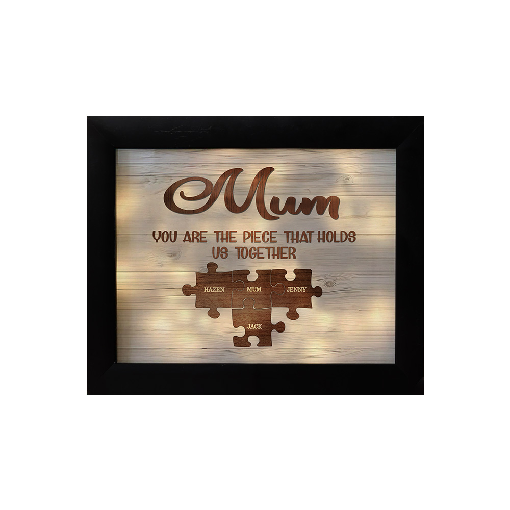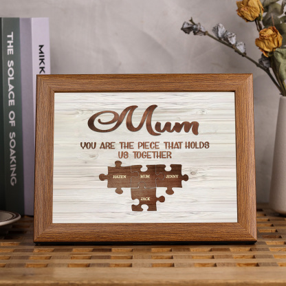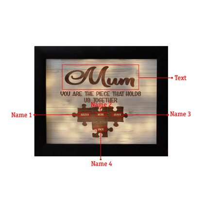 4 Names-Personalized Family Puzzle Frame You Are The Piece That Holds Us Together Custom 4 Names And Text LED Night Light