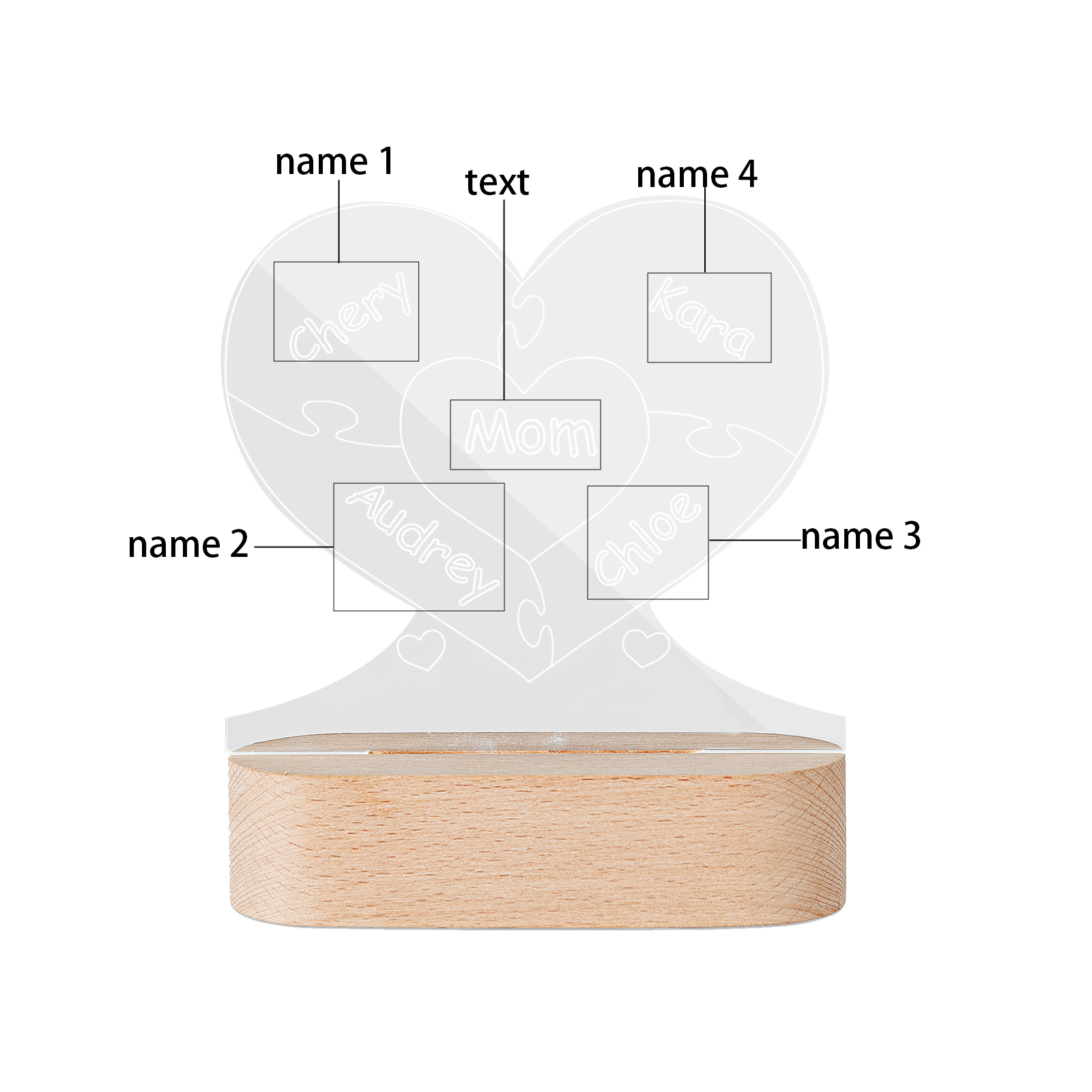 4-Names Personalized Family Tree Round Night Light Custom Text LED Lamp Mother's Day Gift For Family Gifts for Dad on Father's Day
