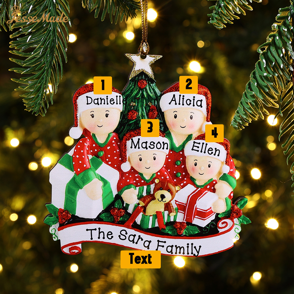 4 Names-Personalized Family Wooden Christmas Ornament-Custom 4 Names Hanging Ornament Gifts For Family