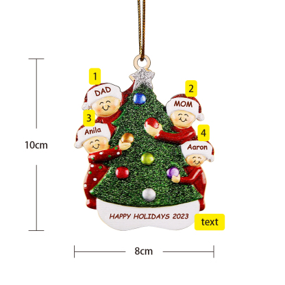 4 Names-Personalized Family Wooden Christmas Xmas Tree Decoration Ornament-Custom 4 Names And Text Hanging Ornament Gifts For Family