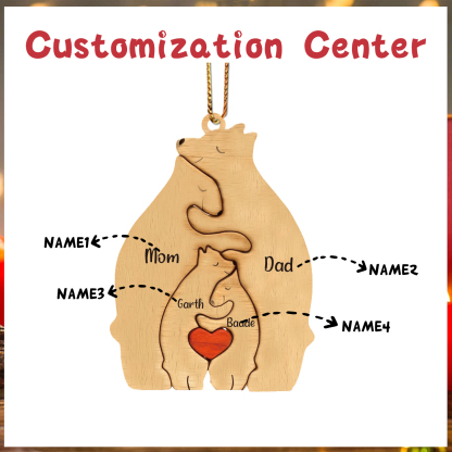4 Names-Personalized family Wooden Puzzle Ornament-Custom 4 Names Bear Hug Ornament Gifts For Family-Special Home Decoration