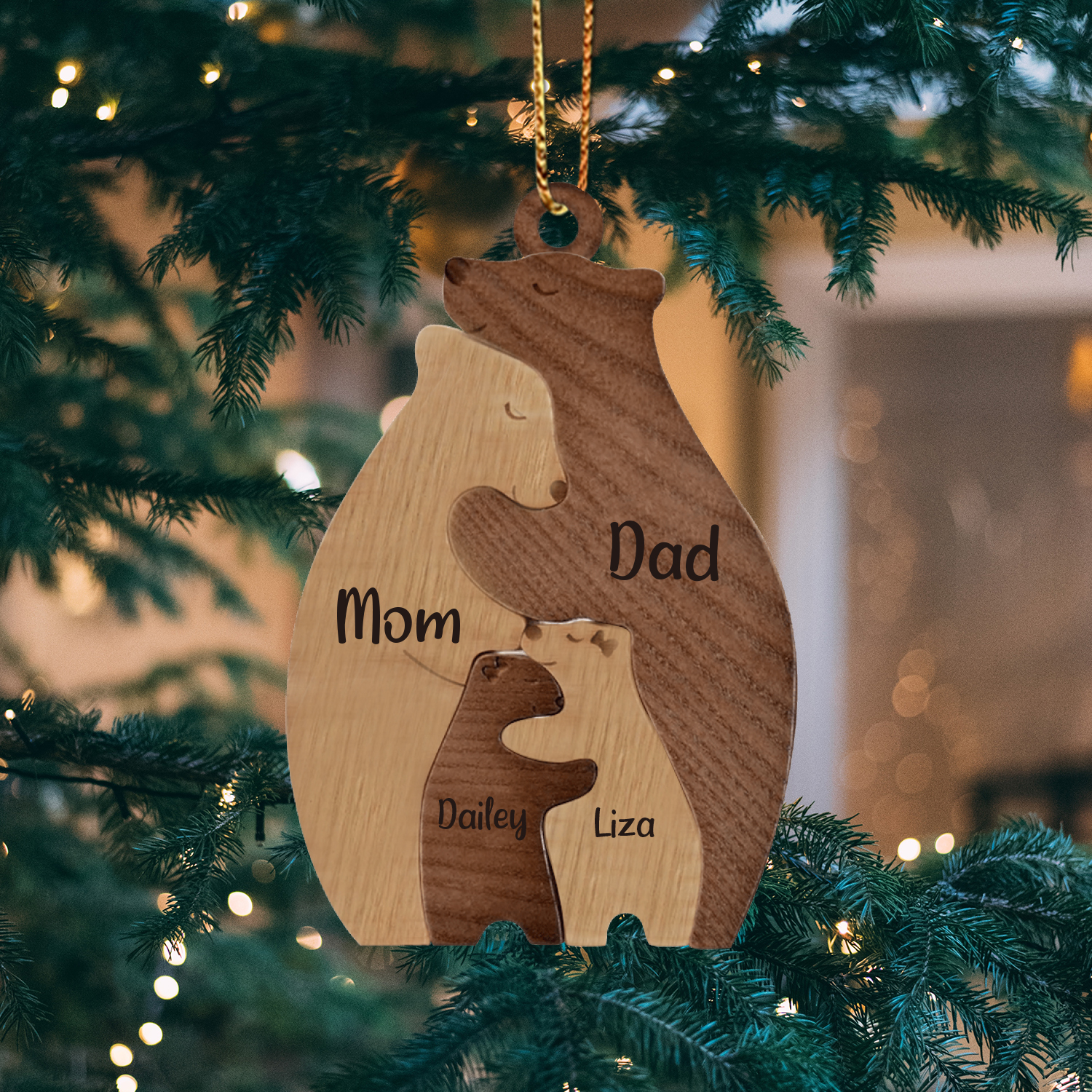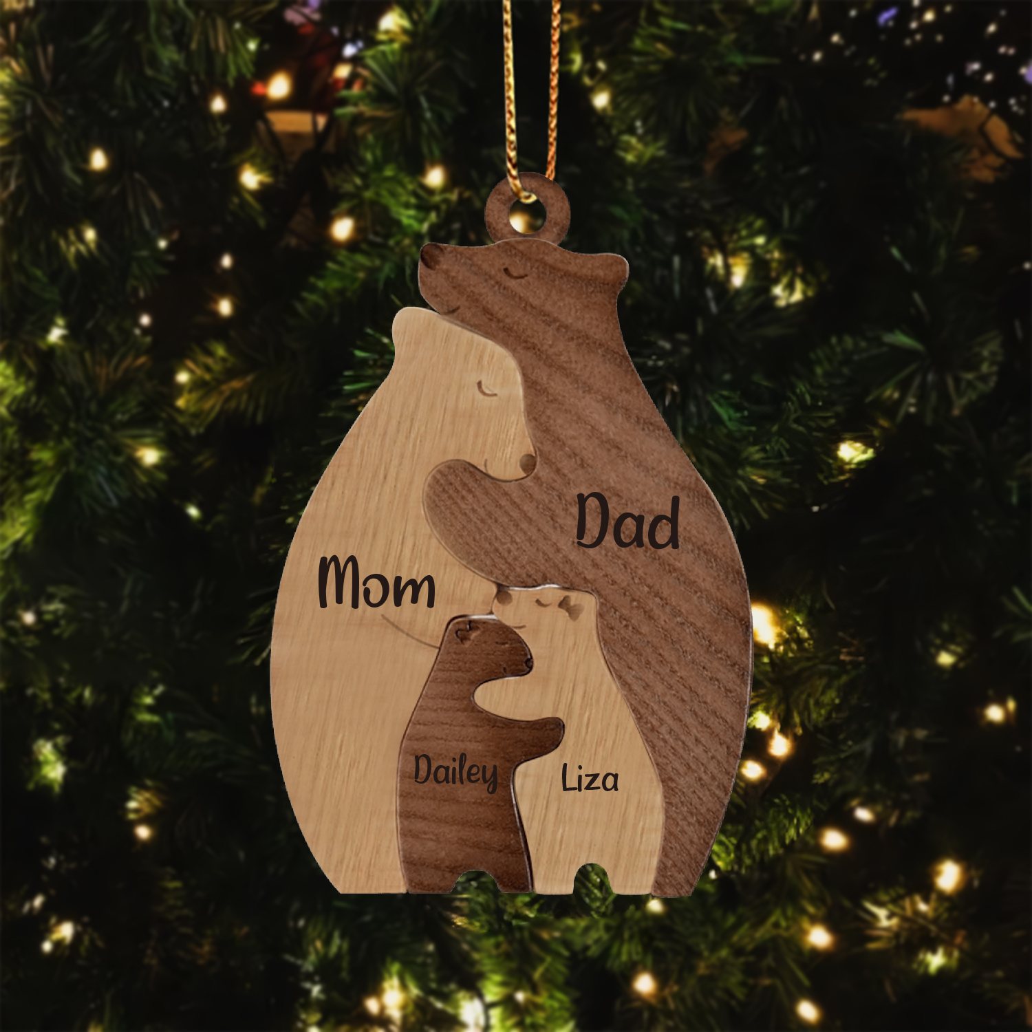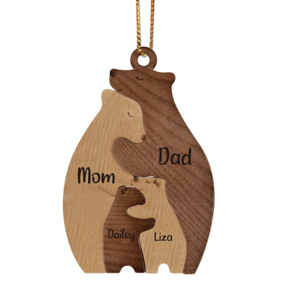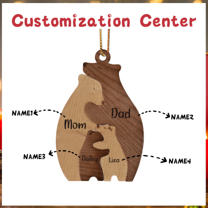 4 Names-Personalized Family Wooden Puzzle Ornament-Custom 4 Names Bear Hug Ornament Gifts For Family-Special Home Decoration